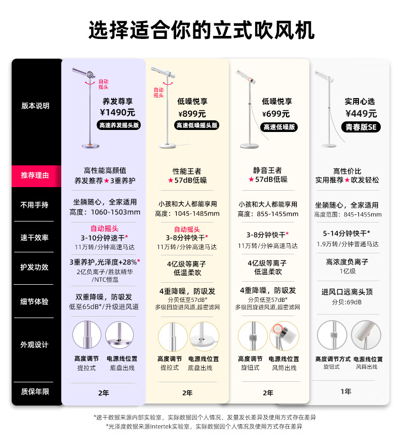 品仕乐立式电吹风机家用恒温冷热负离子护发大功率速干 免手持折叠无线遥控双出风口 皓月白(高速低噪摇头版)