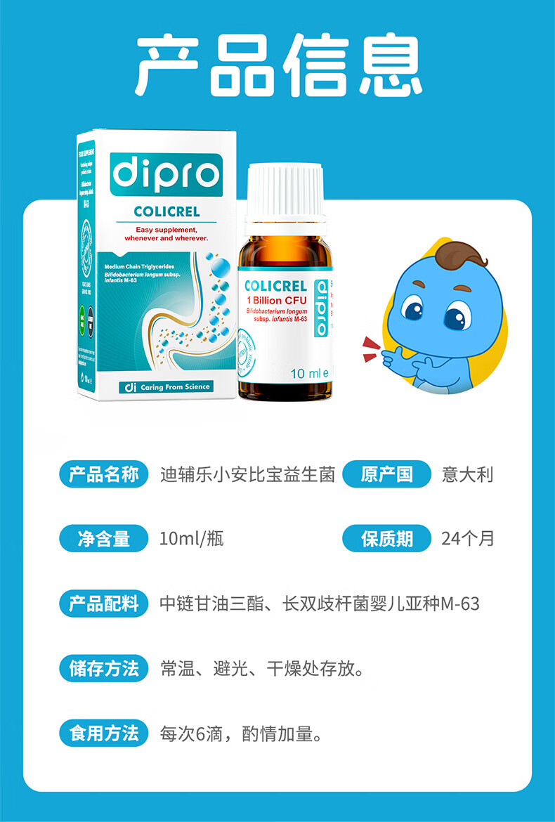 迪辅乐dipro 小安比宝婴幼儿童益生菌滴剂 初生宝宝肠胃养护益生菌益生 10ml*2瓶 10ml/瓶