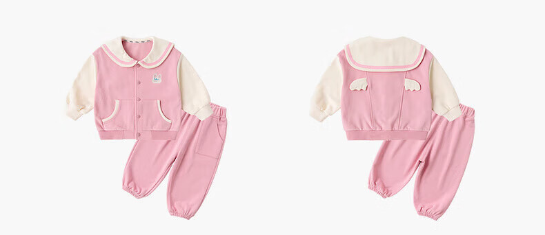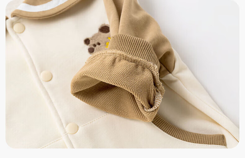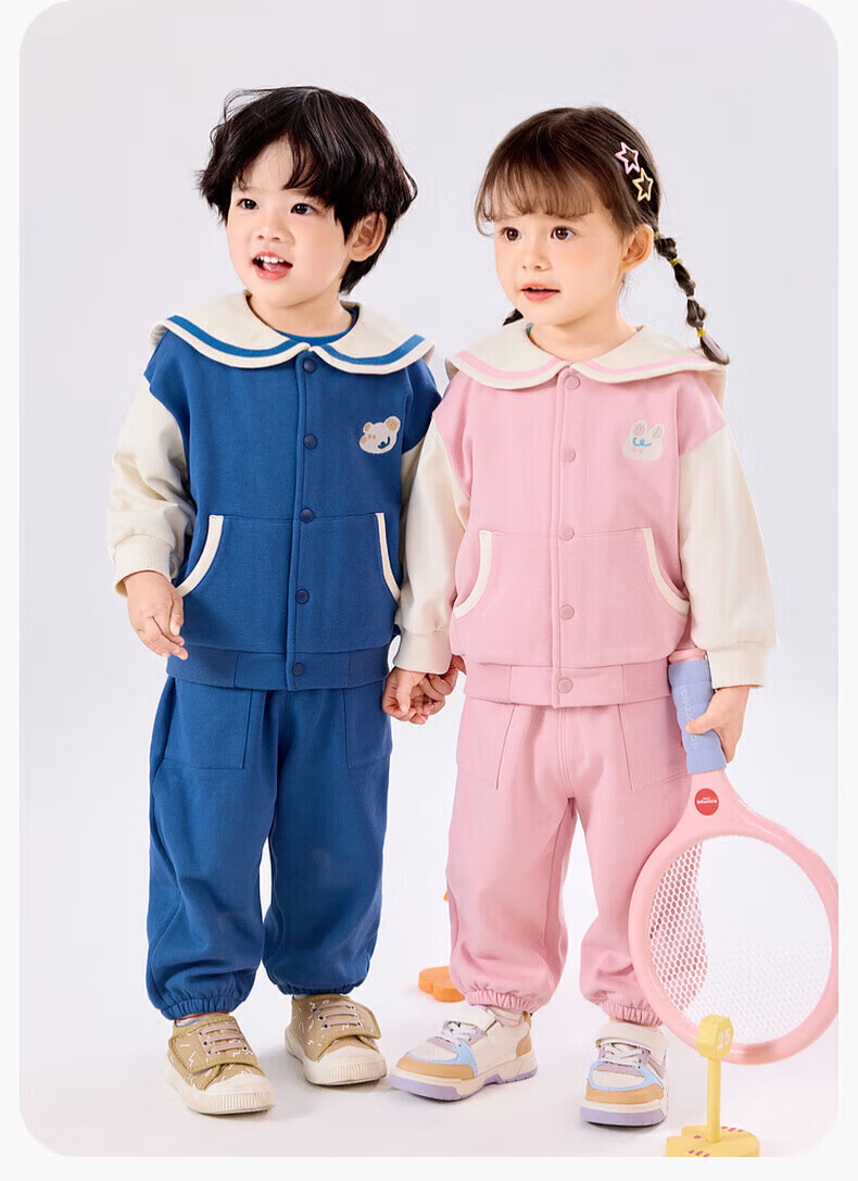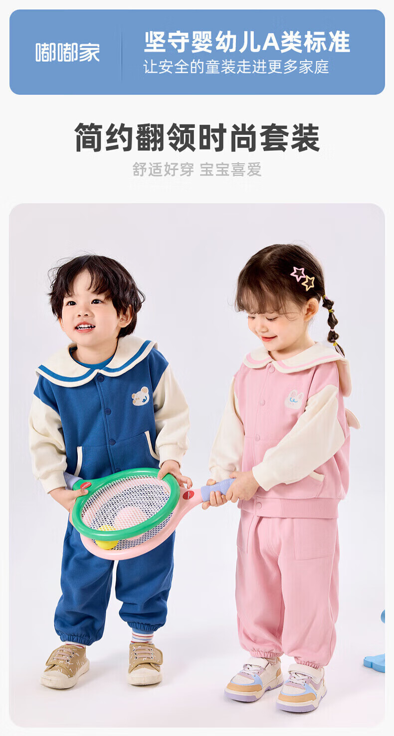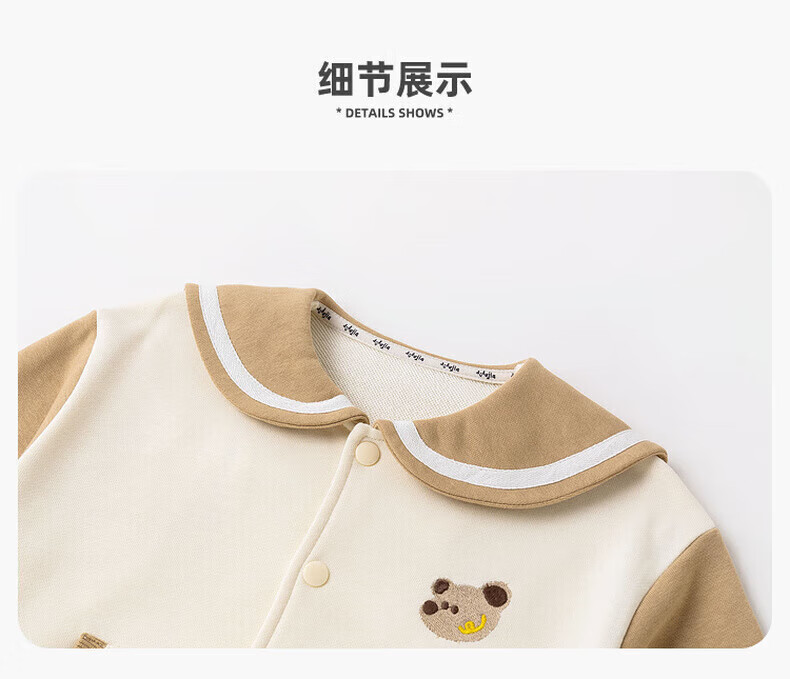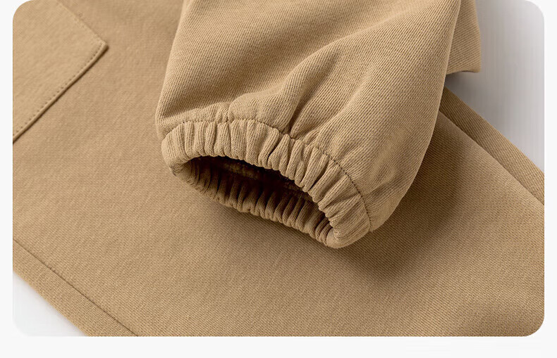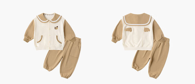 嘟嘟家男童翻领春季套装女童可爱纽扣外套儿童休闲两件套宝宝束脚裤春装 卡其色 120