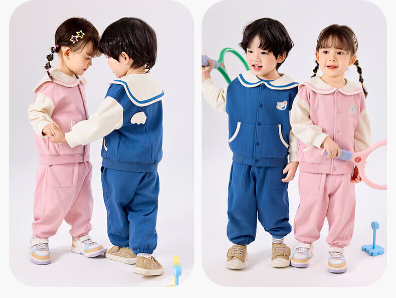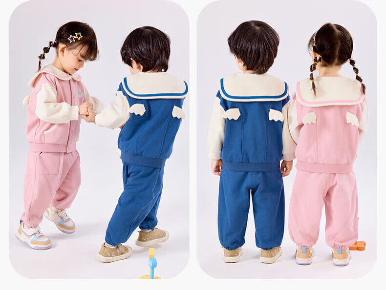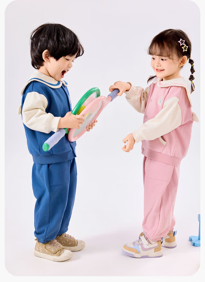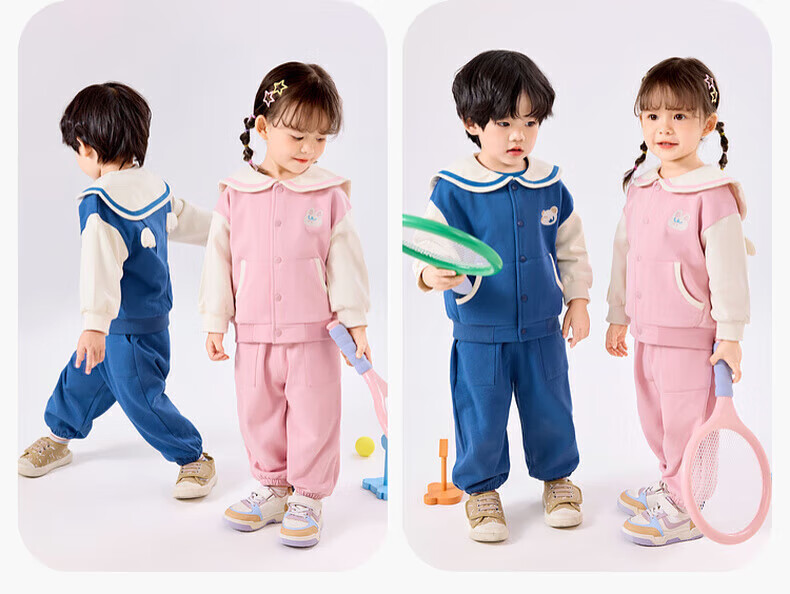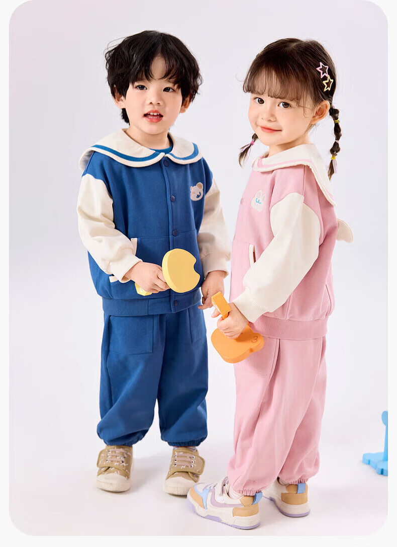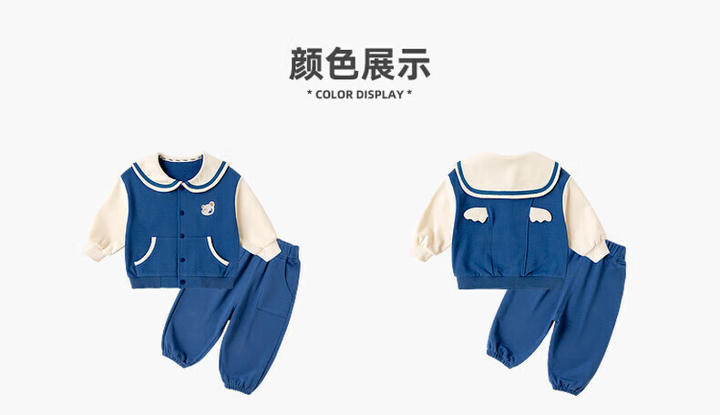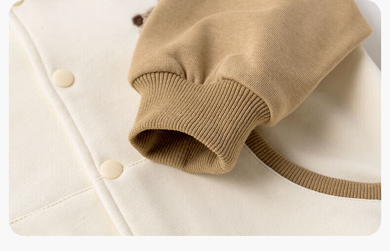 嘟嘟家男童翻领春季套装女童可爱纽扣外套儿童休闲两件套宝宝束脚裤春装 卡其色 120