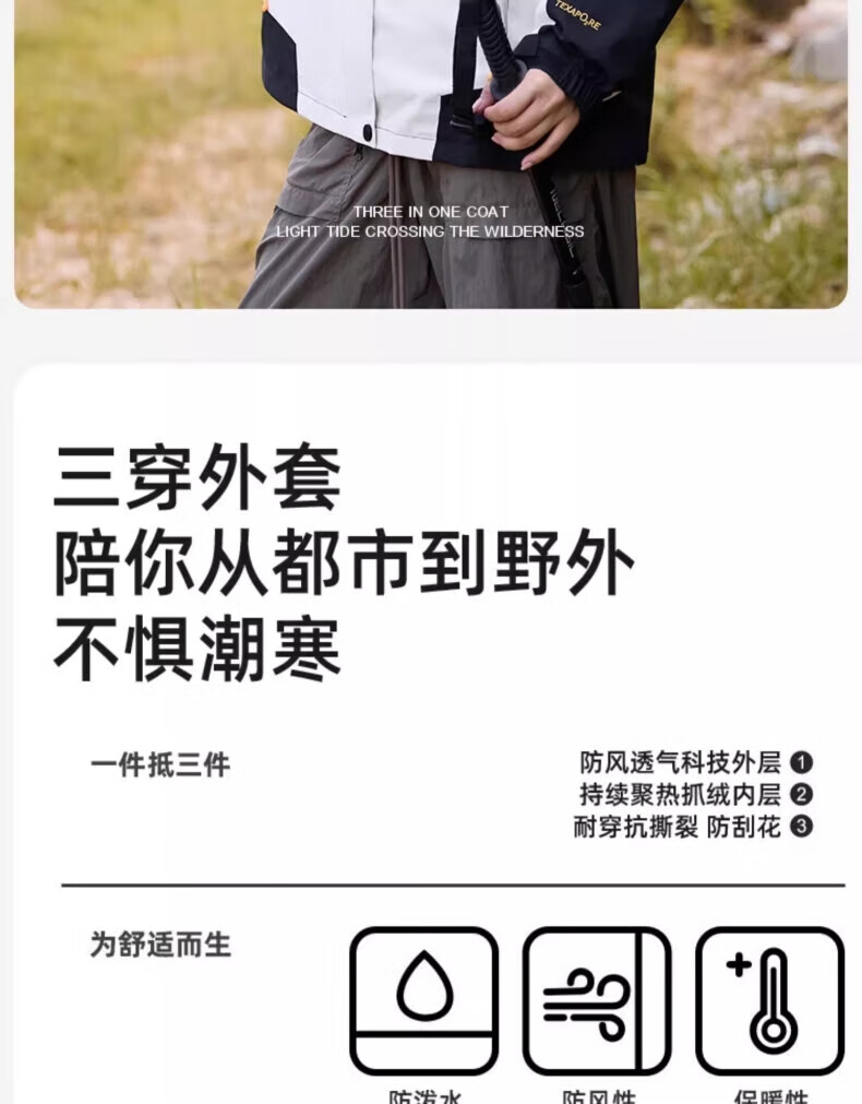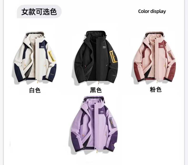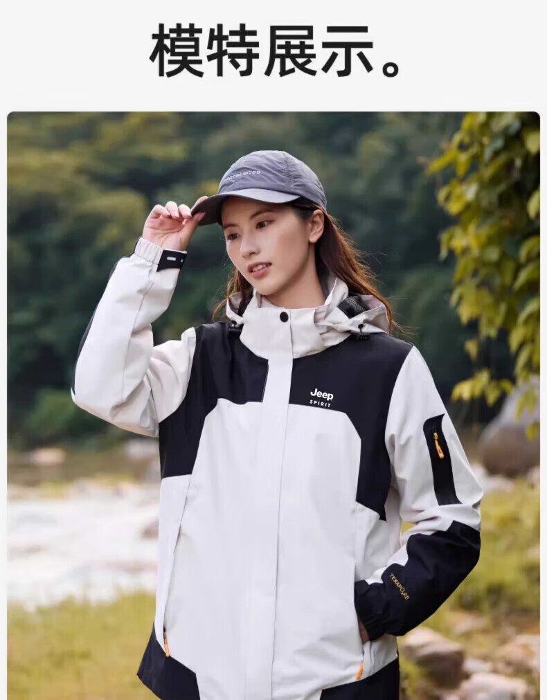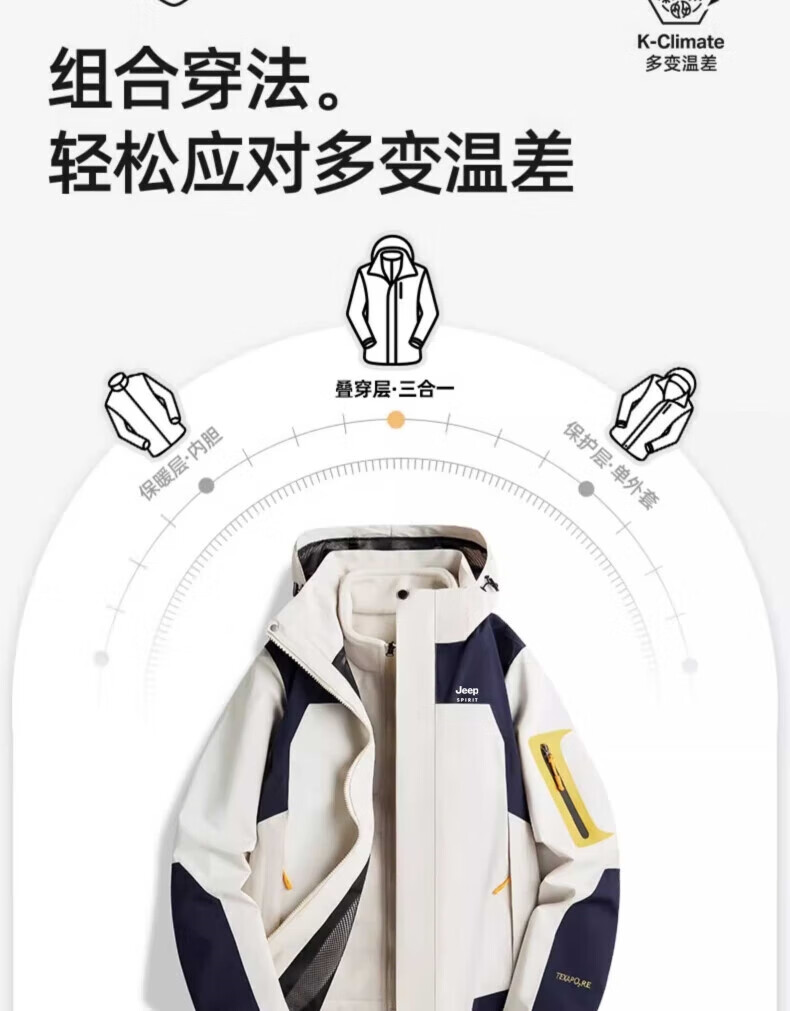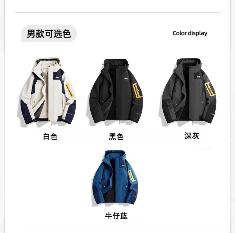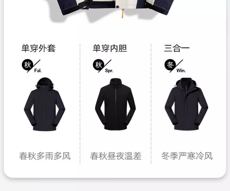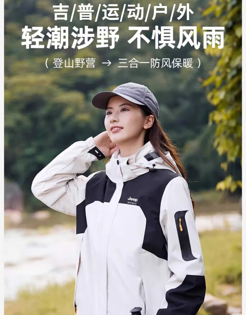 JEEP SPIRIT吉普冲锋衣三合一情侣款秋冬季加厚两件套防风防水保暖棉服外套男 女款-黑色B【三合一两件套】 XL