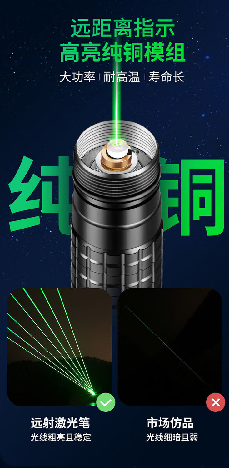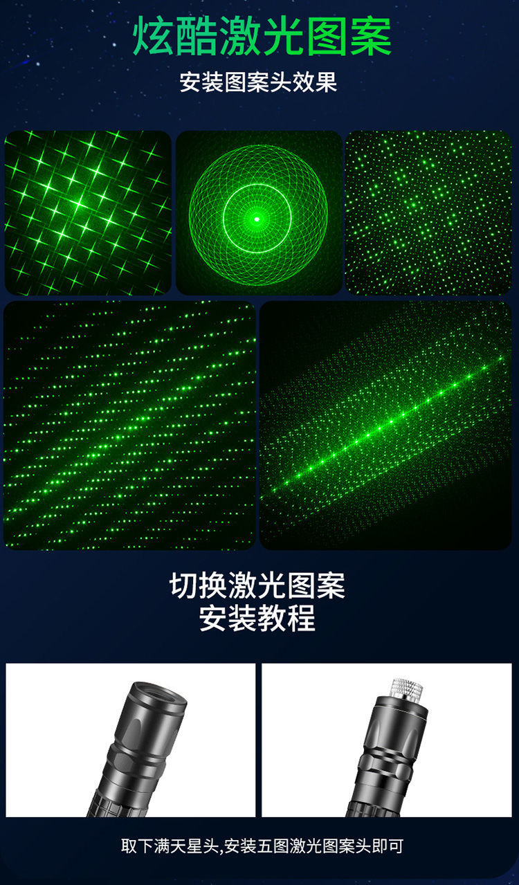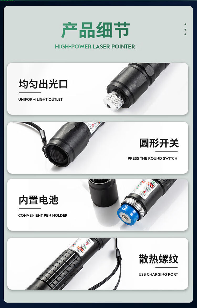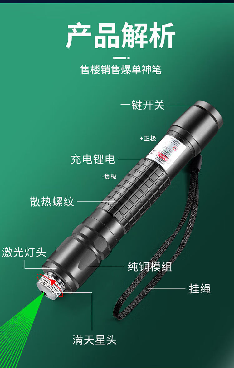 宰搂大功率激光笔常亮款充电激光镭射灯远射满天星图案教鞭绿外线常亮 主图款
