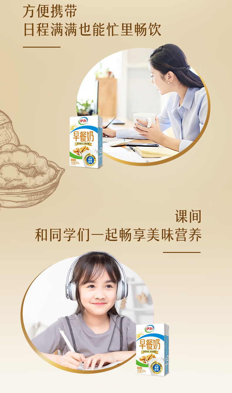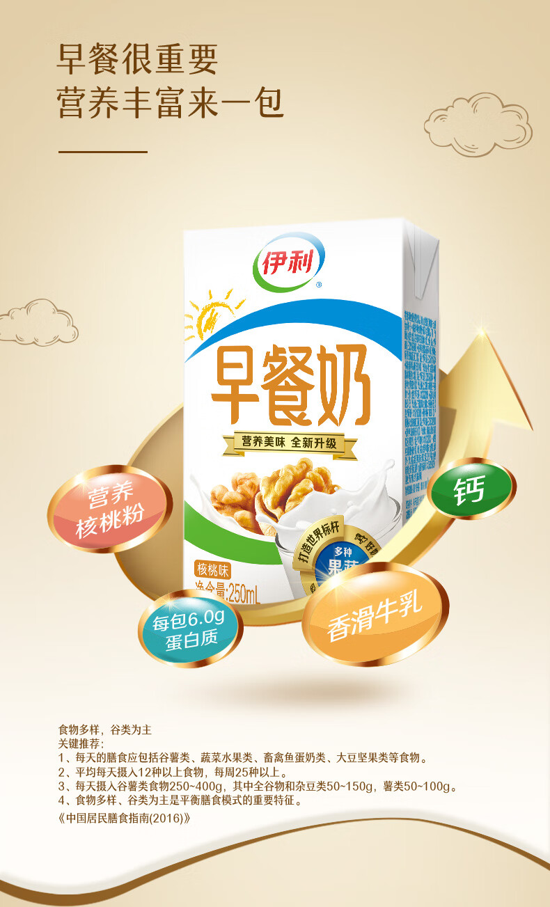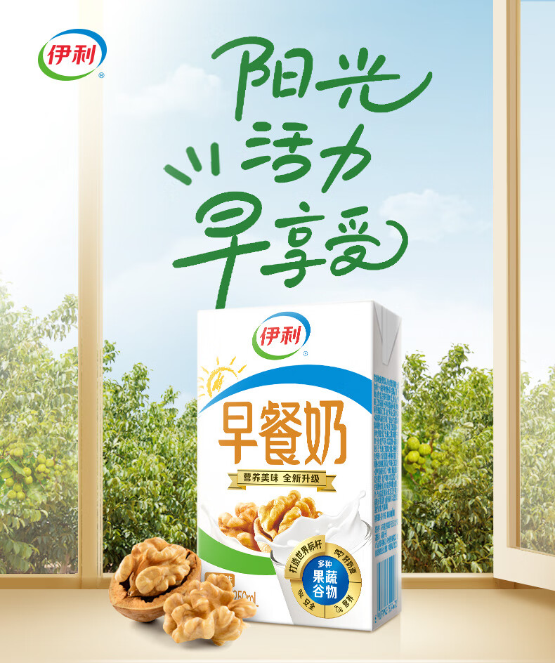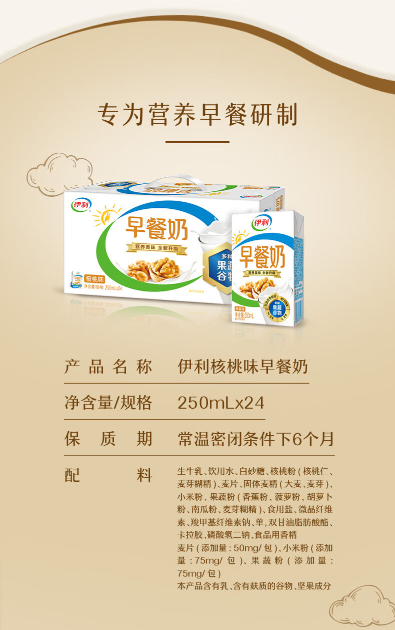 伊利 早餐奶核桃味牛奶250ml*24盒/箱 优选核桃 浓香早餐伴侣 9月产