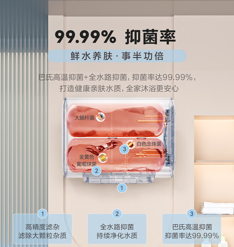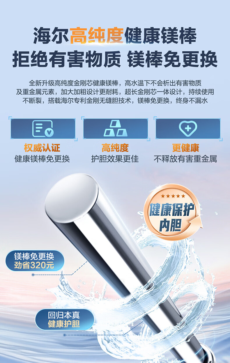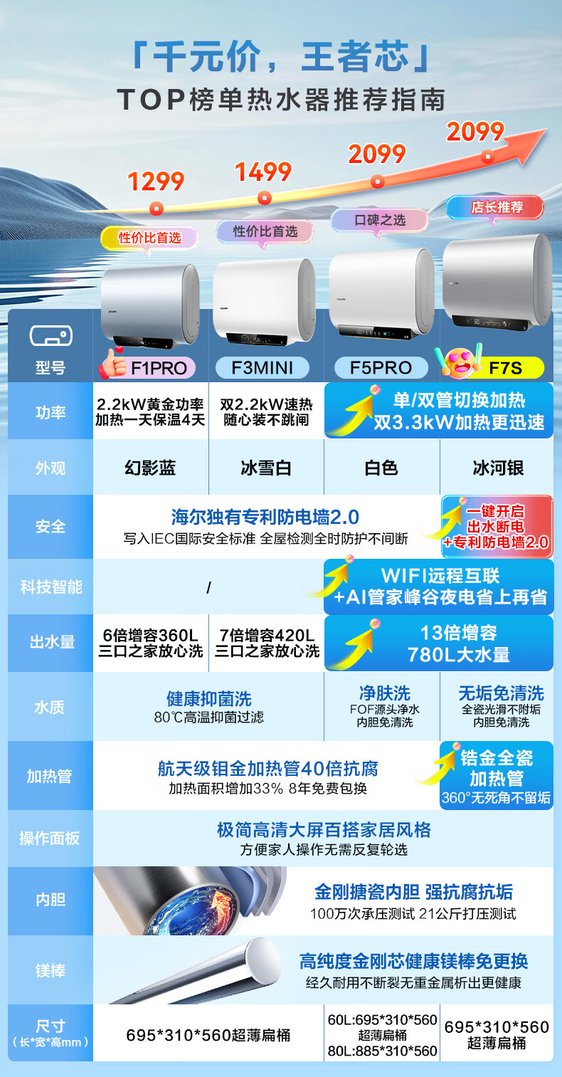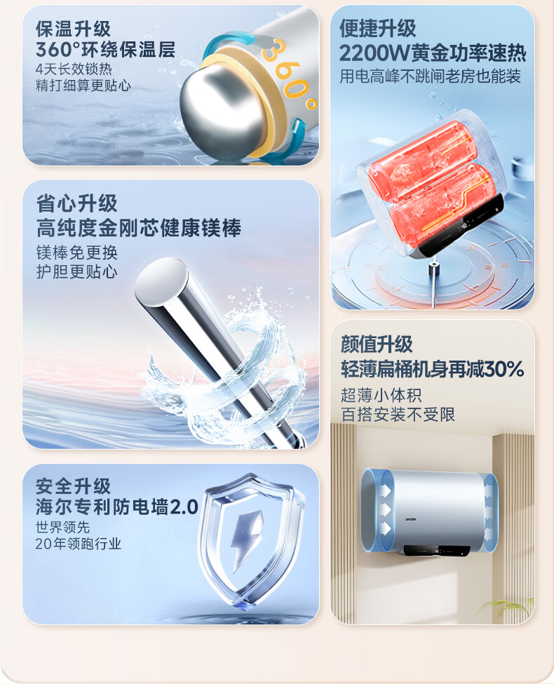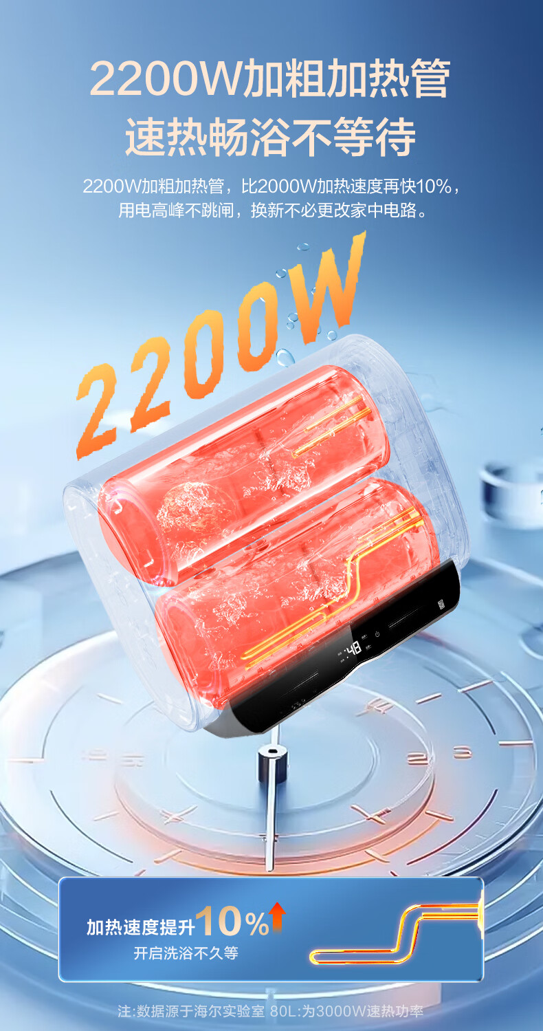 海尔(Haier)智家出品Leader统帅懒人扁桶热水器F1PRO电热水器60升双胆速热节能小尺寸热水器镁棒免更换防电墙 60L 2200W 超一级节能F1PRO