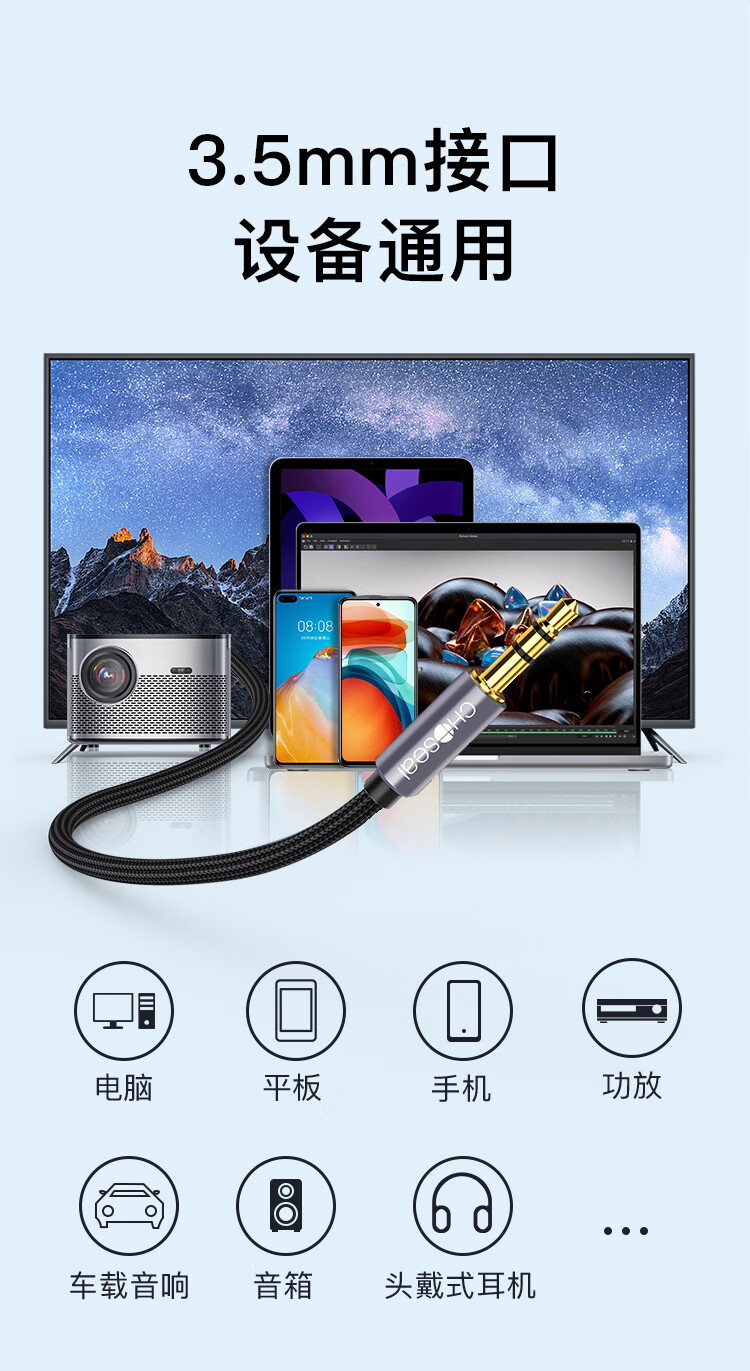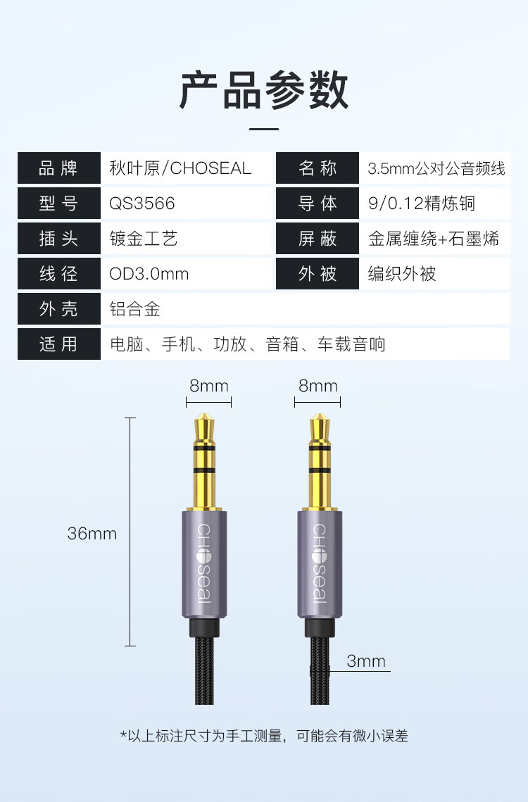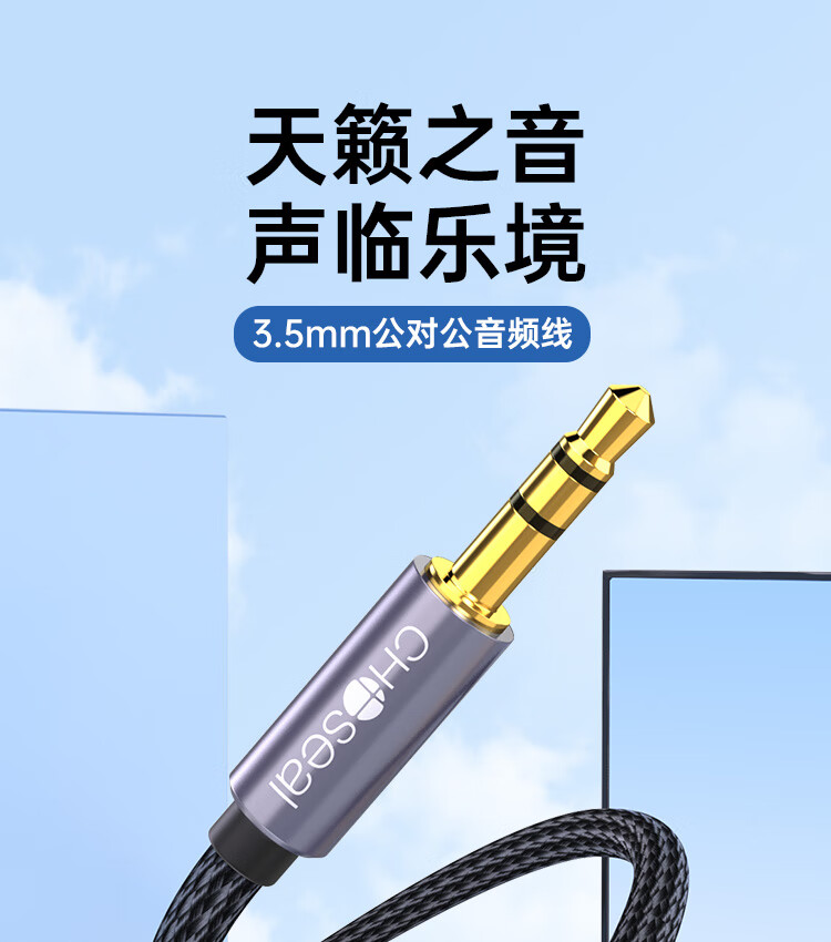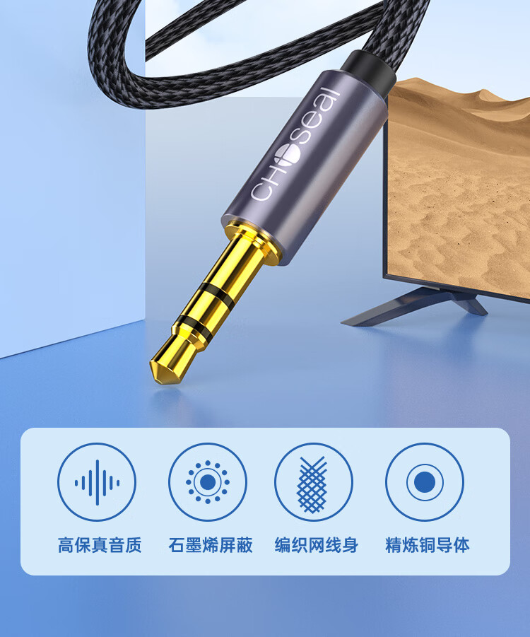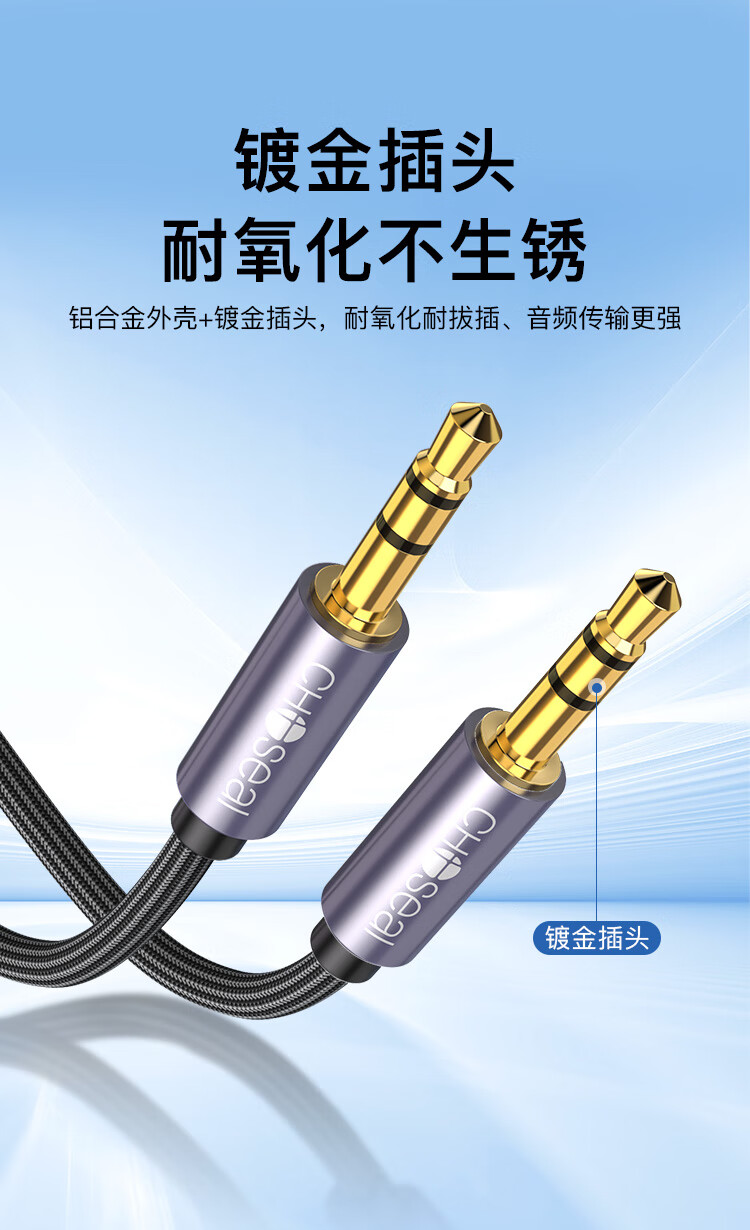 秋叶原(CHOSEAL)3.5mm公对公车载AUX音频线 石墨烯屏蔽编织线身 手机笔记本电脑耳机音响连接线 2米 QS3566T2