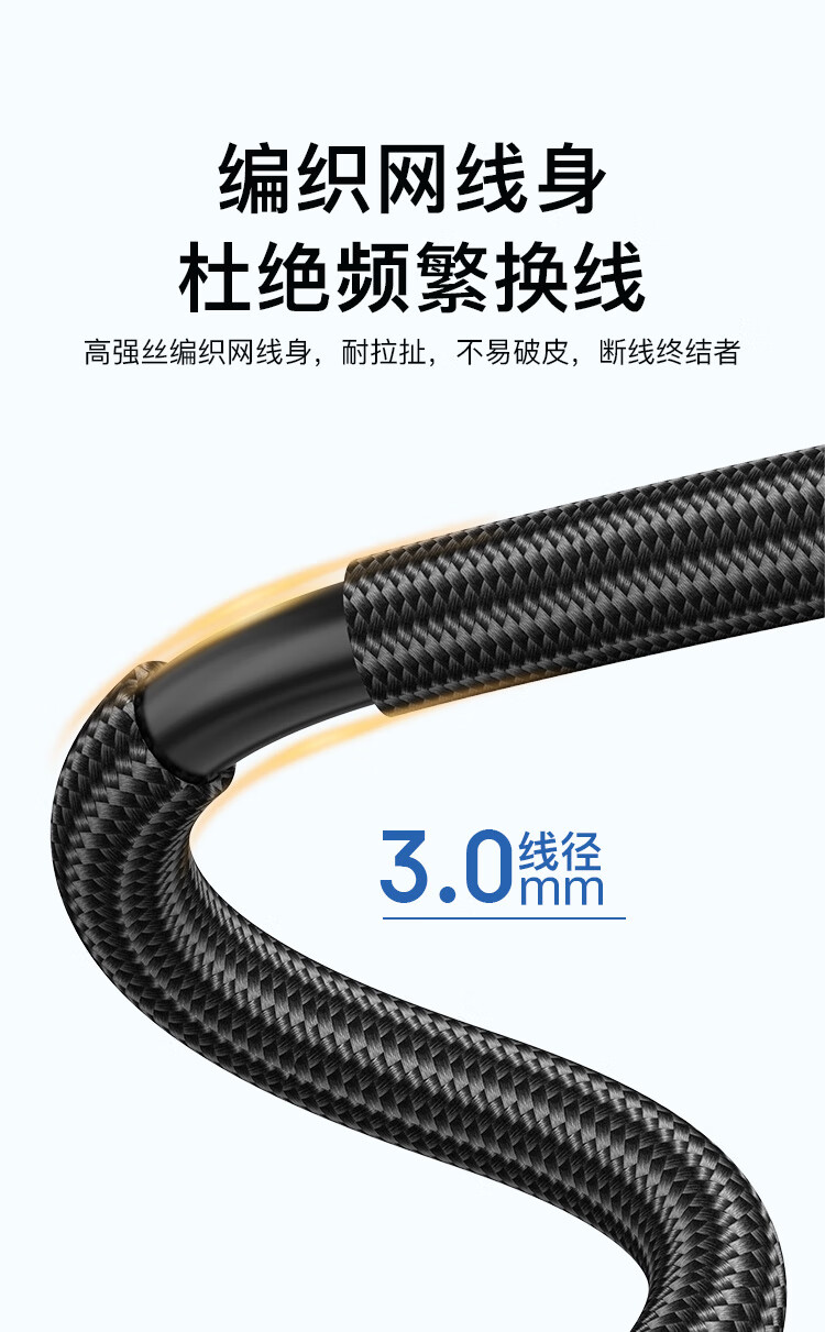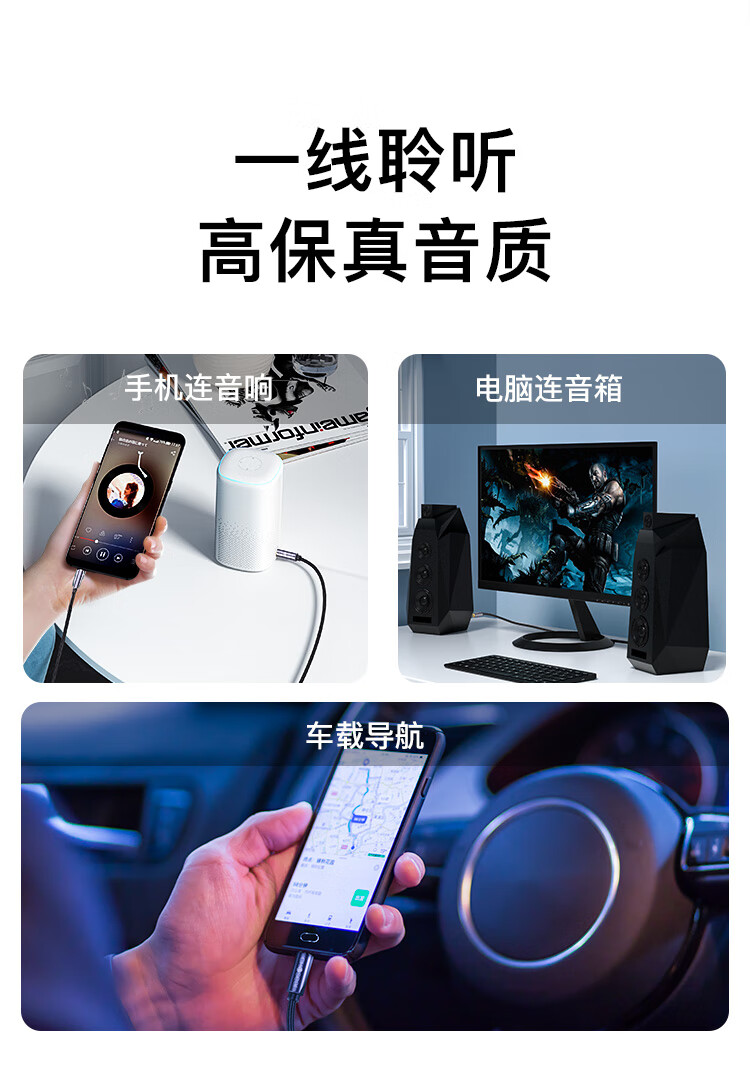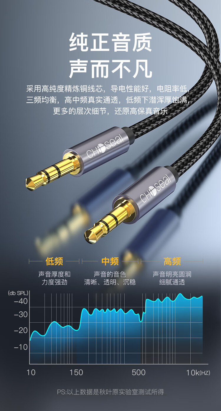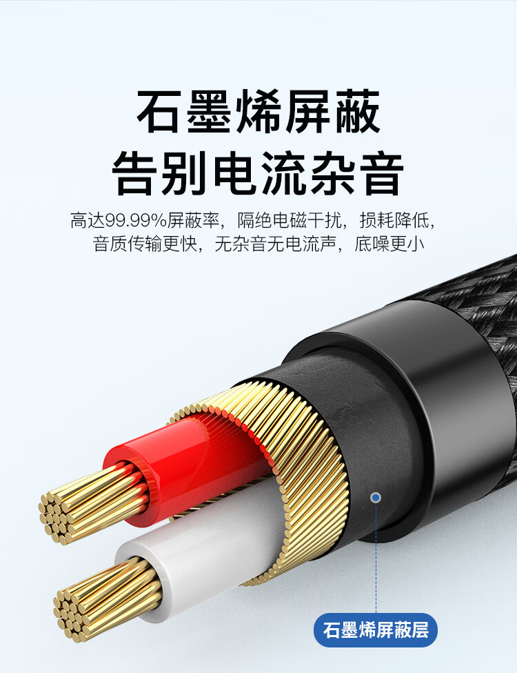 秋叶原(CHOSEAL)3.5mm公对公车载AUX音频线 石墨烯屏蔽编织线身 手机笔记本电脑耳机音响连接线 2米 QS3566T2