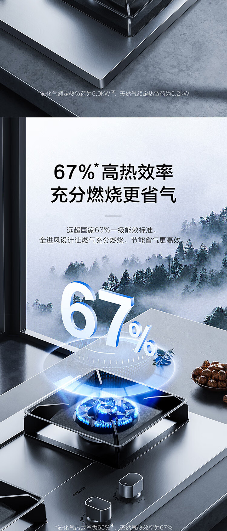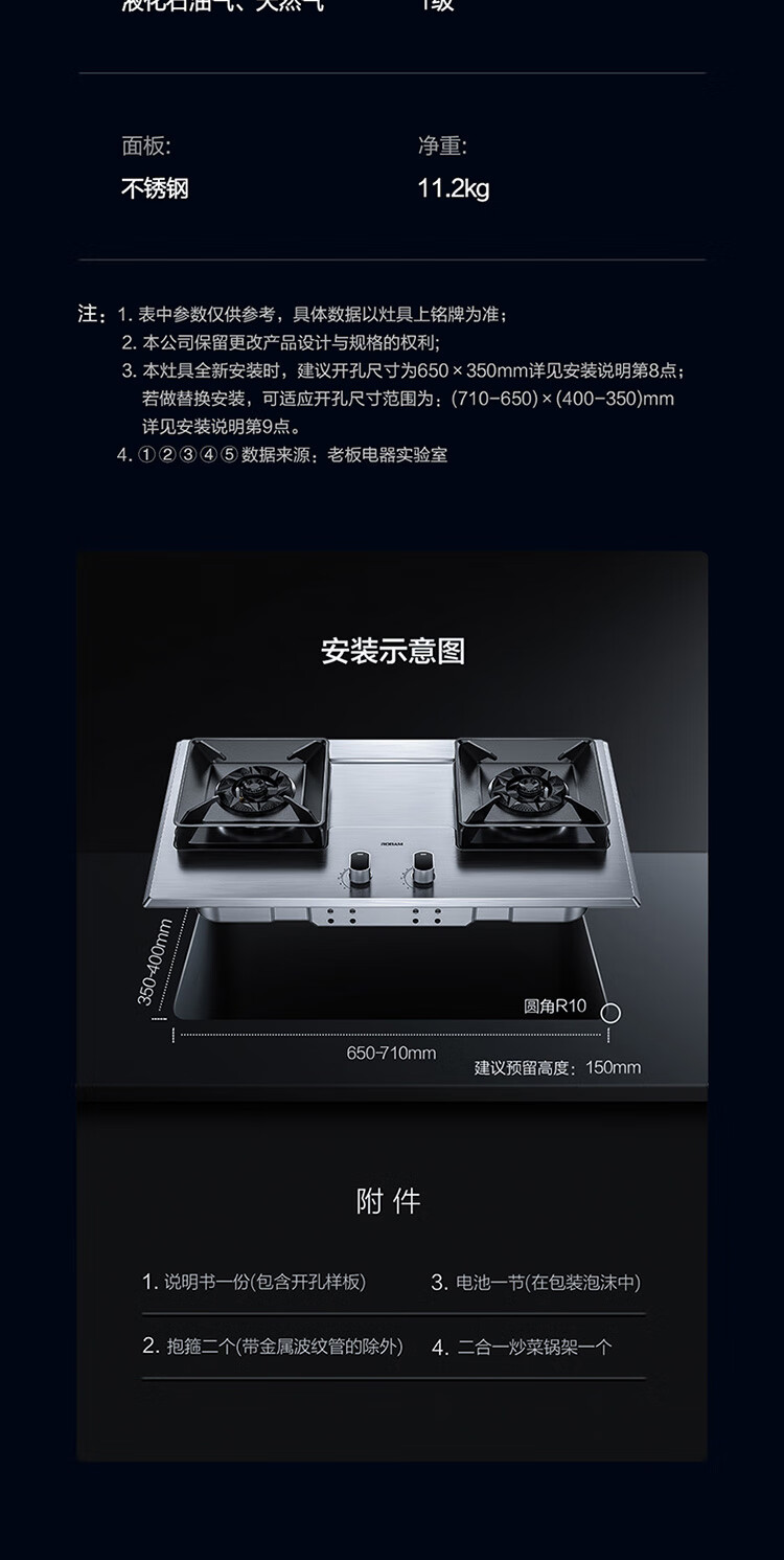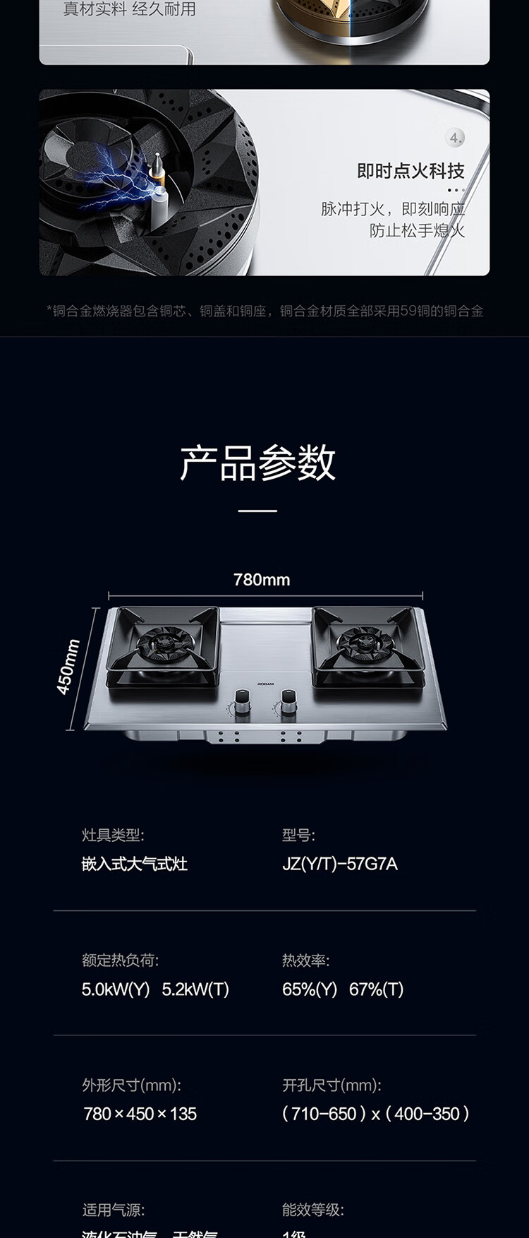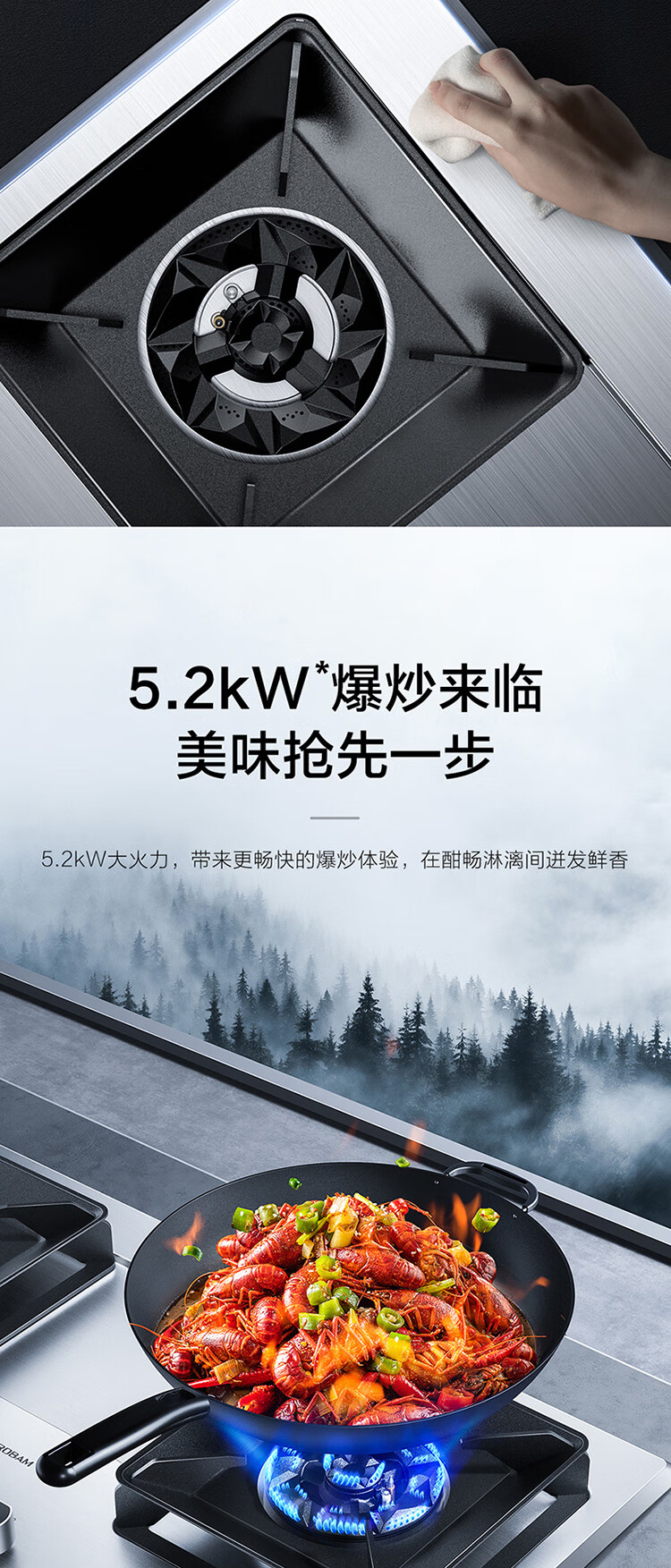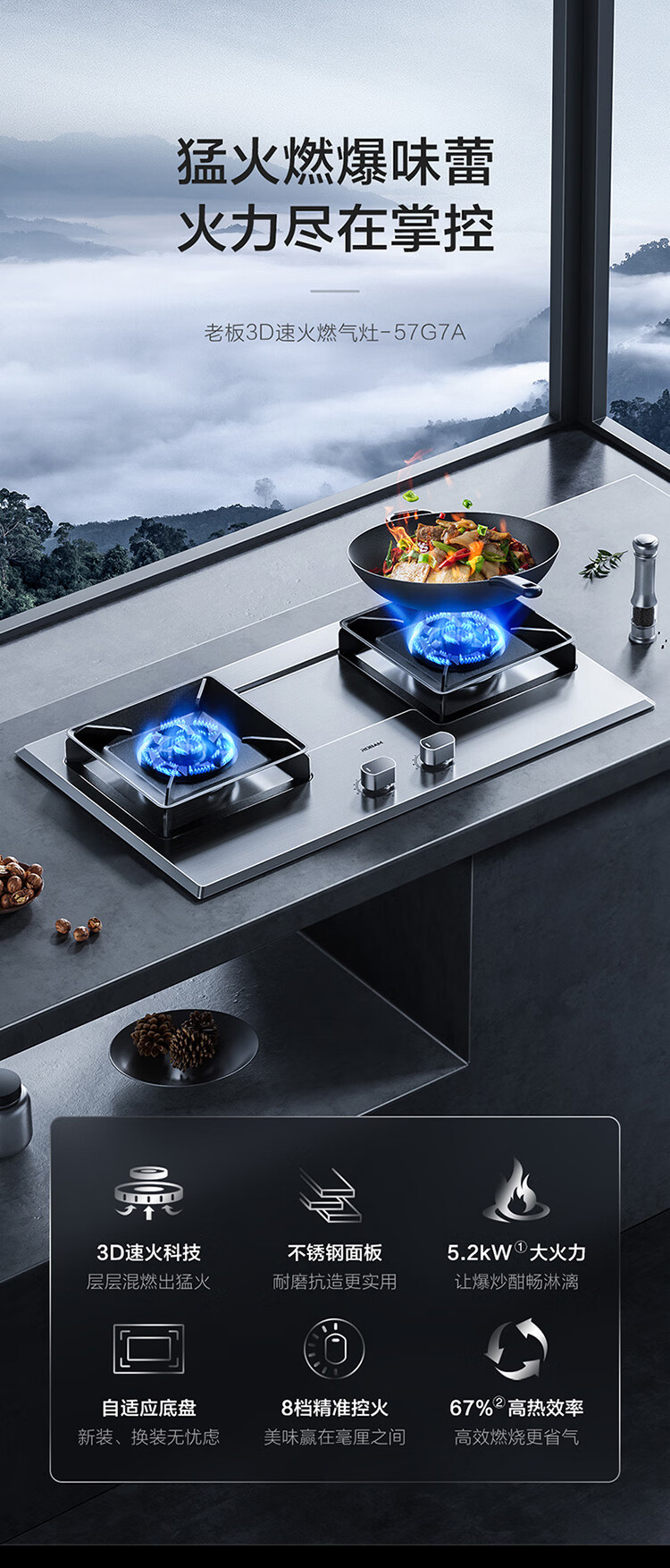 老板(Robam)不锈钢燃气灶防爆灶天然气灶嵌入式灶具5.2kW火力可调节底盘台嵌两用57G7A熄火保护政府补贴20%