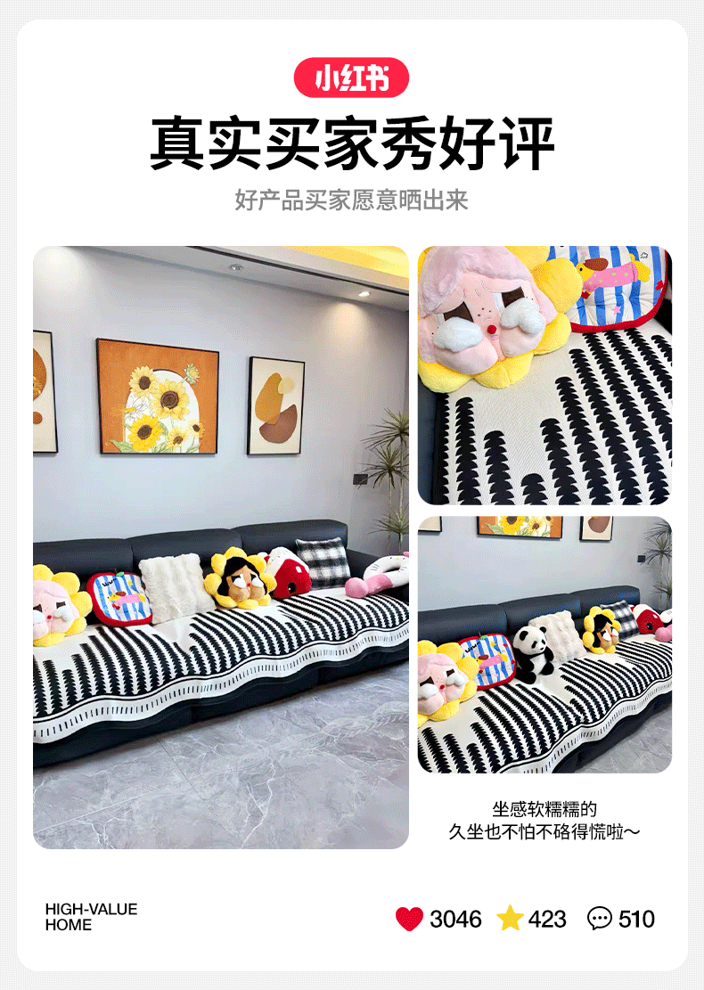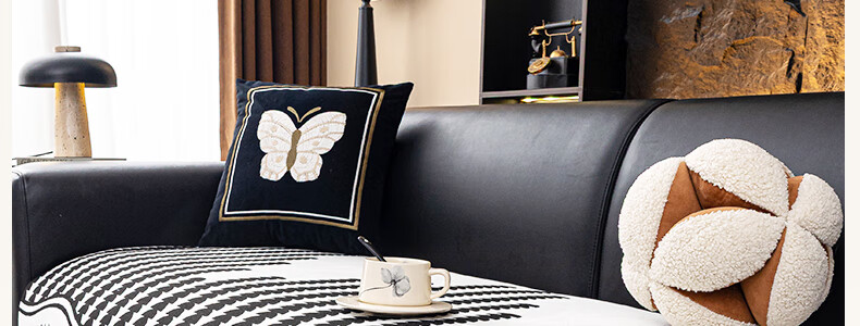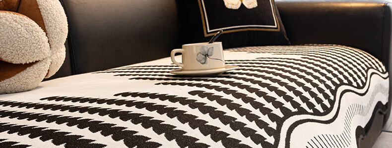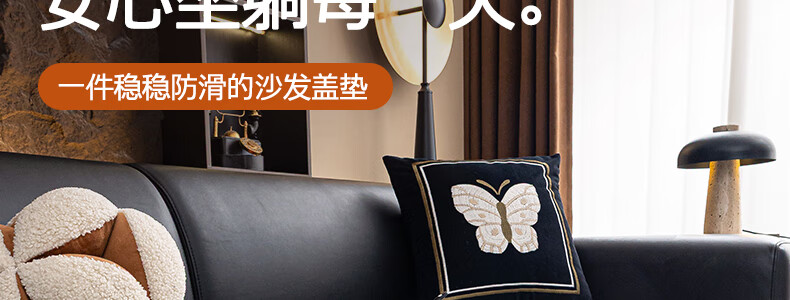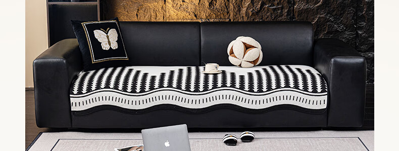 无印良品【升级防滑】沙发垫四季通用防滑2025新款座垫盖布皮沙发专用坐垫 加厚650g语波-轻奢黑【皮沙发久用不留印】 70*150cm(座位长度140-170cm沙发)