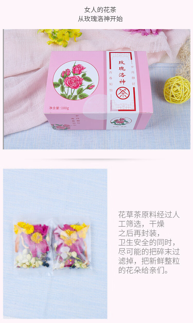 好怡玫瑰洛神茶陈皮玫瑰茄花茶黑枸杞茶菊花茶玫瑰花茶茉莉花茶叶 经典普通玫瑰10包装