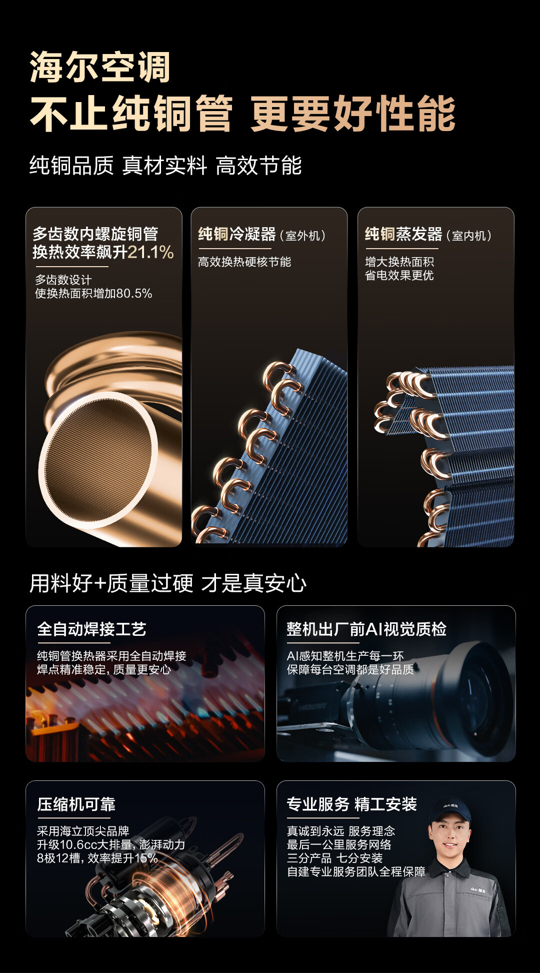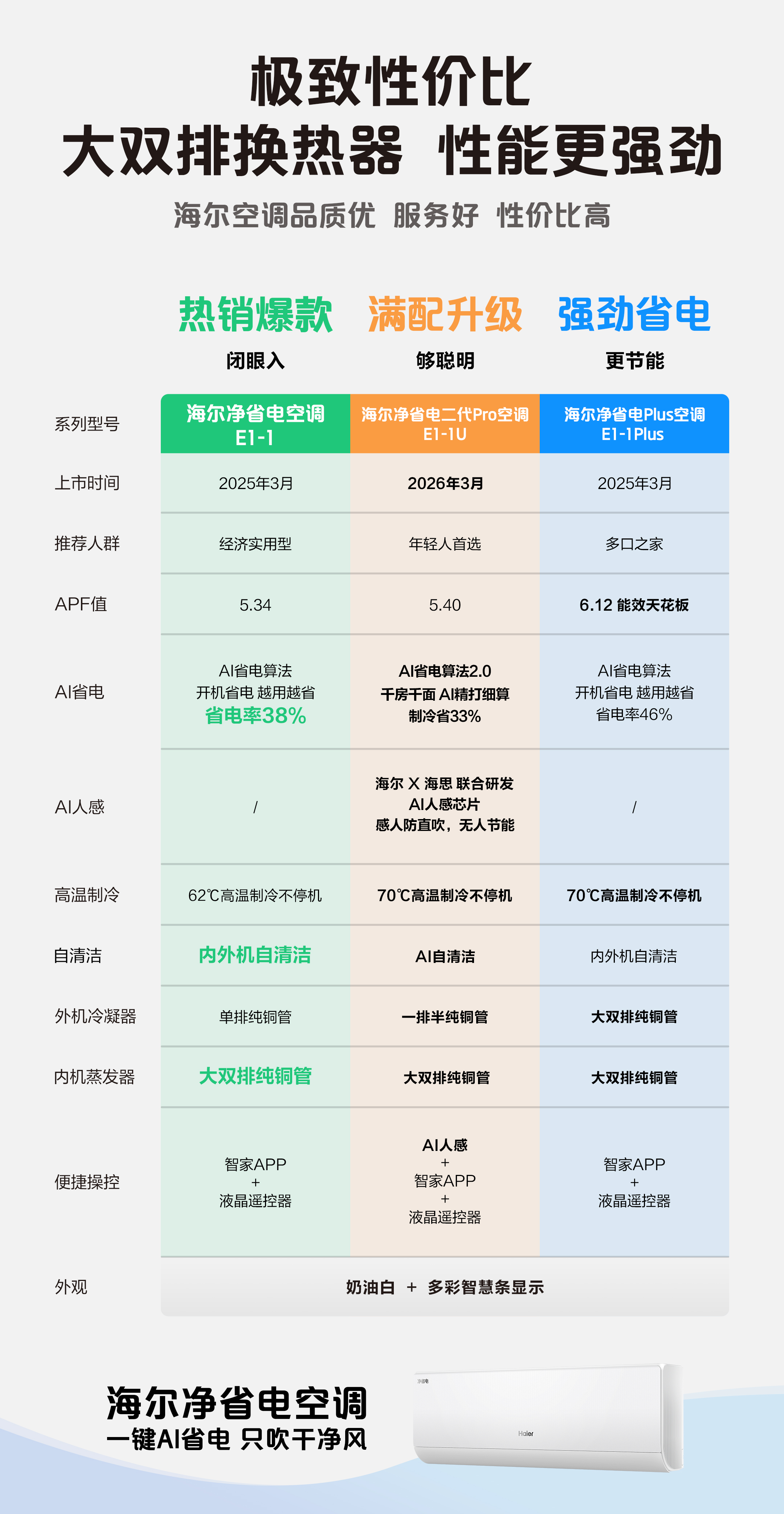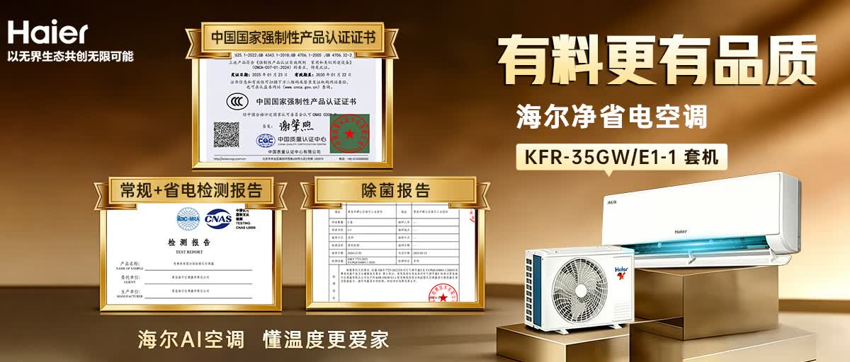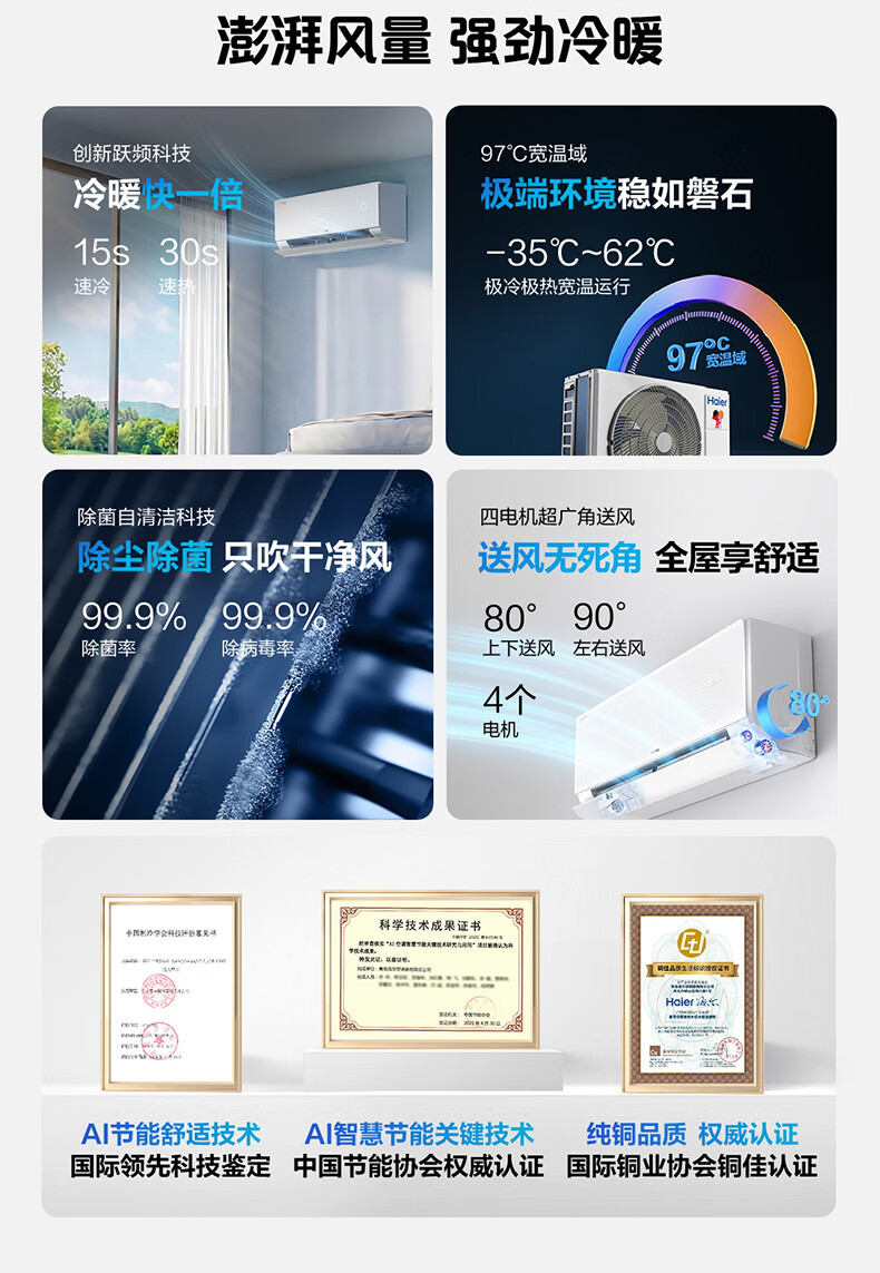 海尔Haier 1.5匹净省电新一级能效挂机变频冷暖双温壁挂式家用空调自清洁一键省电节能KFR-35GW/E1-1 【净省电】 1.5匹 AI省电E1 | 双排纯铜管蒸发器
