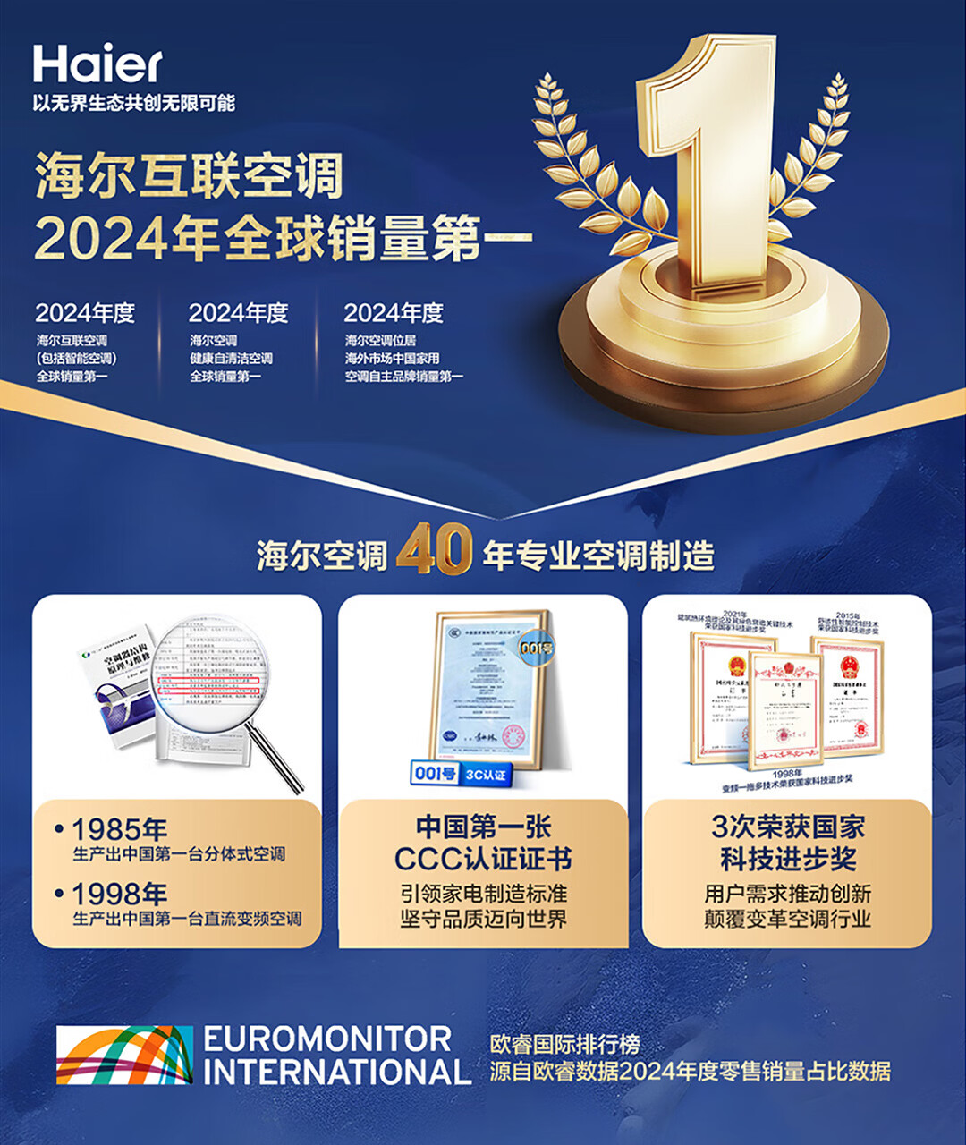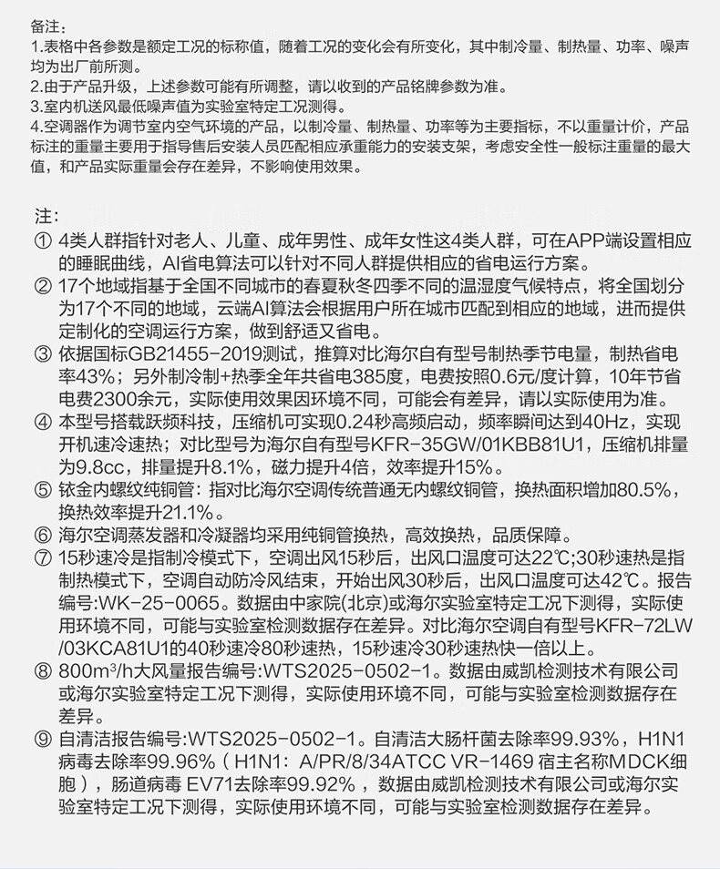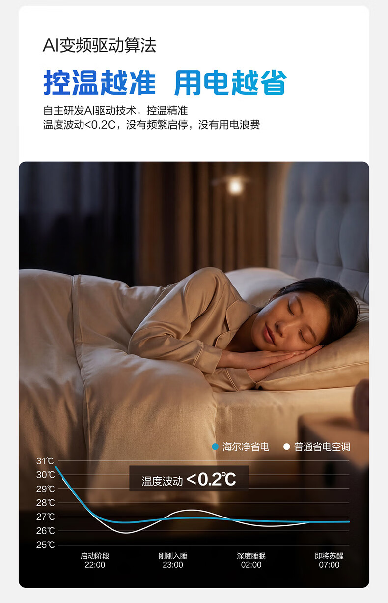 海尔Haier 1.5匹净省电新一级能效挂机变频冷暖双温壁挂式家用空调自清洁一键省电节能KFR-35GW/E1-1 【净省电】 1.5匹 AI省电E1 | 双排纯铜管蒸发器