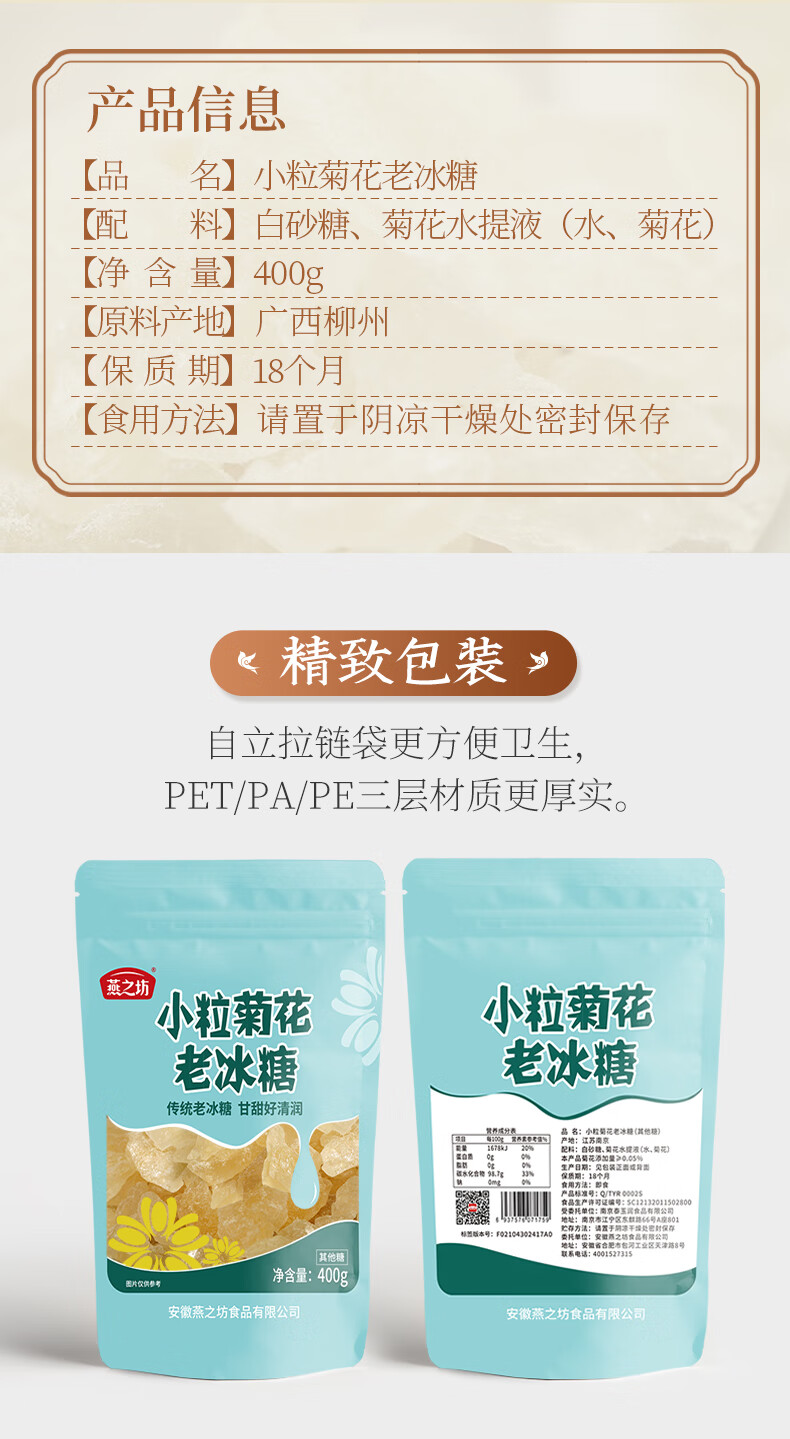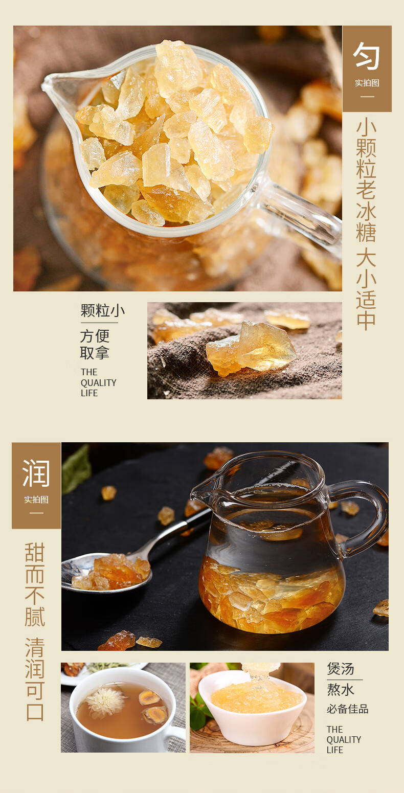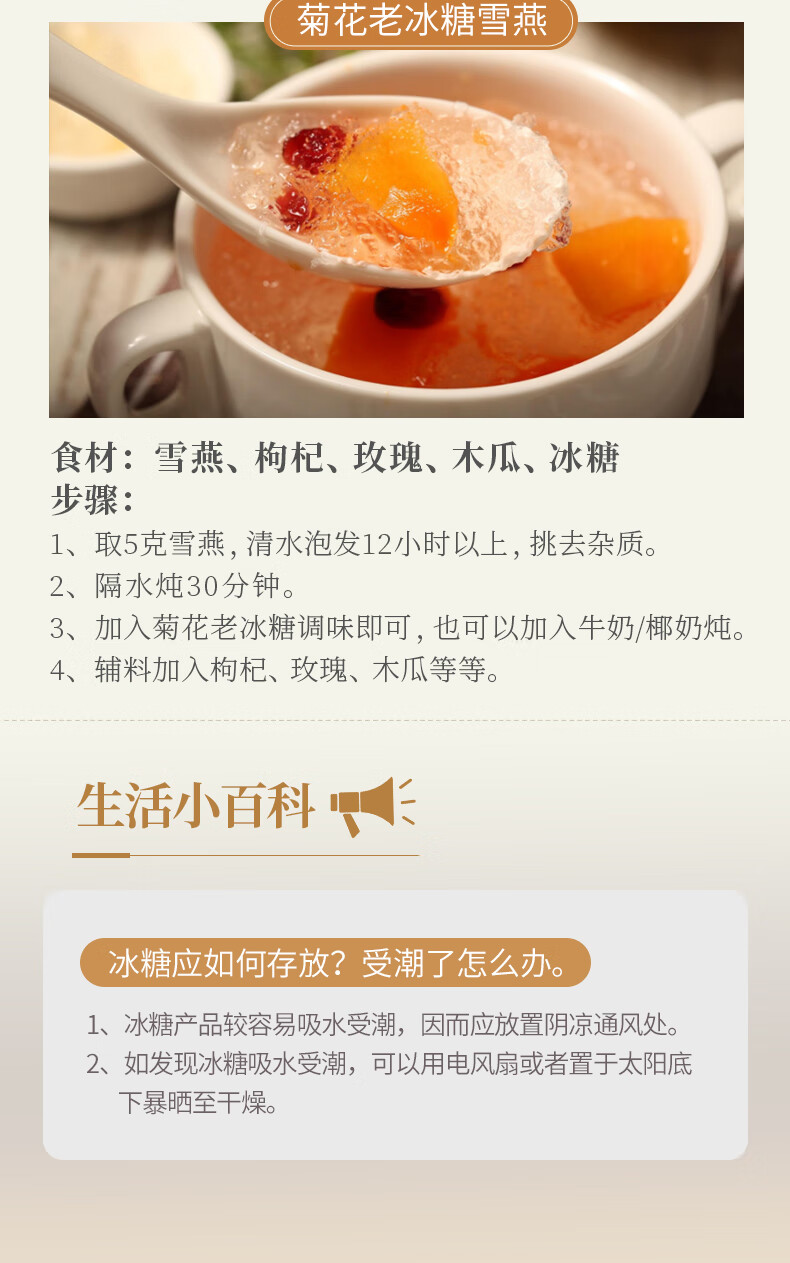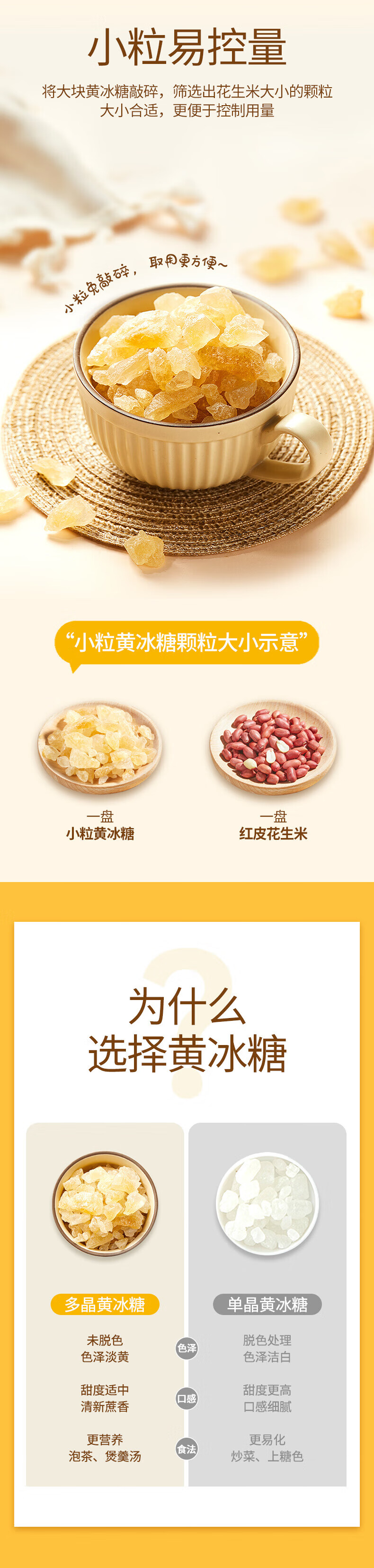 燕之坊 小粒菊花冰糖 黄冰糖散装老冰糖小粒多晶冰糖炒菜煲汤食材 小粒黄冰糖200g*3袋