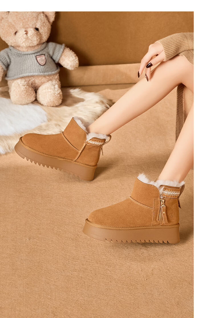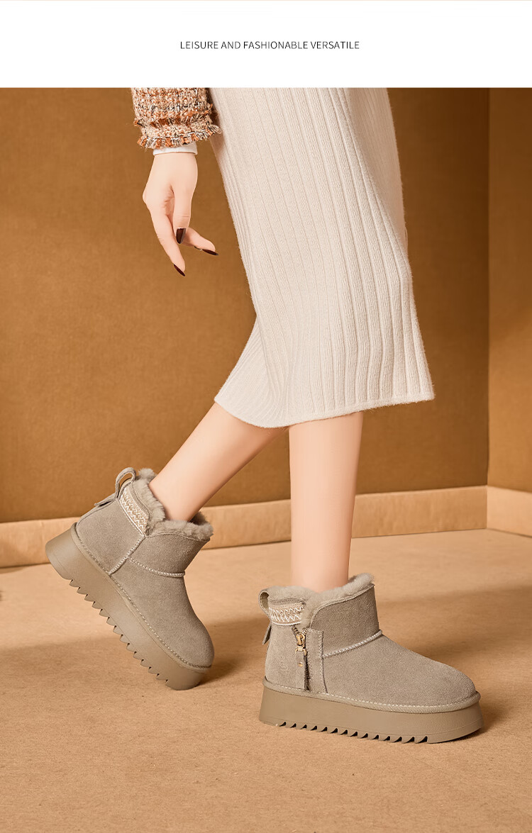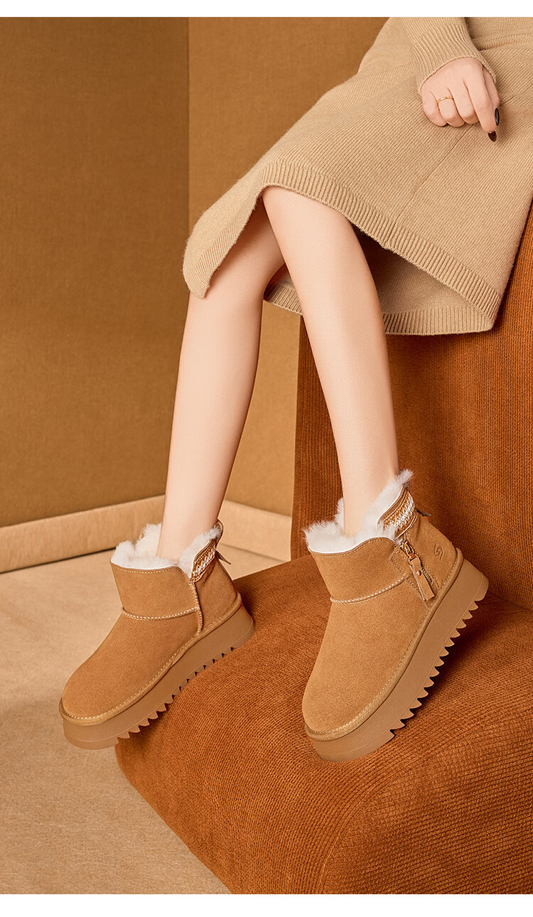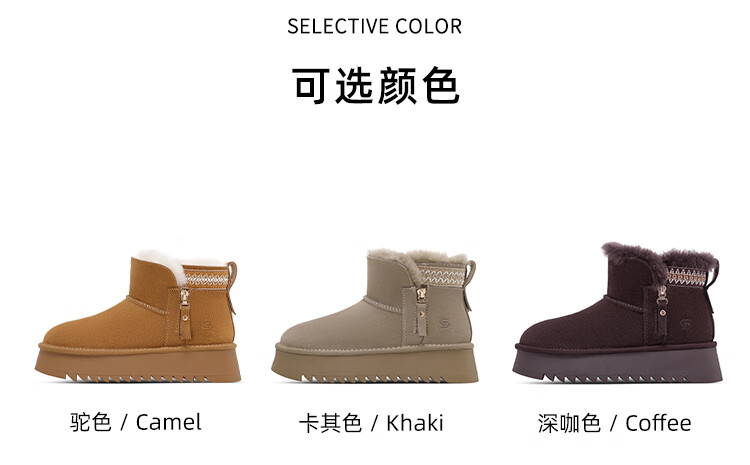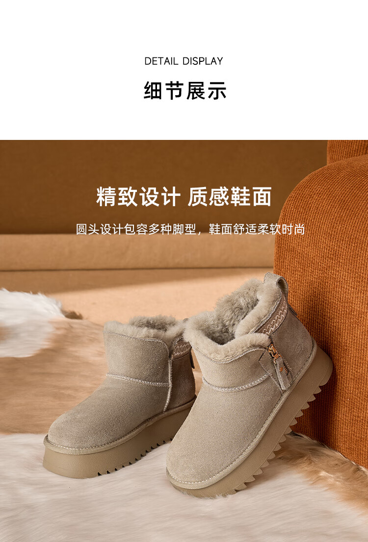 星期六雪地靴女款冬季加绒加厚2025新款真皮羊毛厚底增高防滑毛毛棉鞋女 卡其色 【牛剖层皮革】【上口羊毛】 37