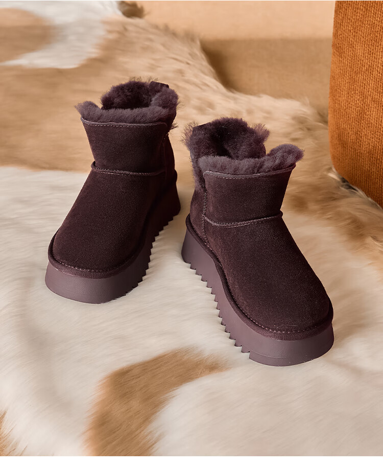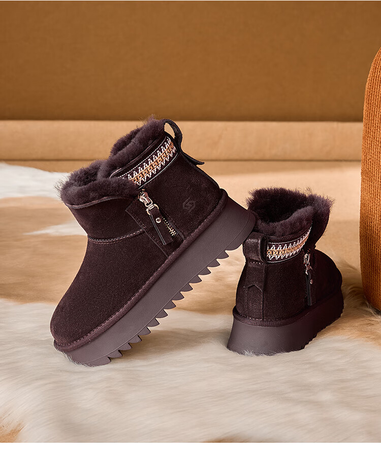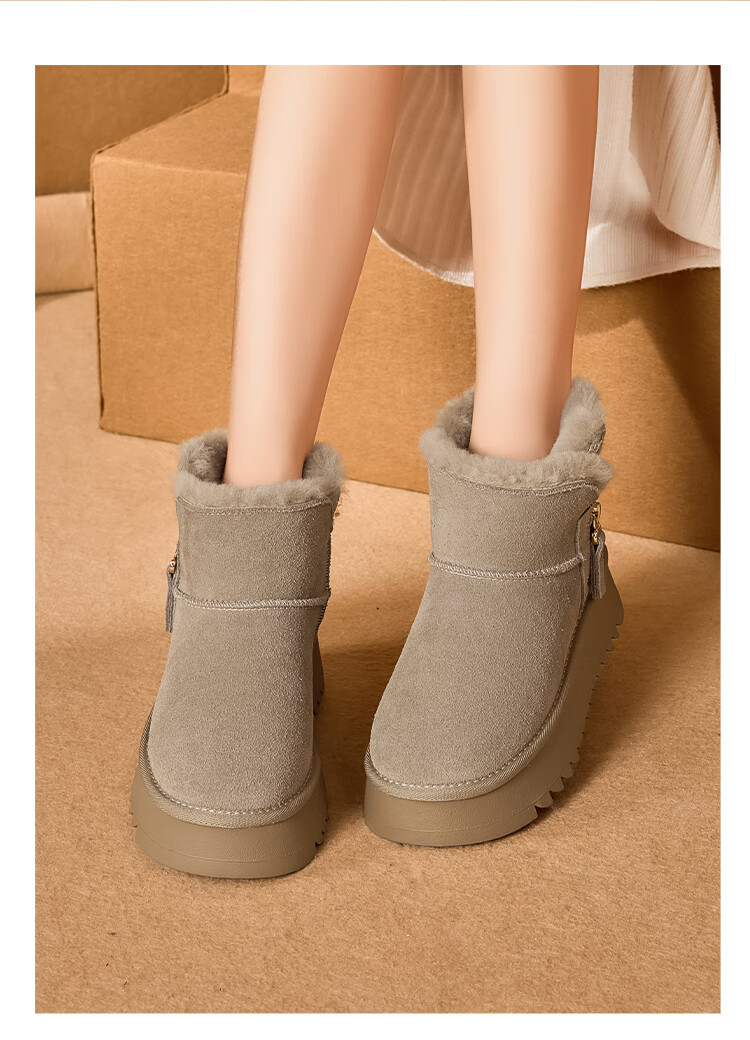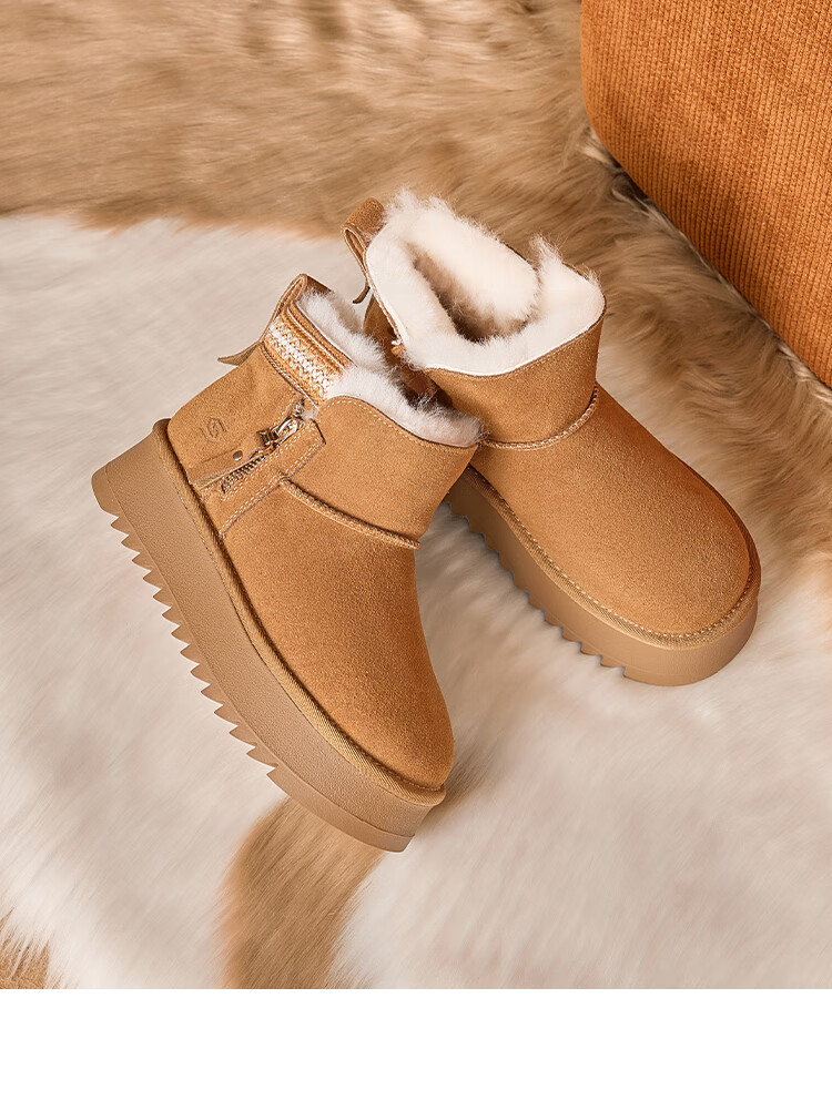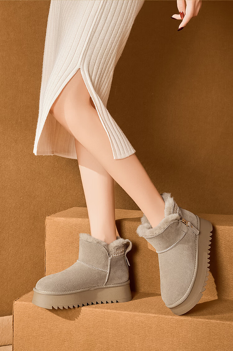 星期六雪地靴女款冬季加绒加厚2025新款真皮羊毛厚底增高防滑毛毛棉鞋女 卡其色 【牛剖层皮革】【上口羊毛】 37
