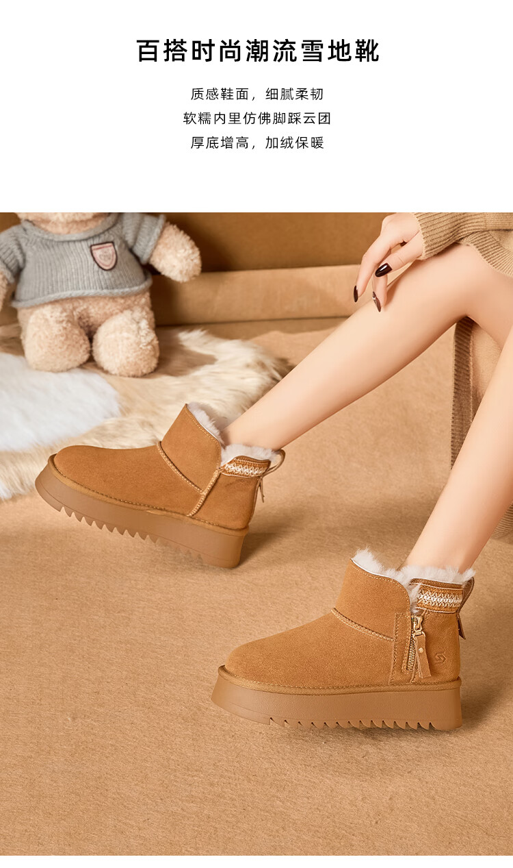 星期六加绒保暖雪地靴2025冬新款厚底百搭女靴短筒毛毛鞋东北棉鞋 驼色 【加绒保暖】 37