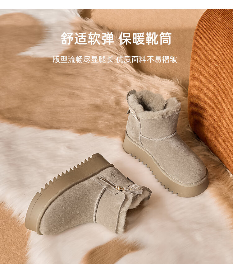 星期六加绒保暖雪地靴2025冬新款厚底百搭女靴短筒毛毛鞋东北棉鞋 卡其色 【加绒保暖】 37