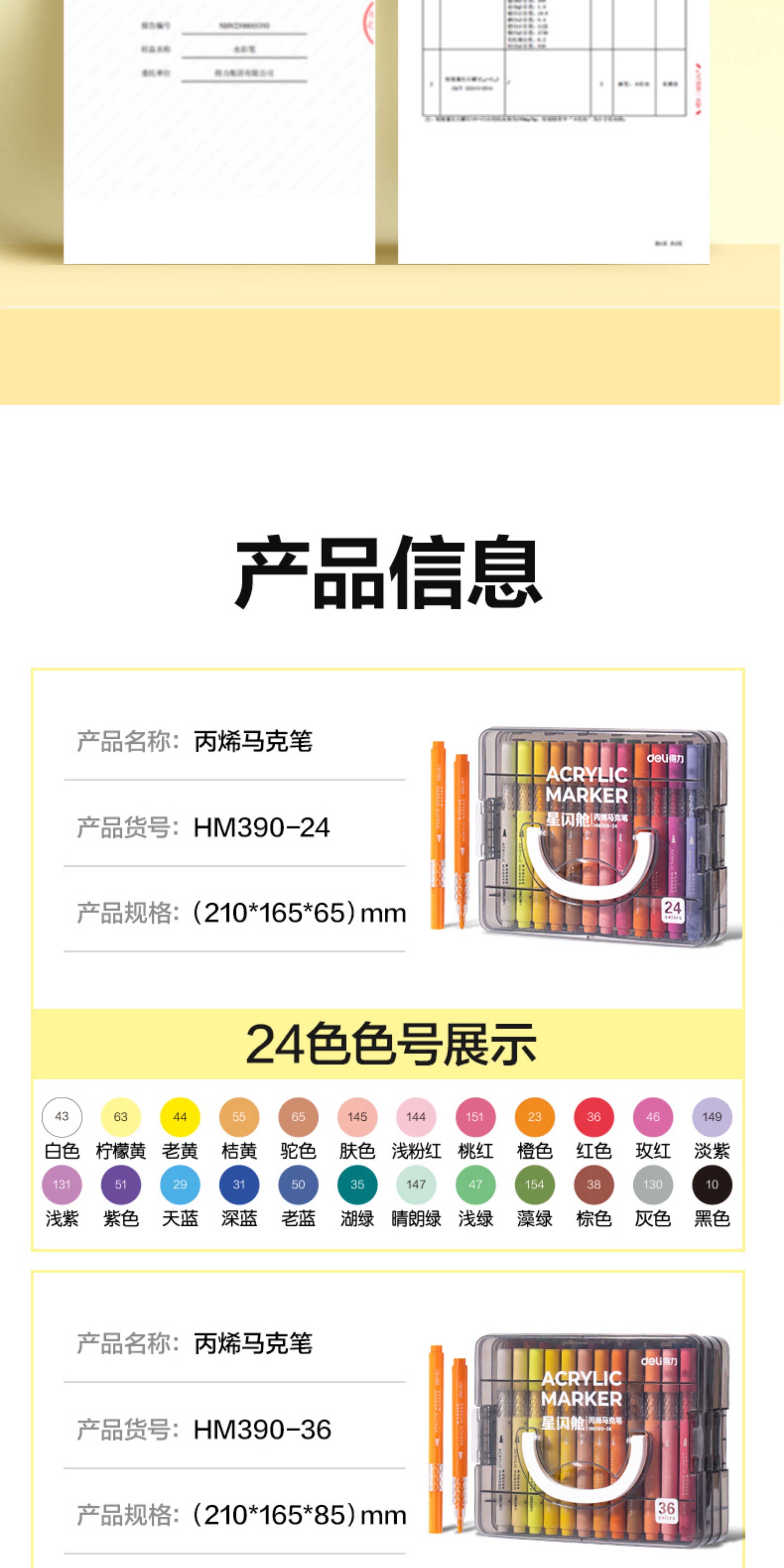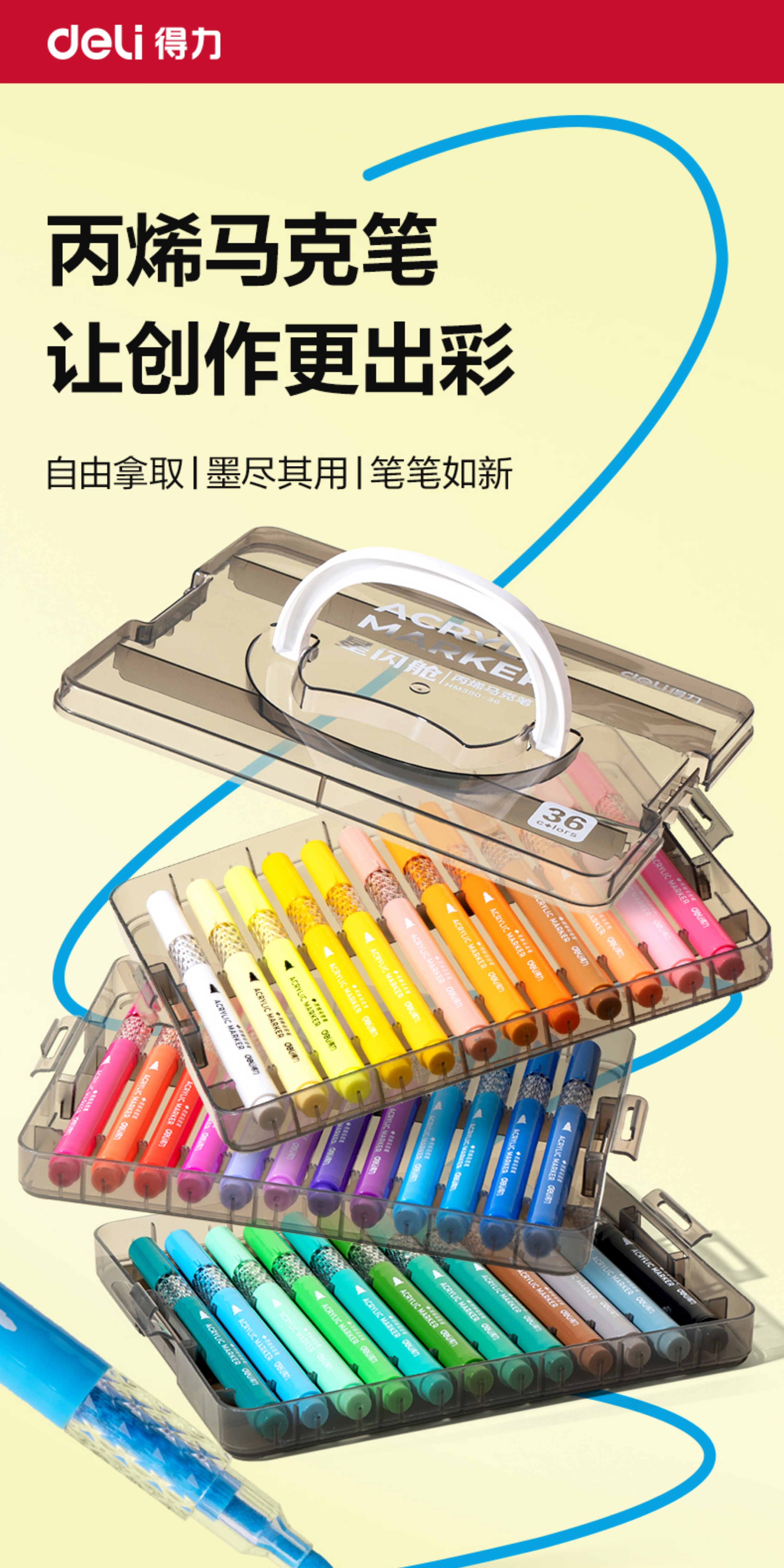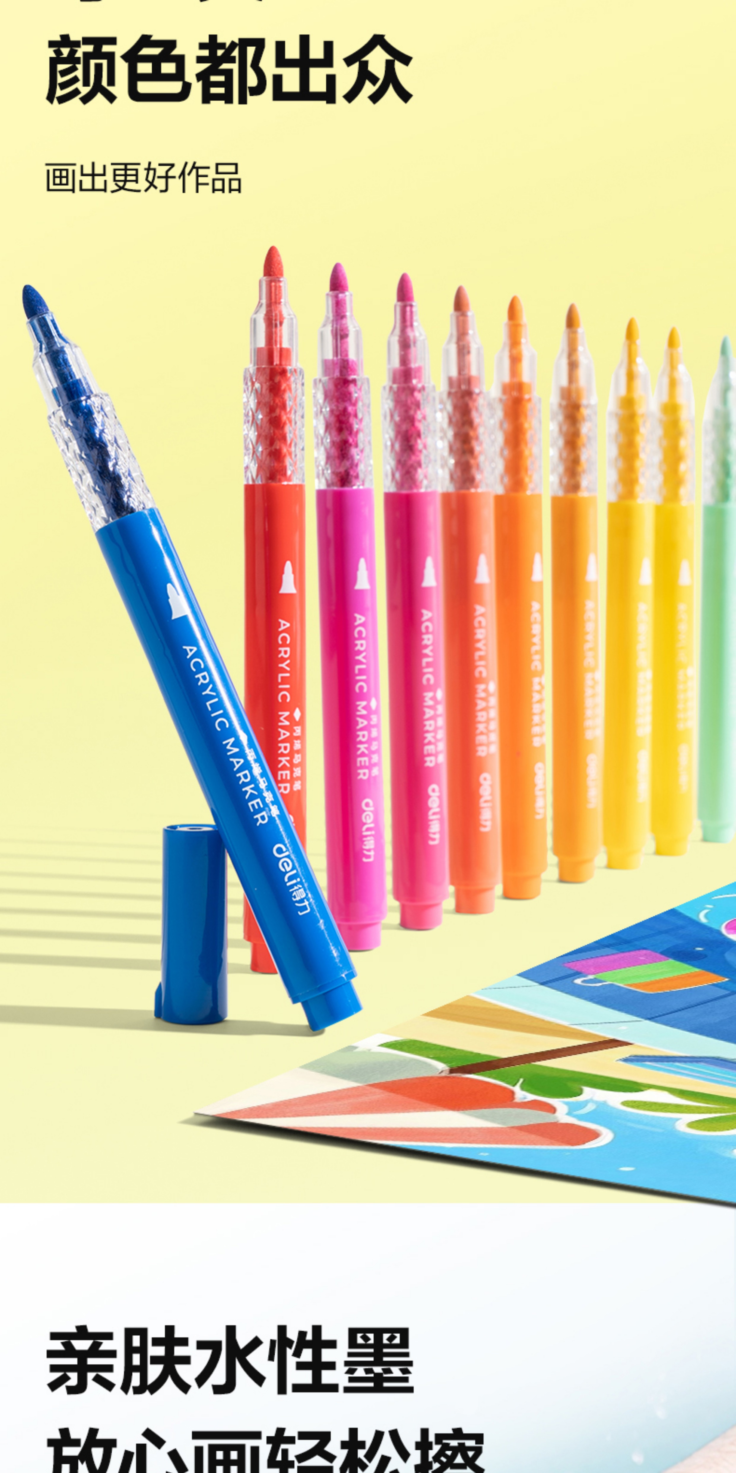 得力(deli)丙烯马克笔不透纸可叠色儿童小学生彩笔幼儿园绘画拍立得防水涂鸦美术DIY水彩笔24色36色层叠盒 【24色层叠盒】大墨量丨巨叠色丨不透纸