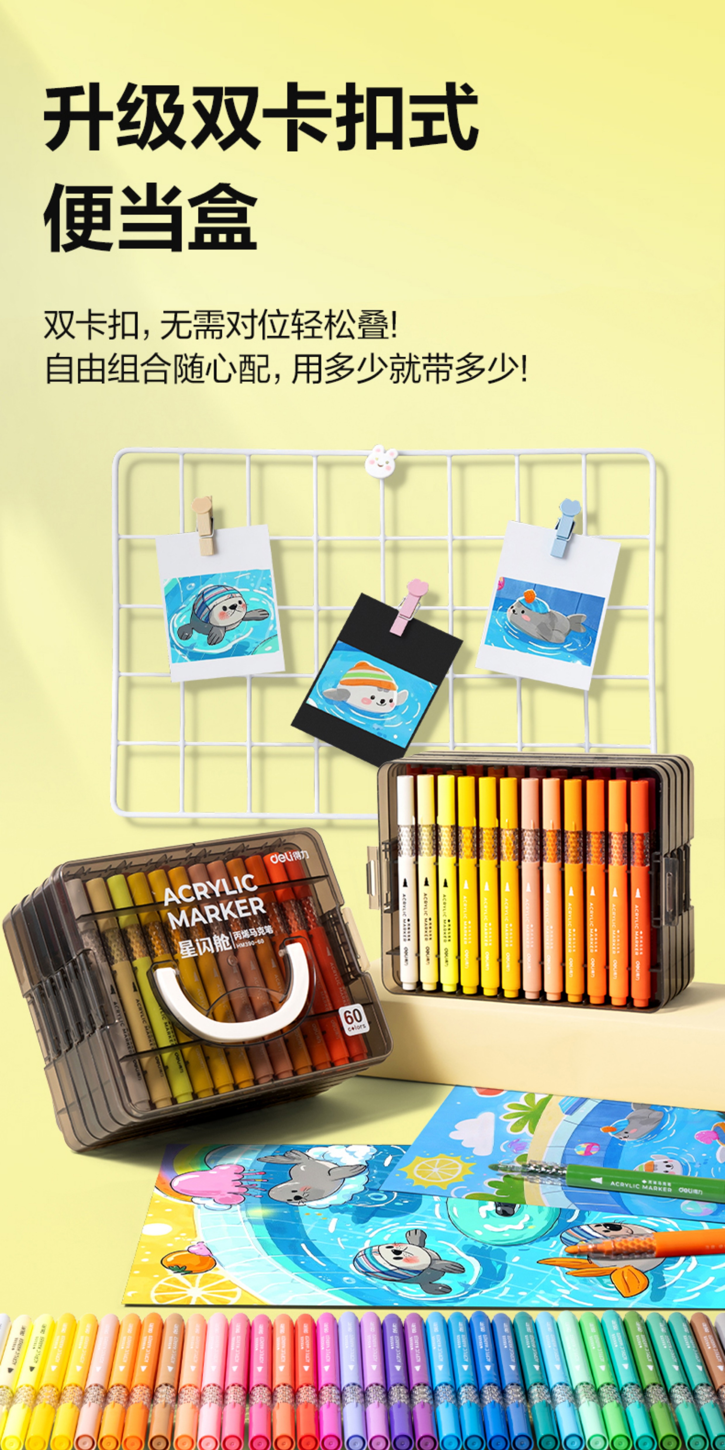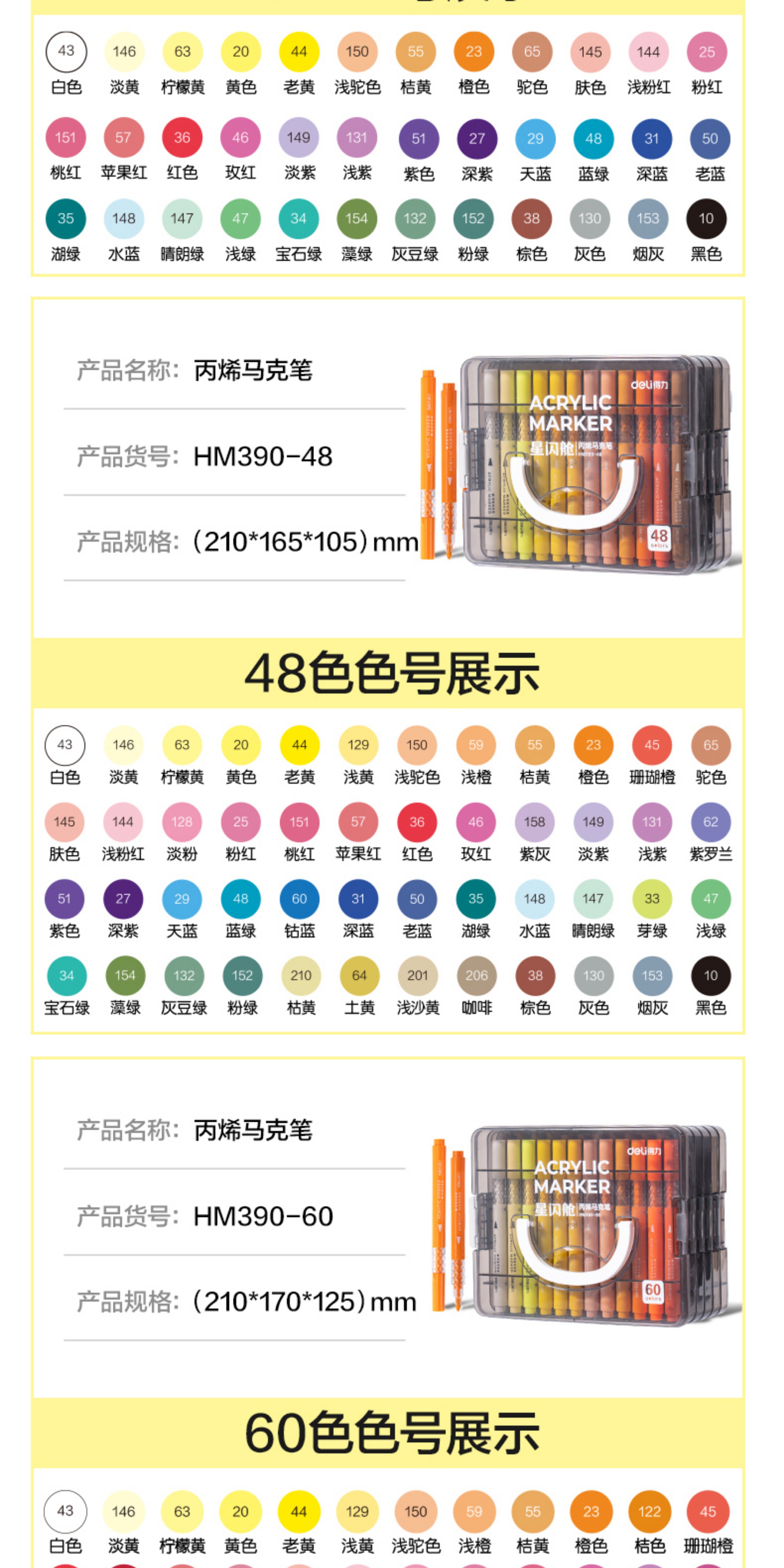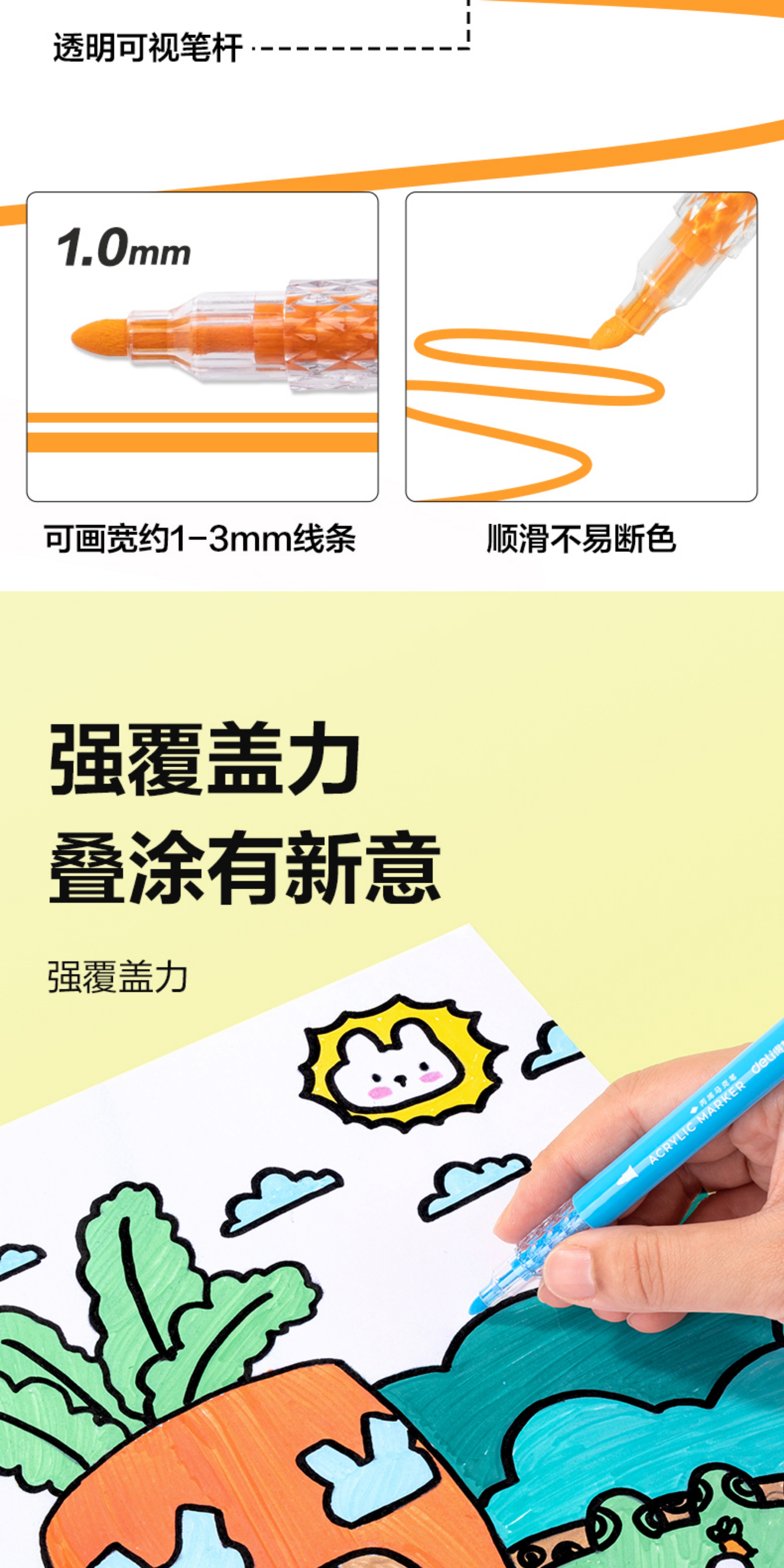 得力(deli)丙烯马克笔不透纸可叠色儿童小学生彩笔幼儿园绘画拍立得防水涂鸦美术DIY水彩笔24色36色层叠盒 【24色层叠盒】大墨量丨巨叠色丨不透纸