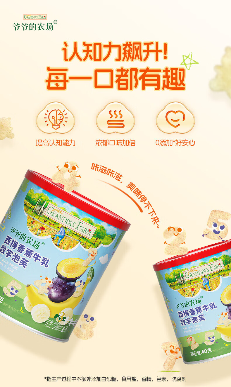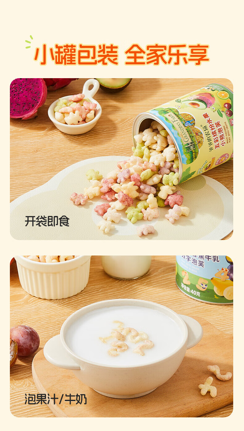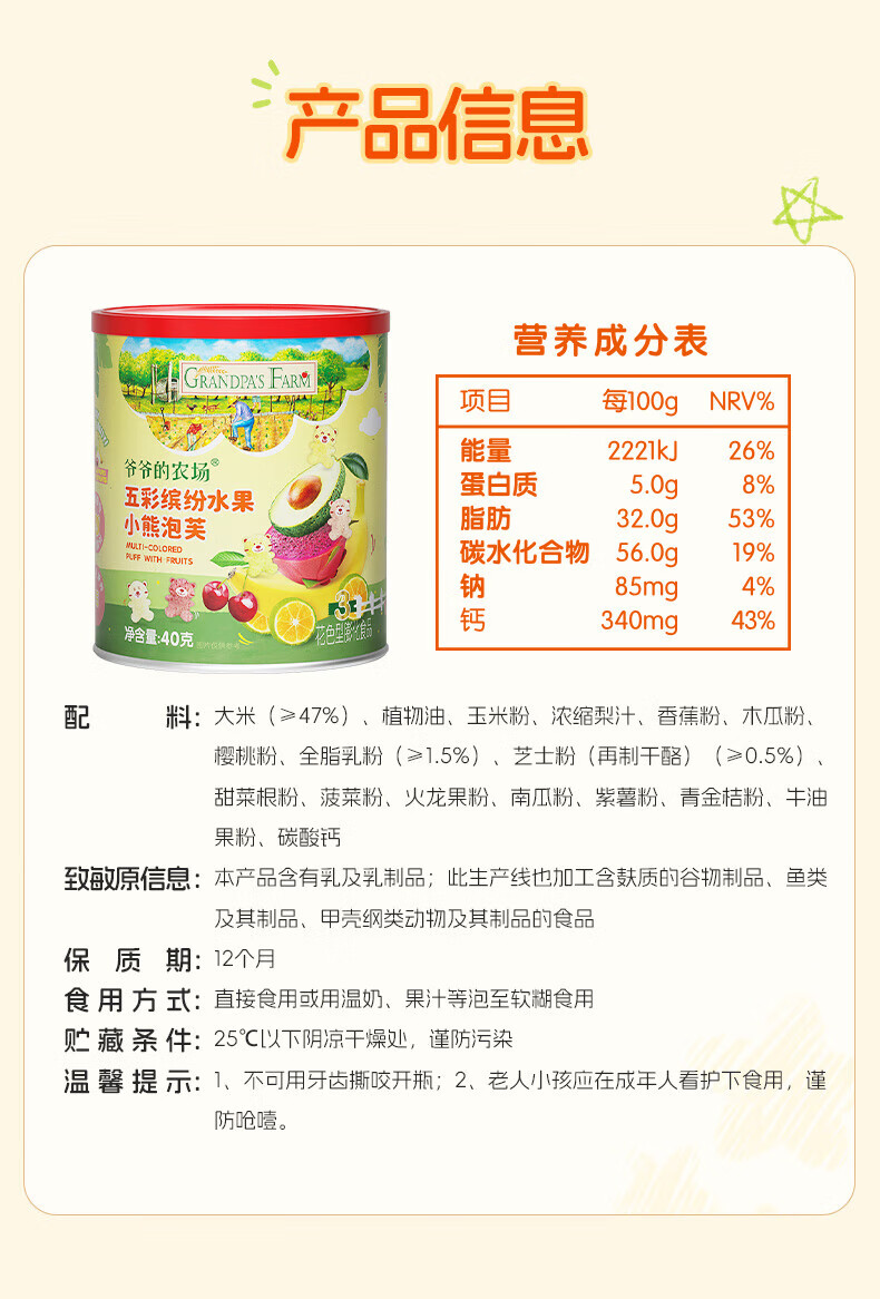 爷爷的农场宝宝儿童小馒头泡芙零食虾片小软饼大西梅儿童零食圆饼干 【罐装送礼】小熊泡芙40g