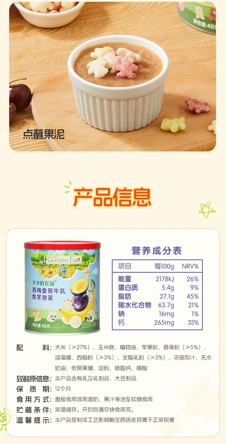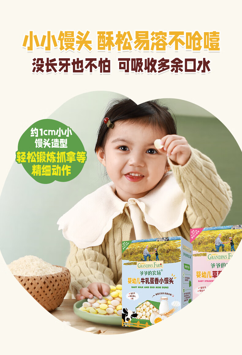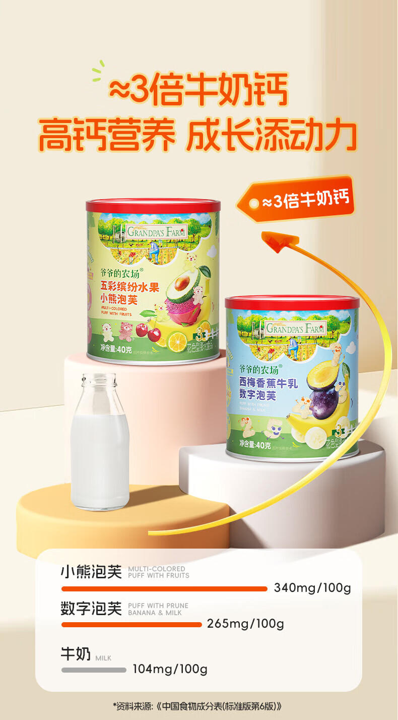 爷爷的农场宝宝儿童小馒头泡芙零食虾片小软饼大西梅儿童零食圆饼干 【罐装送礼】小熊泡芙40g