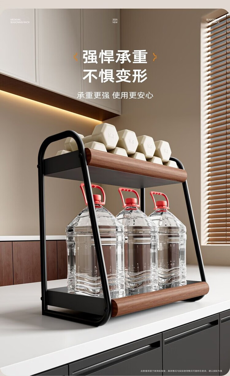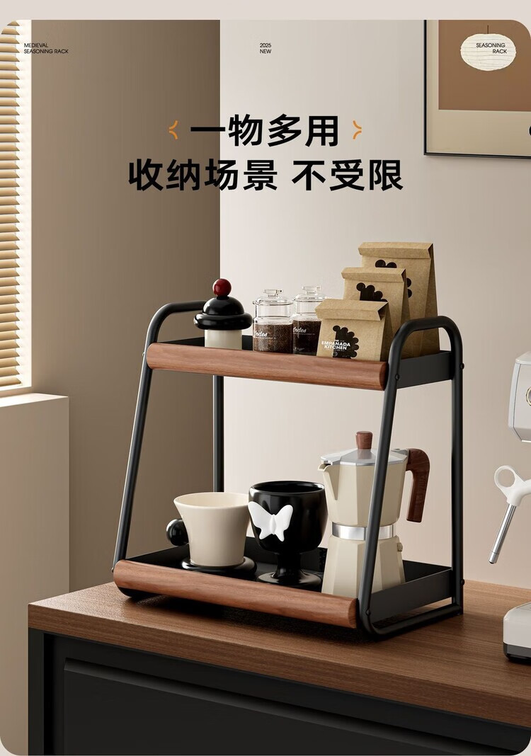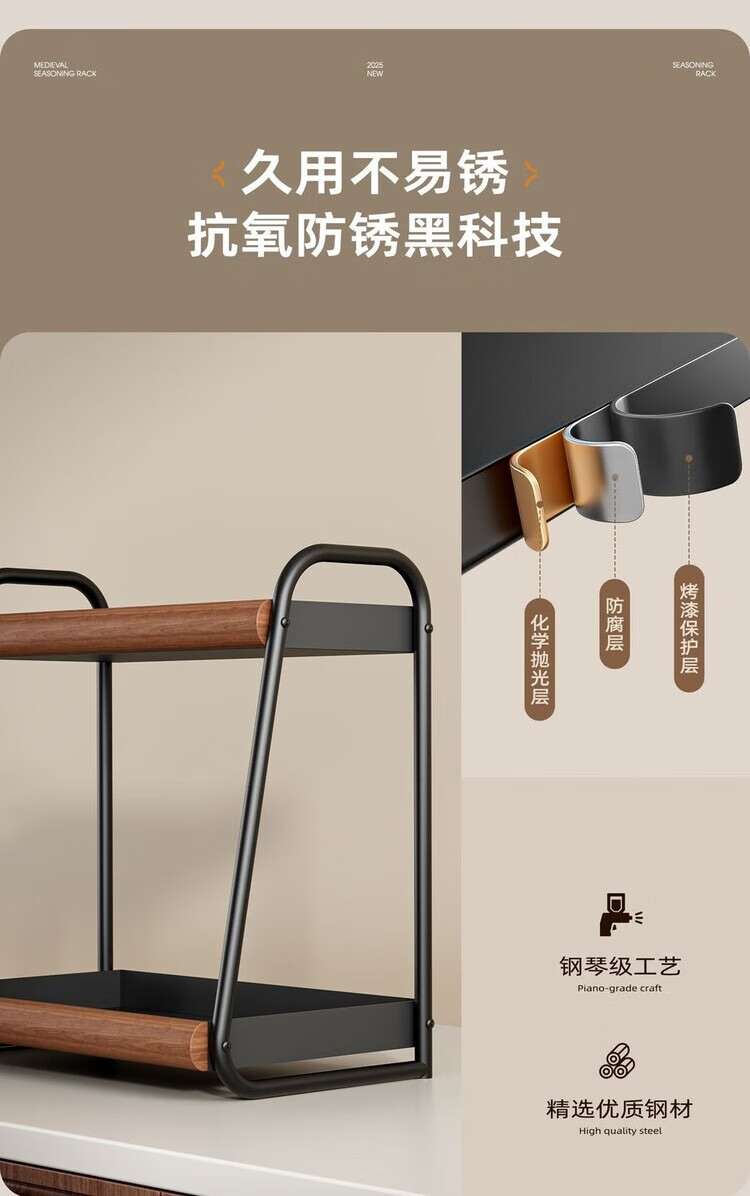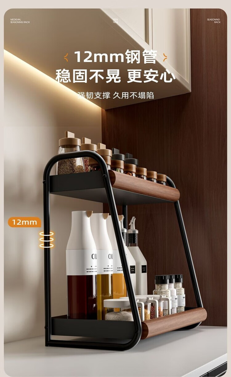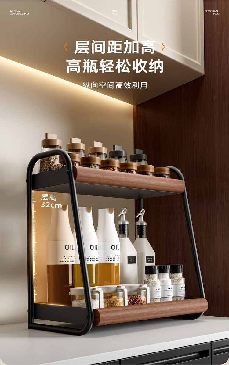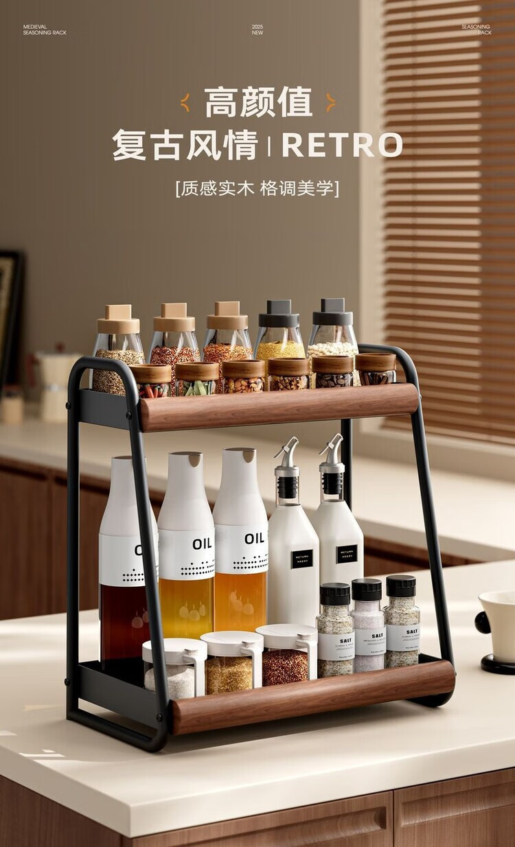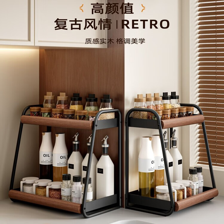 简漾调料品置物架厨房双层家用台面多功能调味料放油盐酱醋的收纳架子 30cm-双层中古风