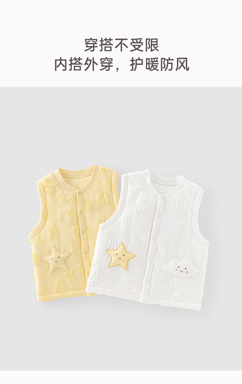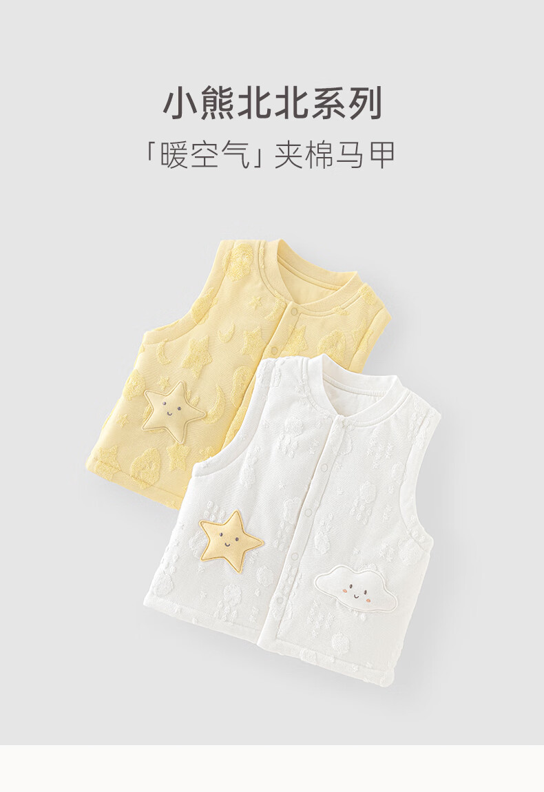 乖奇熊【夹棉加厚】婴幼儿马甲秋冬男女宝宝外出背心外套儿童保暖上衣服 粉黄 90