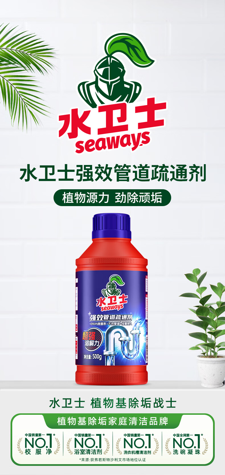 水卫士管道疏通剂 下水道疏通剂 厨房马桶卫生间管道强力疏通剂水卫仕 管道除臭疏通剂3瓶【重磅升级囤货装】