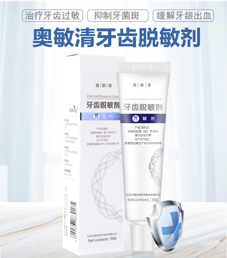奥敏清牙齿脱敏剂缓解牙齿过敏减少牙菌斑牙龈出血修护敏感脱敏糊剂医用脱敏剂 牙齿脱敏剂-60克/支