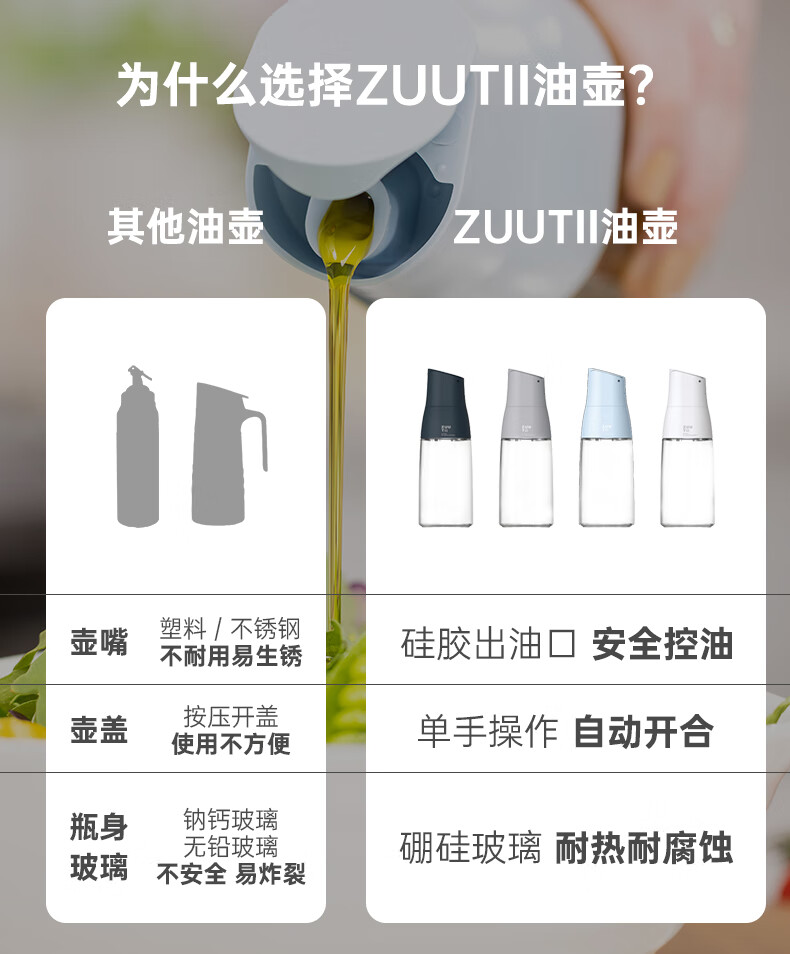 zuutii油壶厨房用喷油壶重力油壶调料罐盐罐(商品未使用,包装破损) 调料罐99元3件(商品未使用,包装破损) 3件套