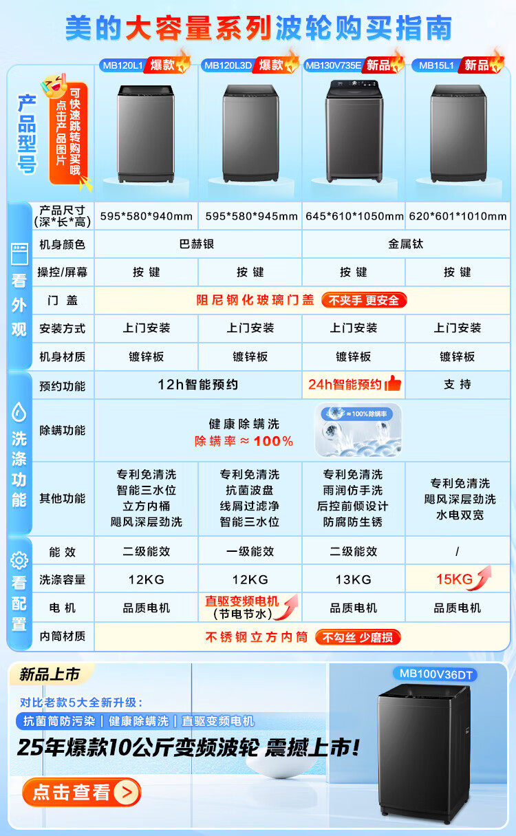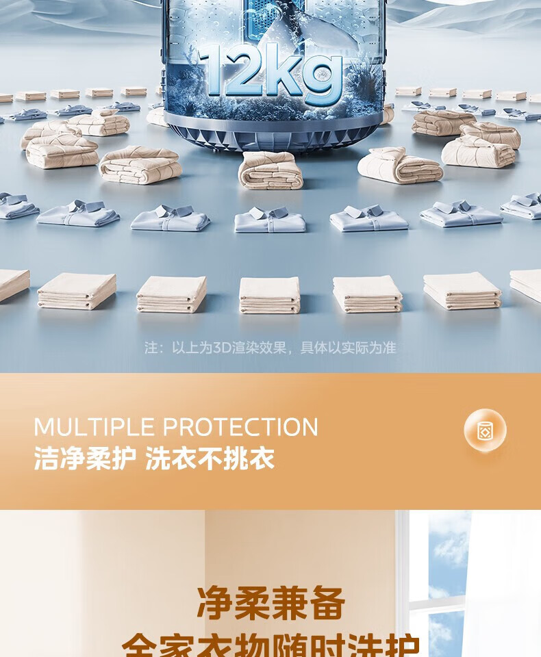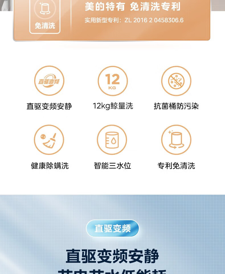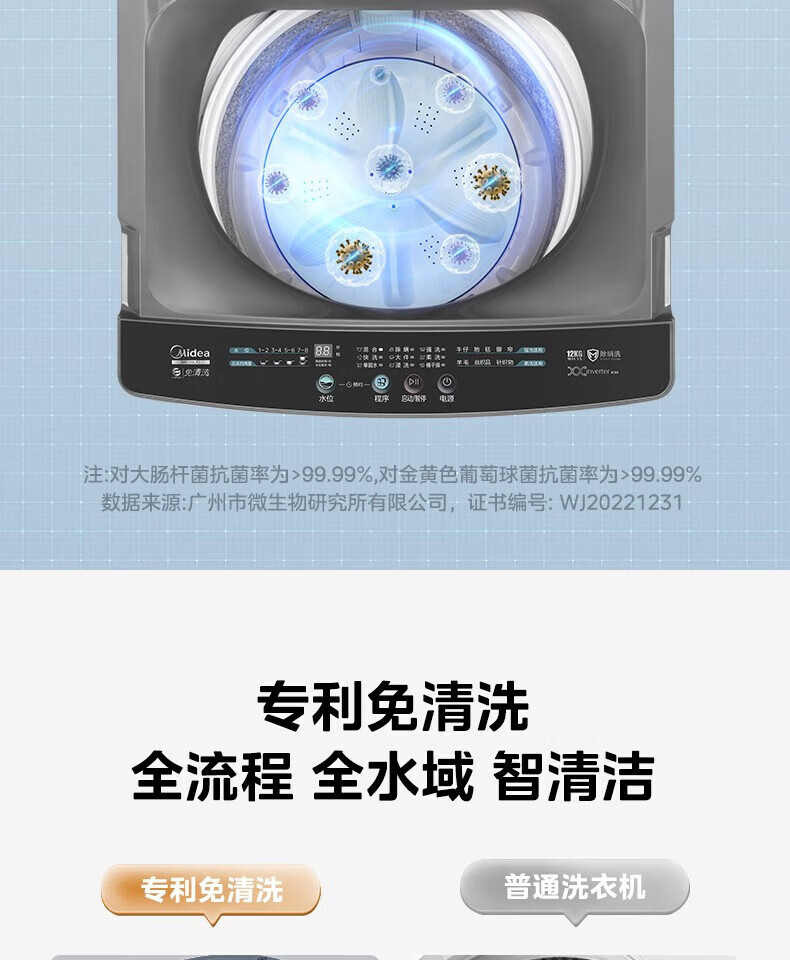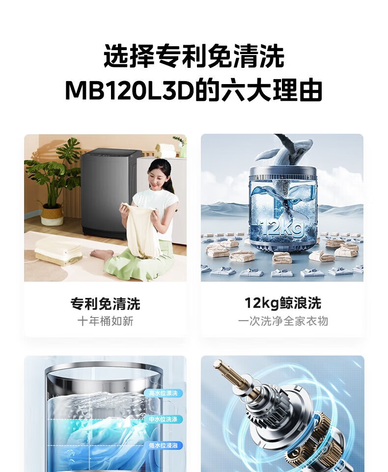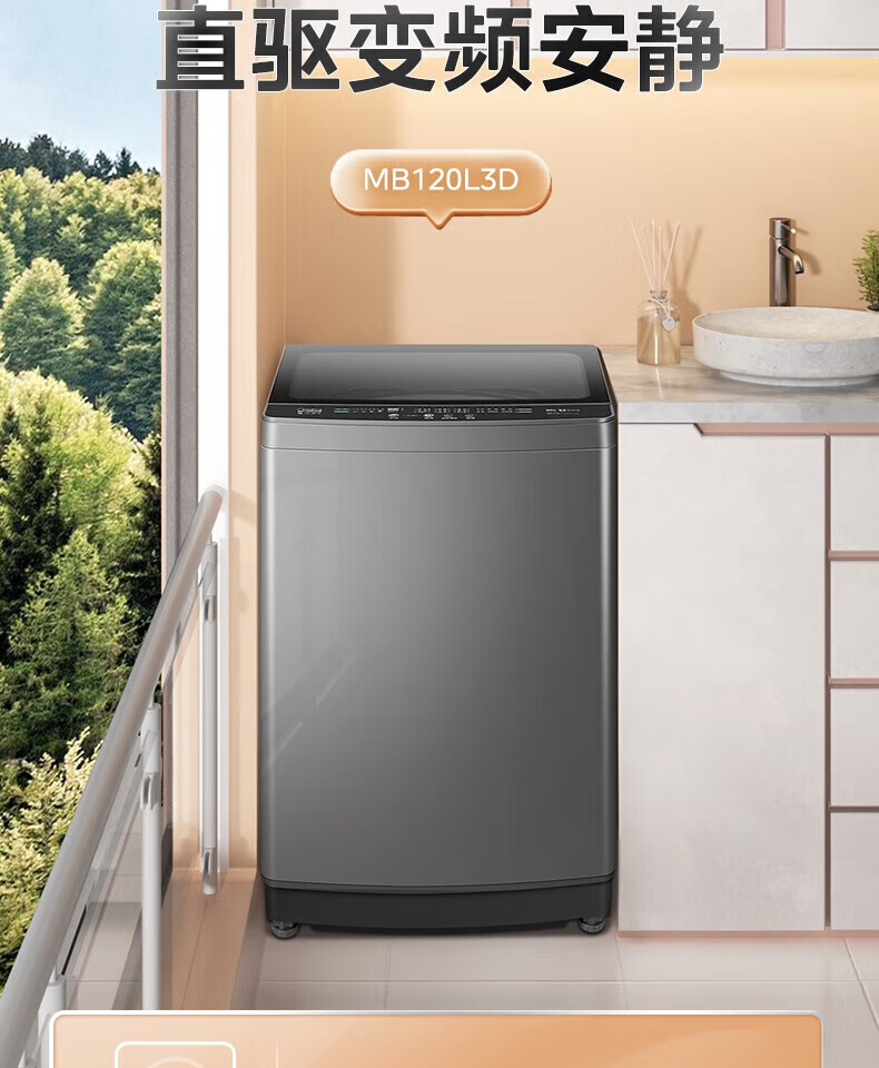 美的(Midea)全自动波轮洗衣机家用大容量12公斤 一级能效省水电 L3D出租房必备神器 直驱变频省家电补贴20% MB120L3D