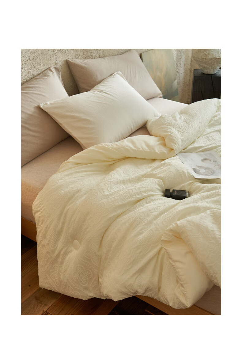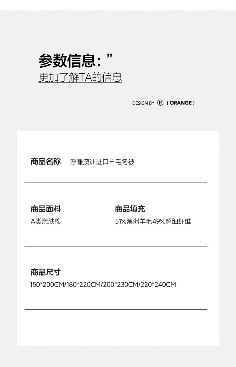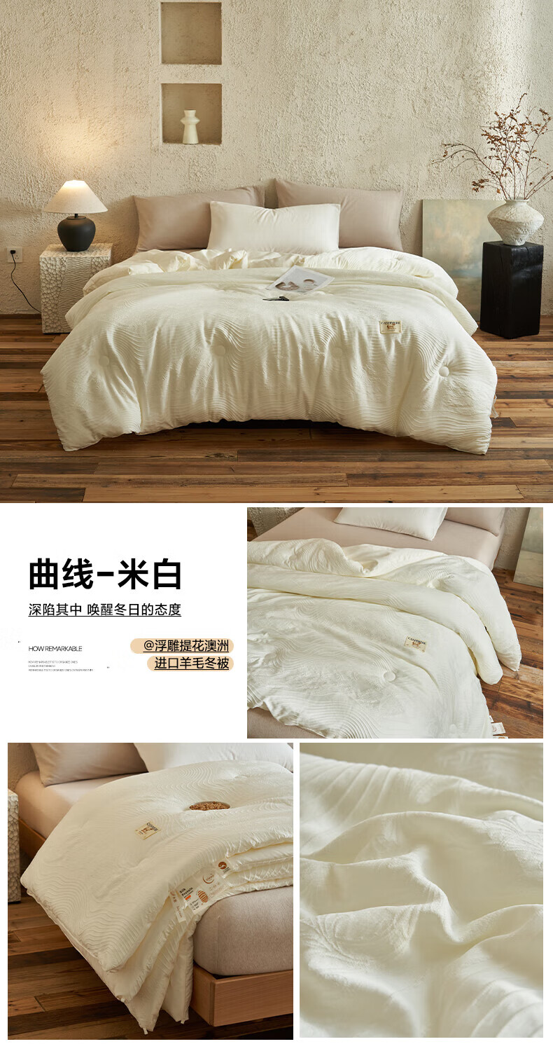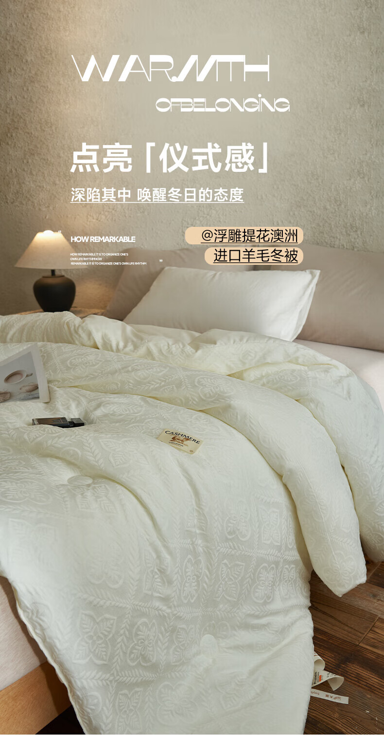 恒源祥澳洲进口羊毛被浮雕提花被子被芯冬季加厚8斤冬被单人春秋空调被 四叶草-浅灰 200*230cm【8斤冬被】
