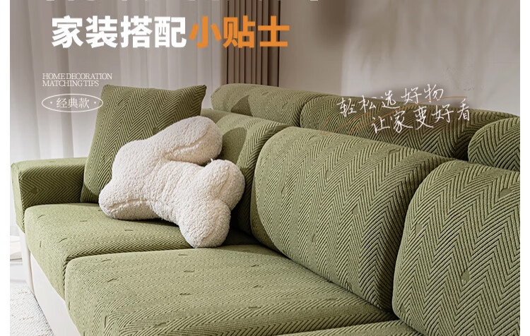 无印良品秋冬沙发套罩2025新款防猫抓不粘毛沙发套防滑沙发套定制沙发罩套 加厚摇粒绒-澜心-抹茶绿 M双人套