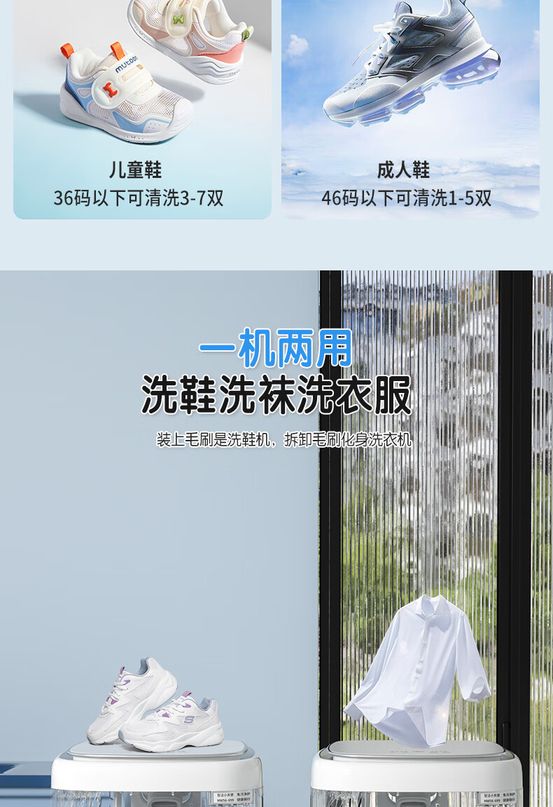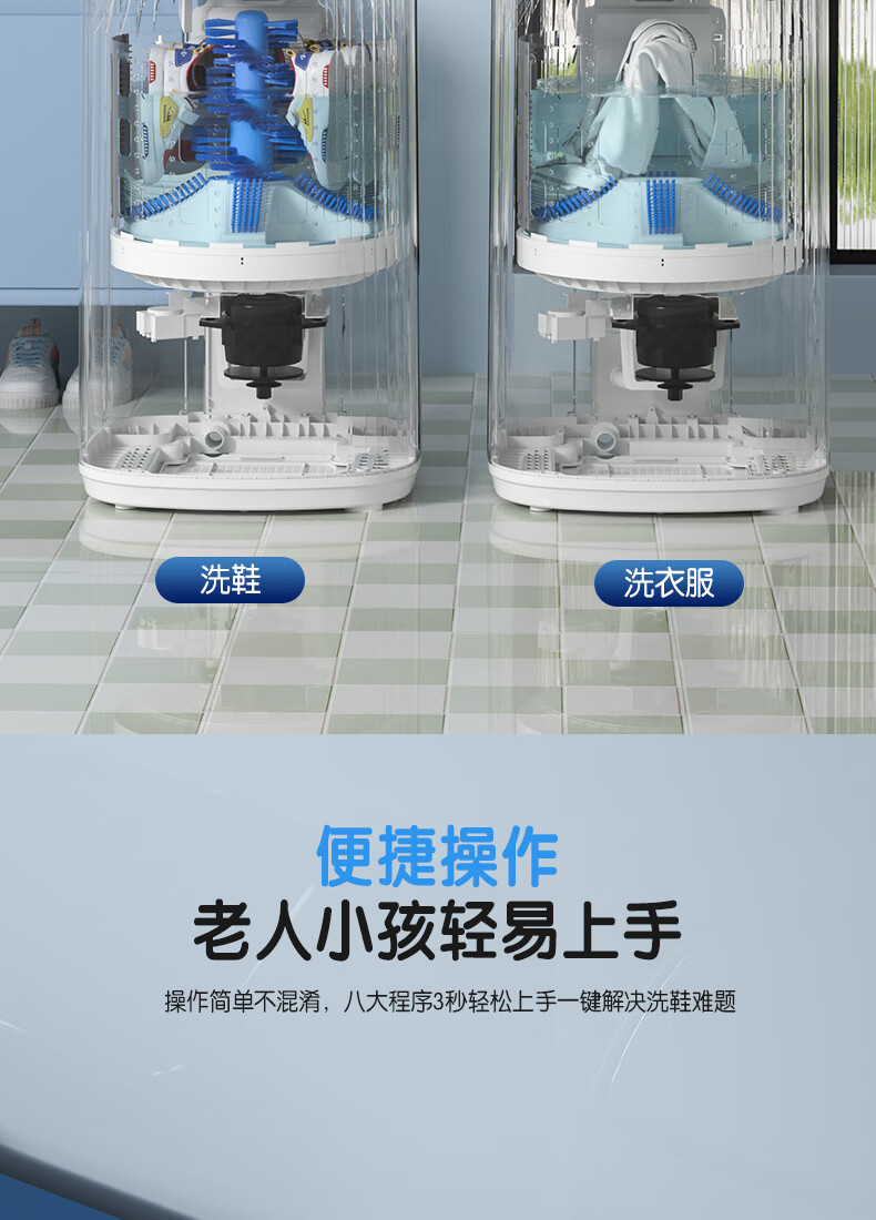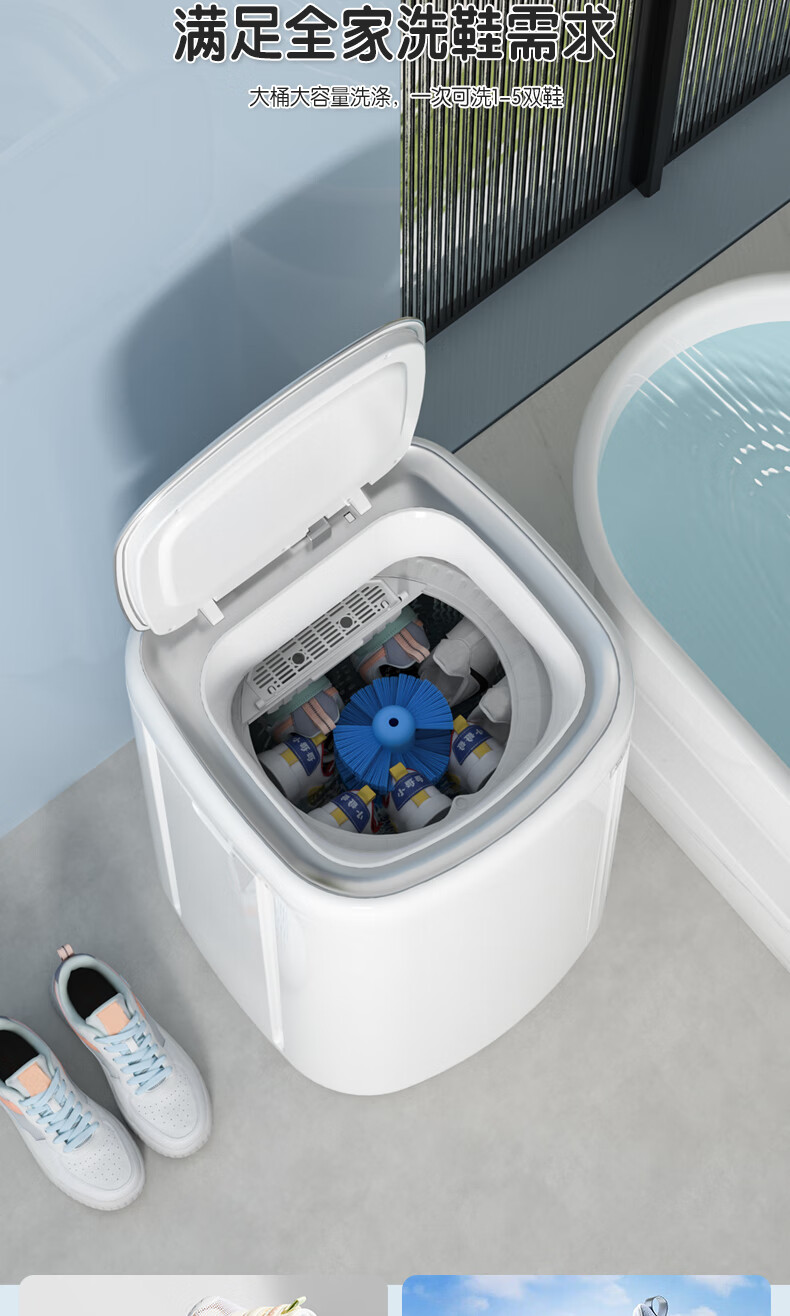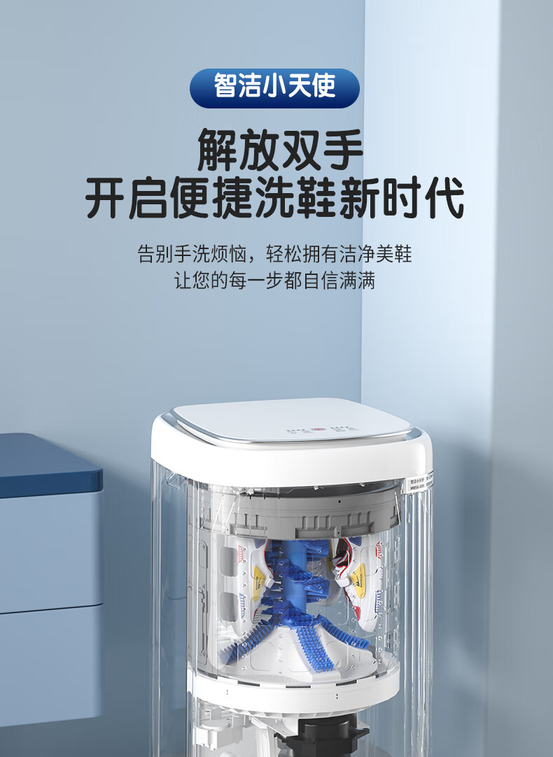 智洁小天使迷你洗鞋机家用全自动小型刷鞋机洗脱一体擦鞋机洗袜子机器全自动洗鞋洗衣两用 烘干洗鞋机刷鞋机 豪华款洗47码【蓝光洁净+全壁刷+柱刷】