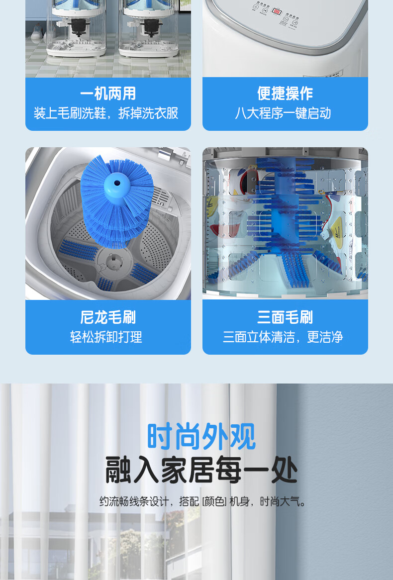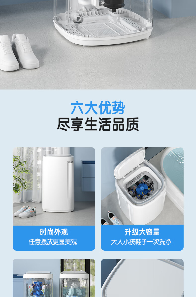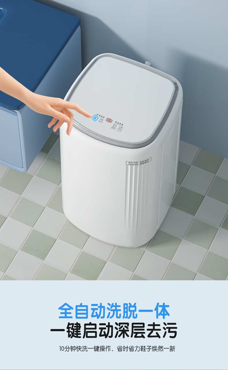 智洁小天使迷你洗鞋机家用全自动小型刷鞋机洗脱一体擦鞋机洗袜子机器全自动洗鞋洗衣两用 烘干洗鞋机刷鞋机 豪华款洗47码【蓝光洁净+全壁刷+柱刷】