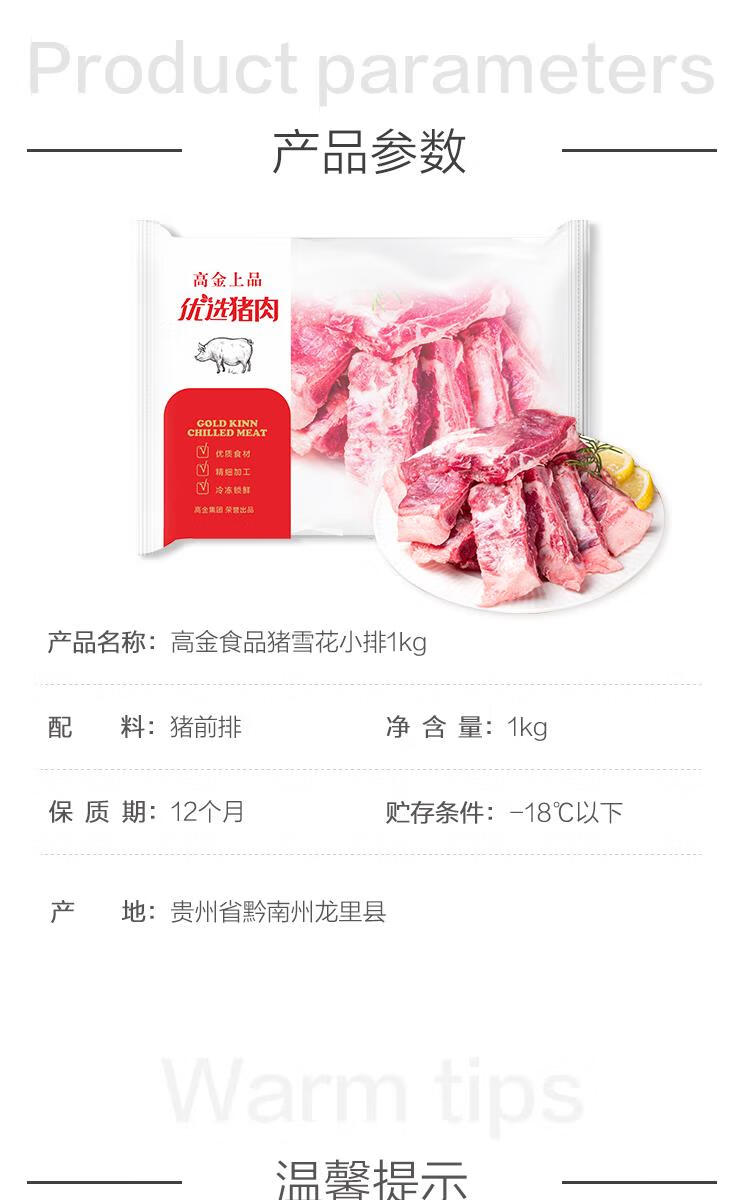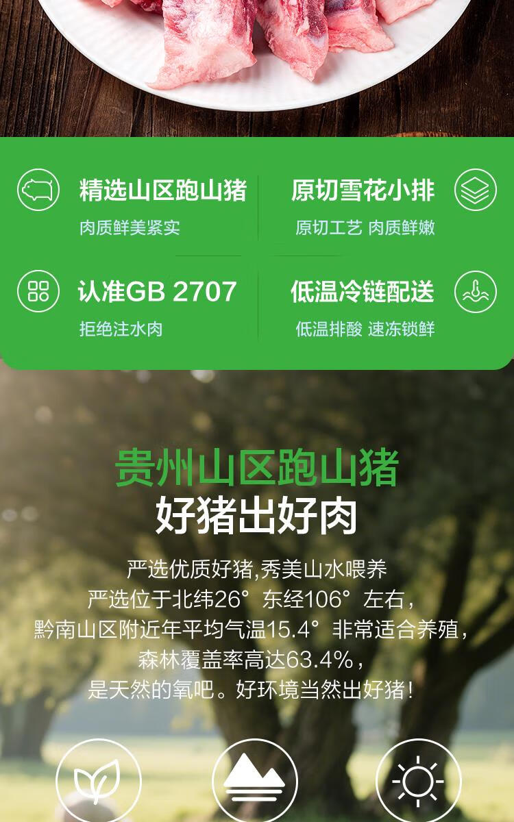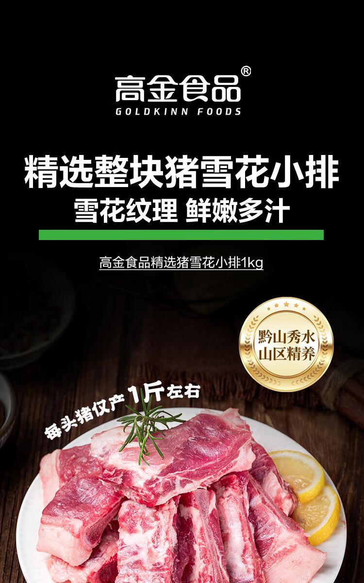 高金食品 猪雪花小排2斤贵州跑山猪小前排排骨猪飞机翅小排猪翅排小排前排