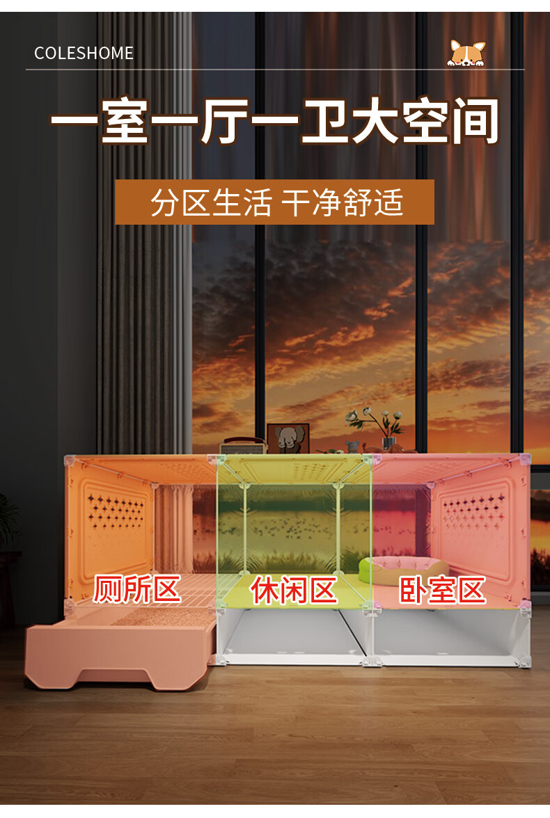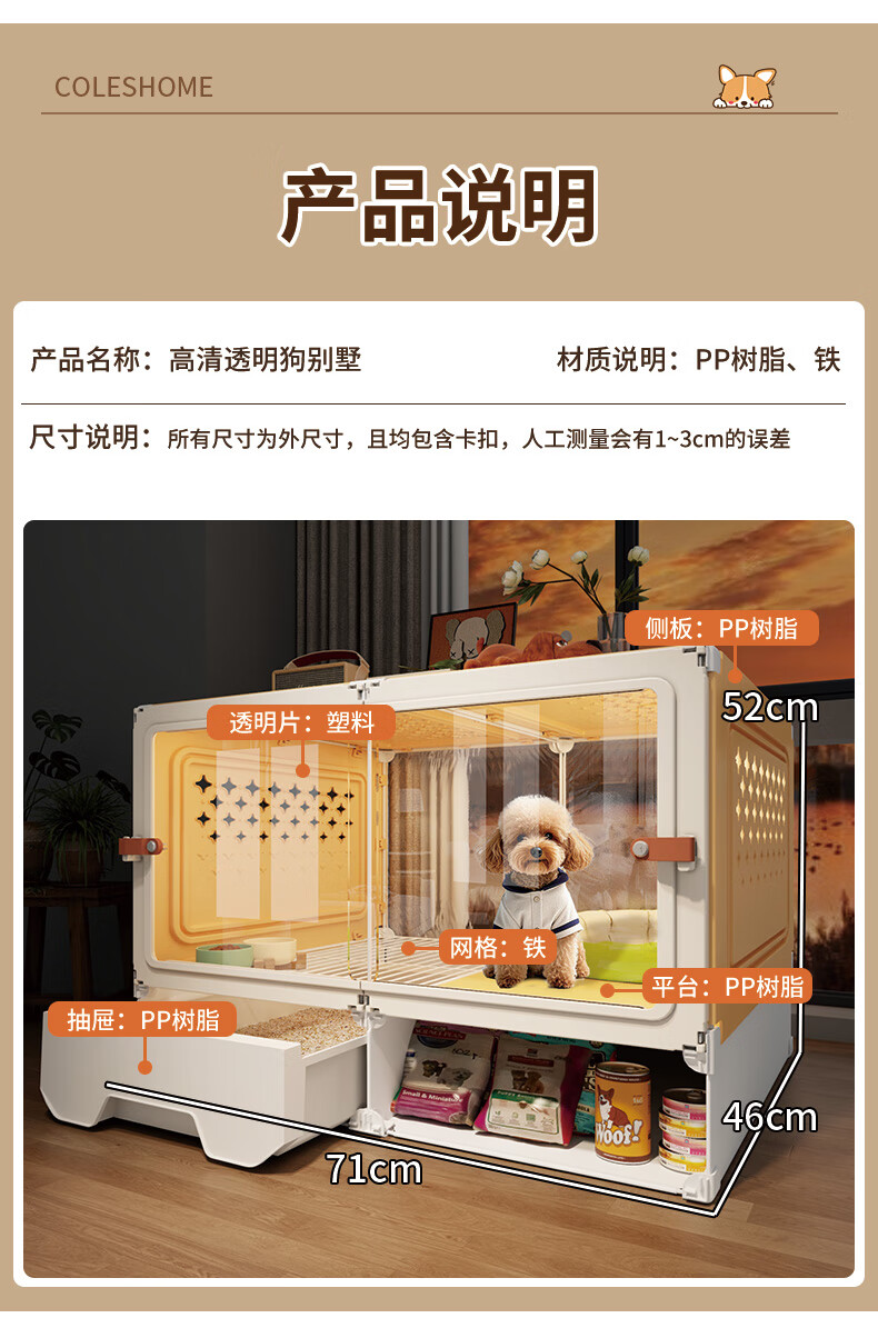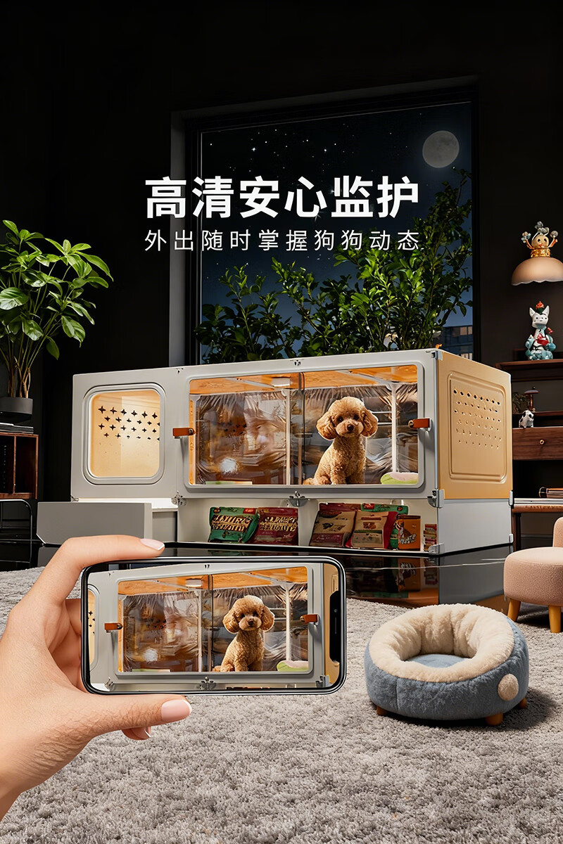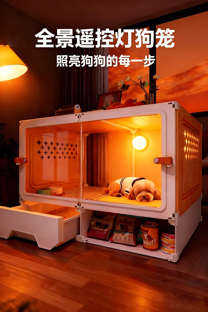 蔻丝狗笼子小型犬带厕所分离家用带遥控灯泰迪博美小狗窝豪华别墅