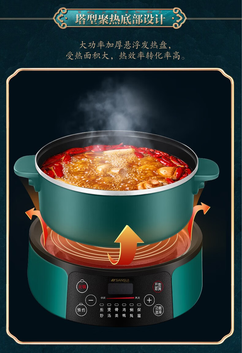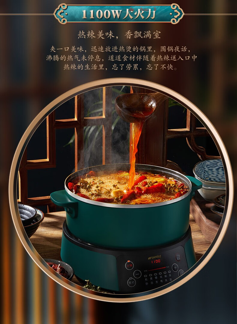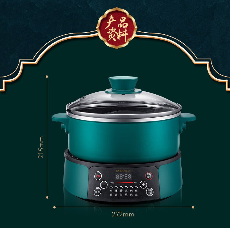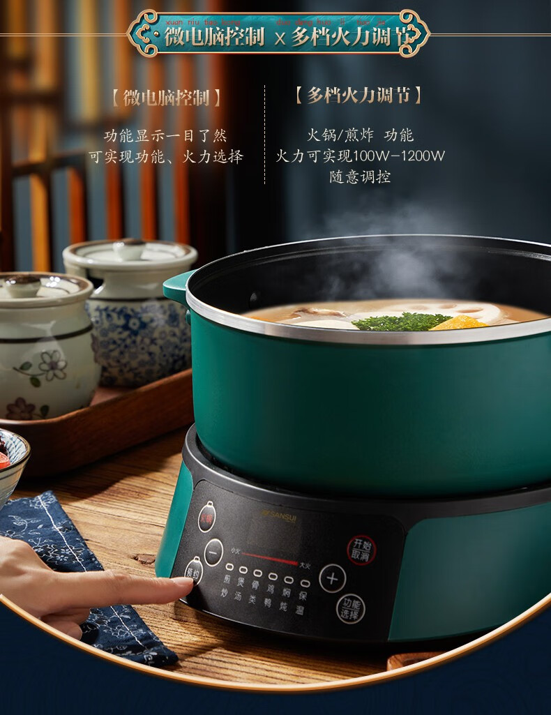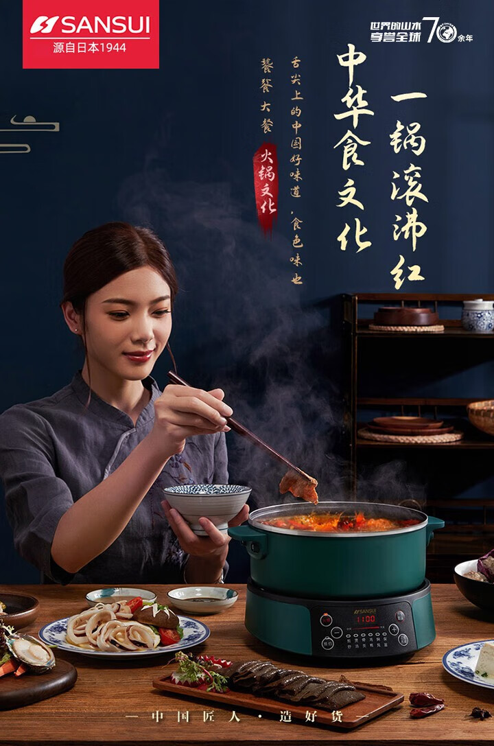 日本山水牌电火锅分体式不粘内胆家用单人2.5L可拆洗多功能涮锅保温电煮锅团购送礼 绿色