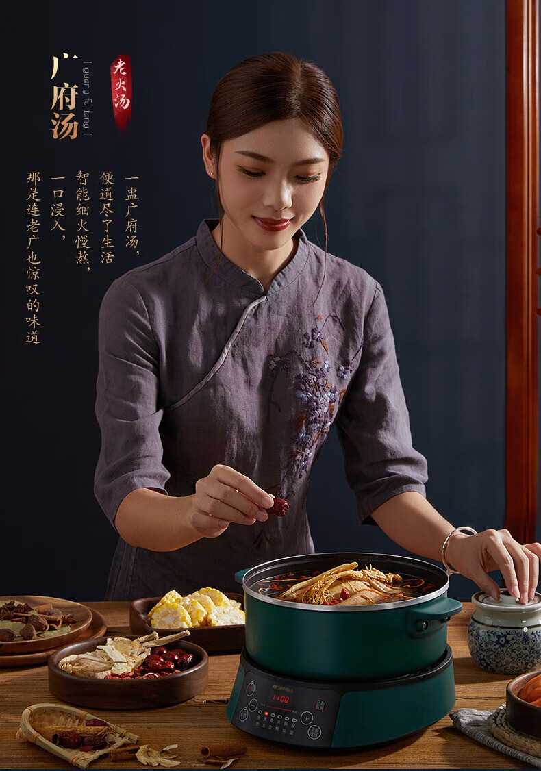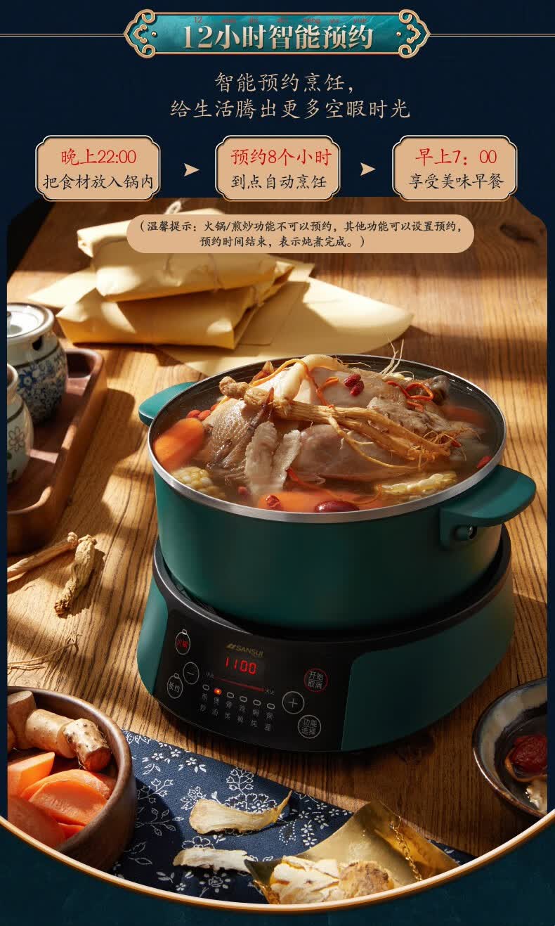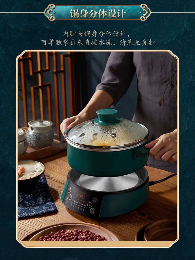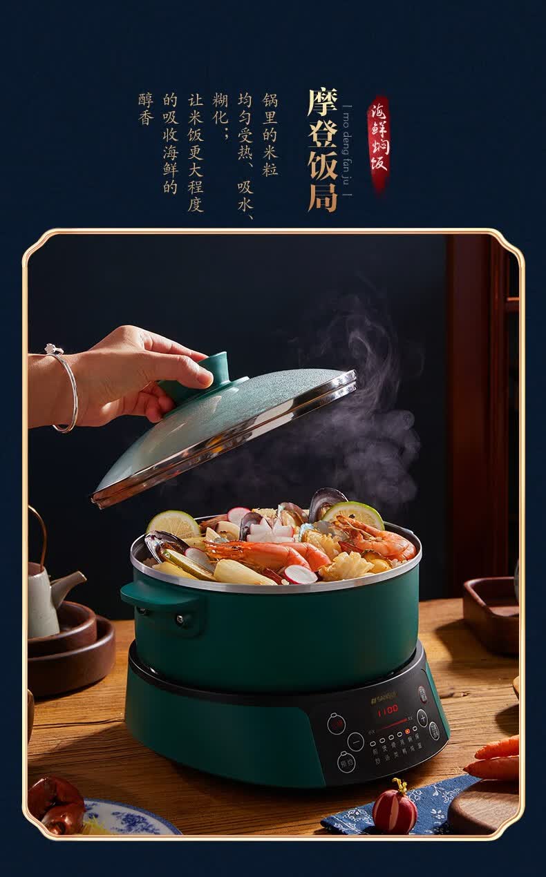 日本山水牌电火锅分体式不粘内胆家用单人2.5L可拆洗多功能涮锅保温电煮锅团购送礼 绿色