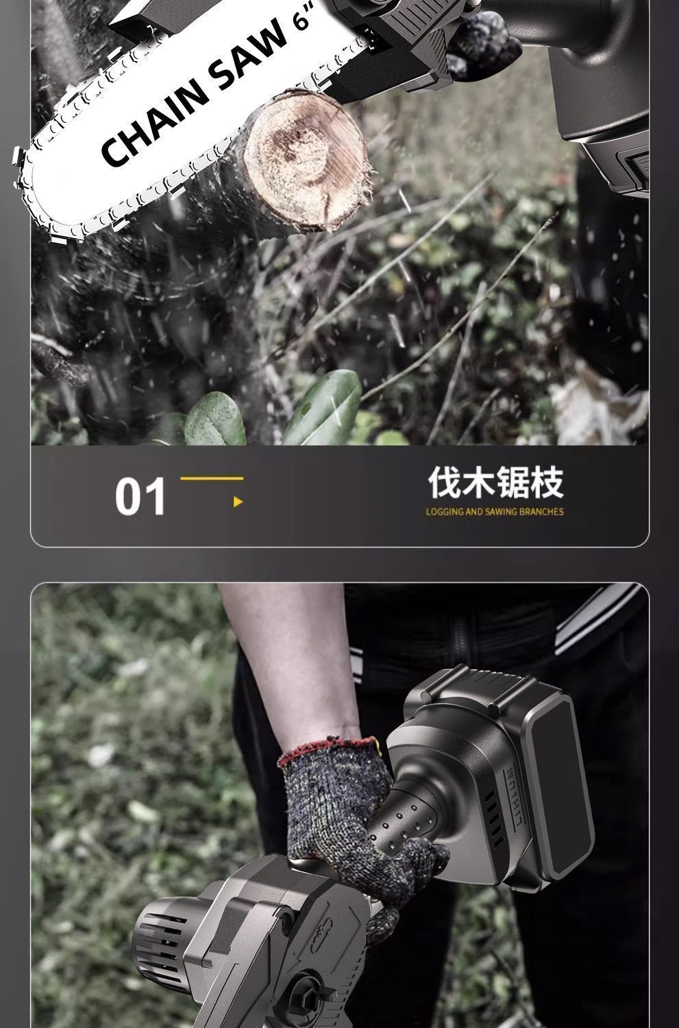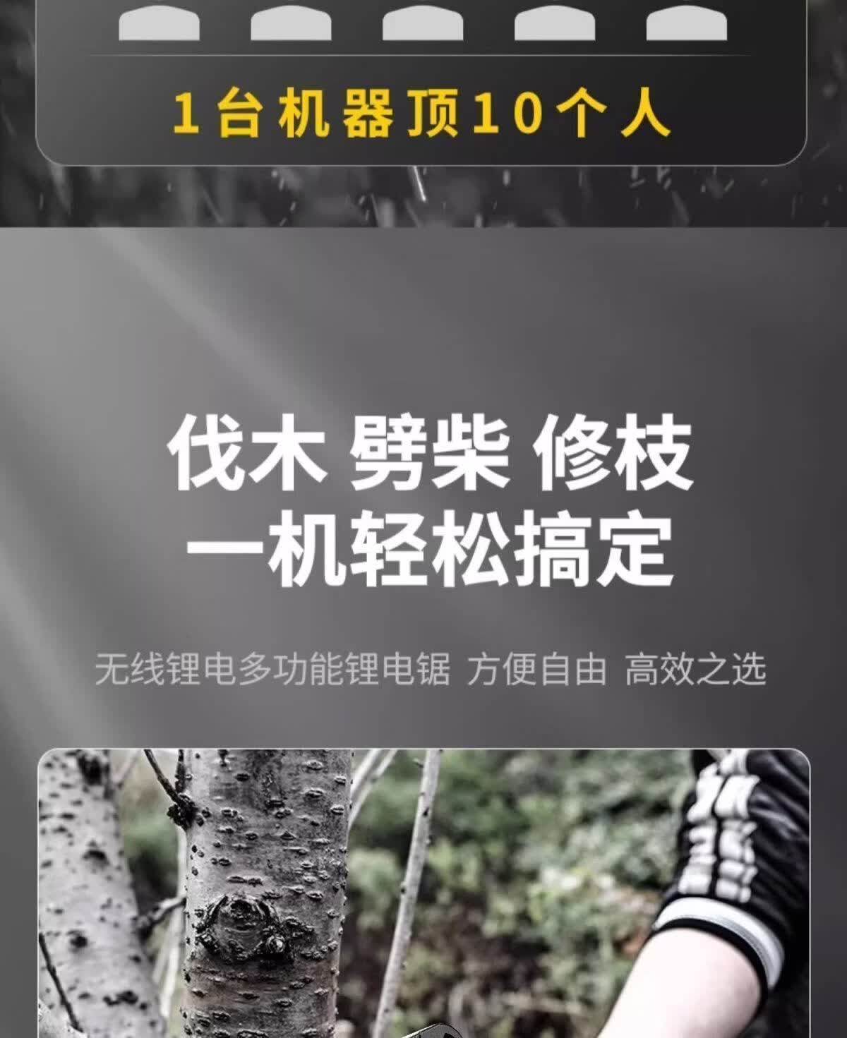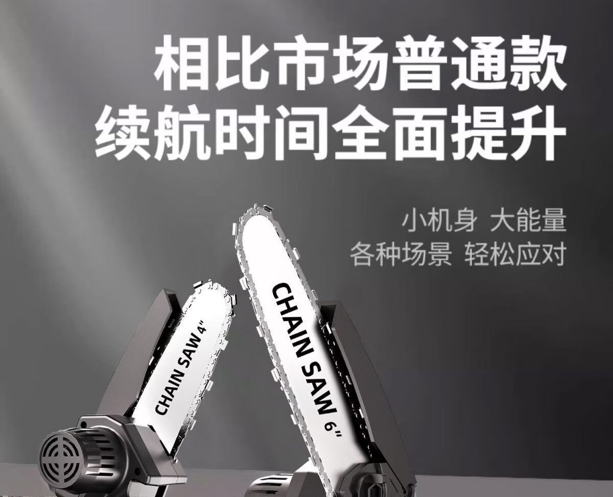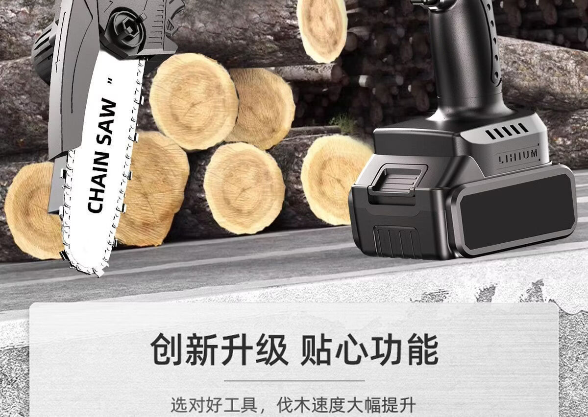 纯铜电机多功能充电手提式锂电链锯户外无线小型伐木手锯砍树修枝 8寸-升级续航-10节-2电2链