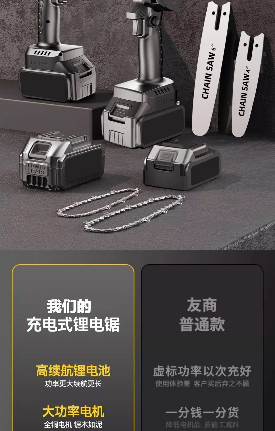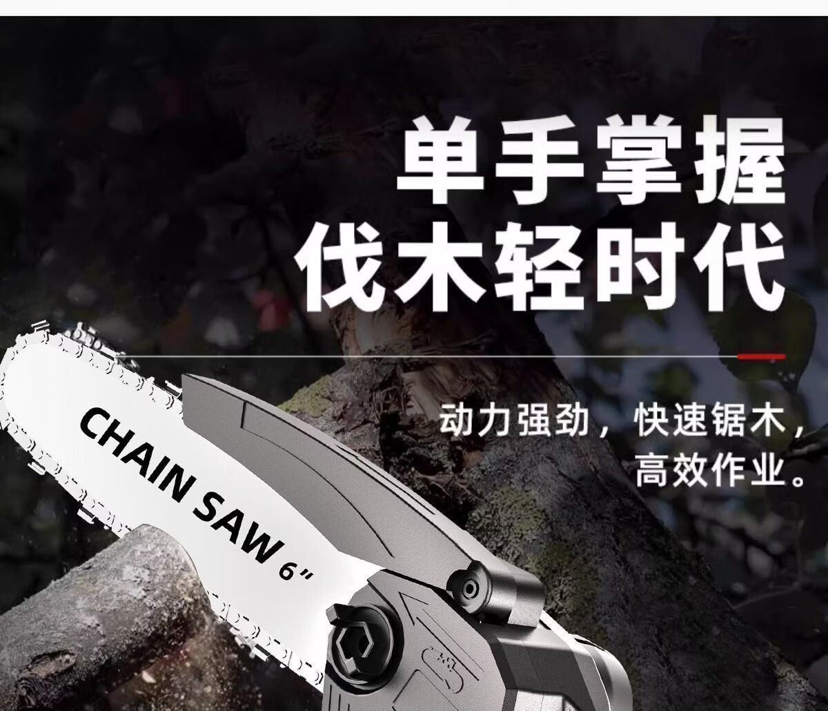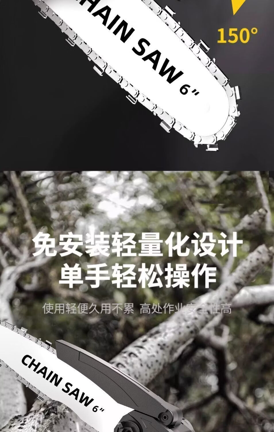 纯铜电机多功能充电手提式锂电链锯户外无线小型伐木手锯砍树修枝 8寸-升级续航-10节-2电2链
