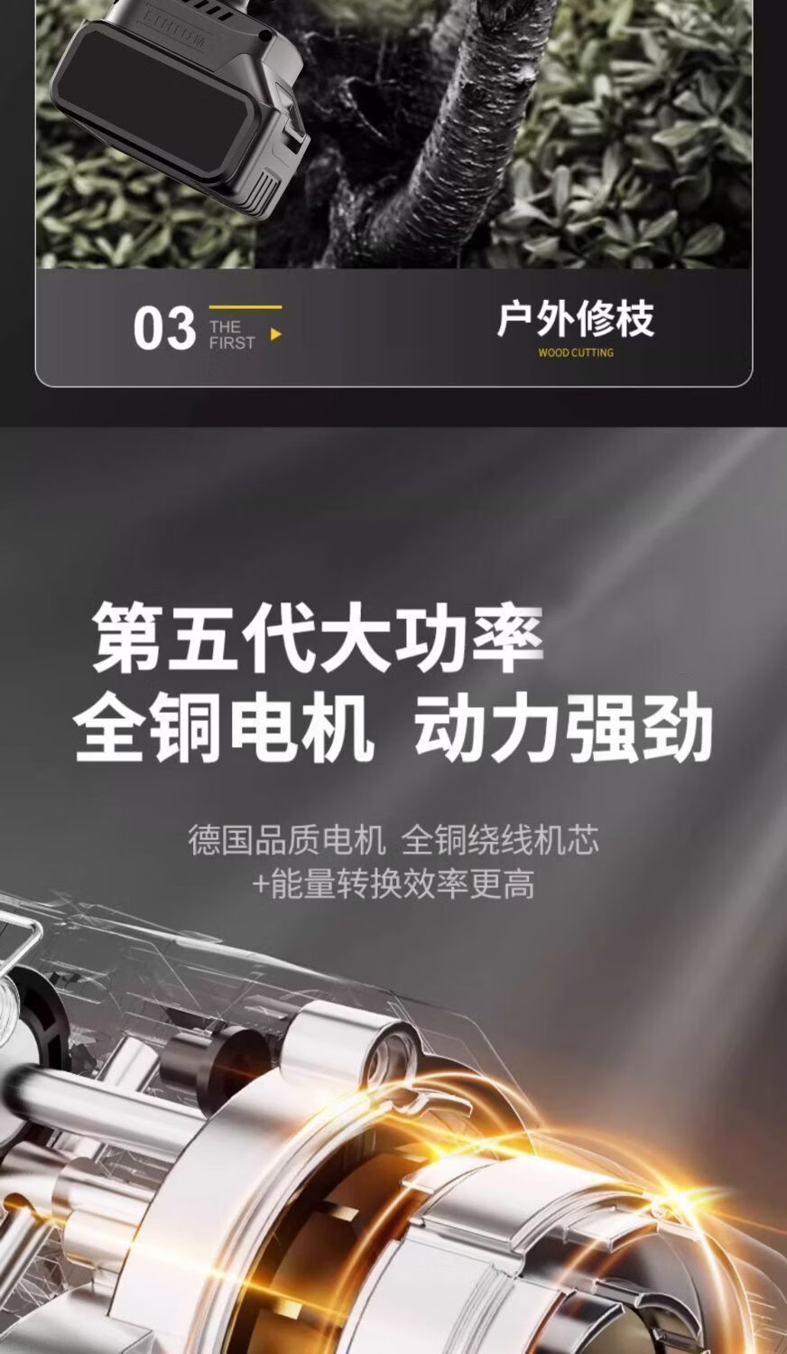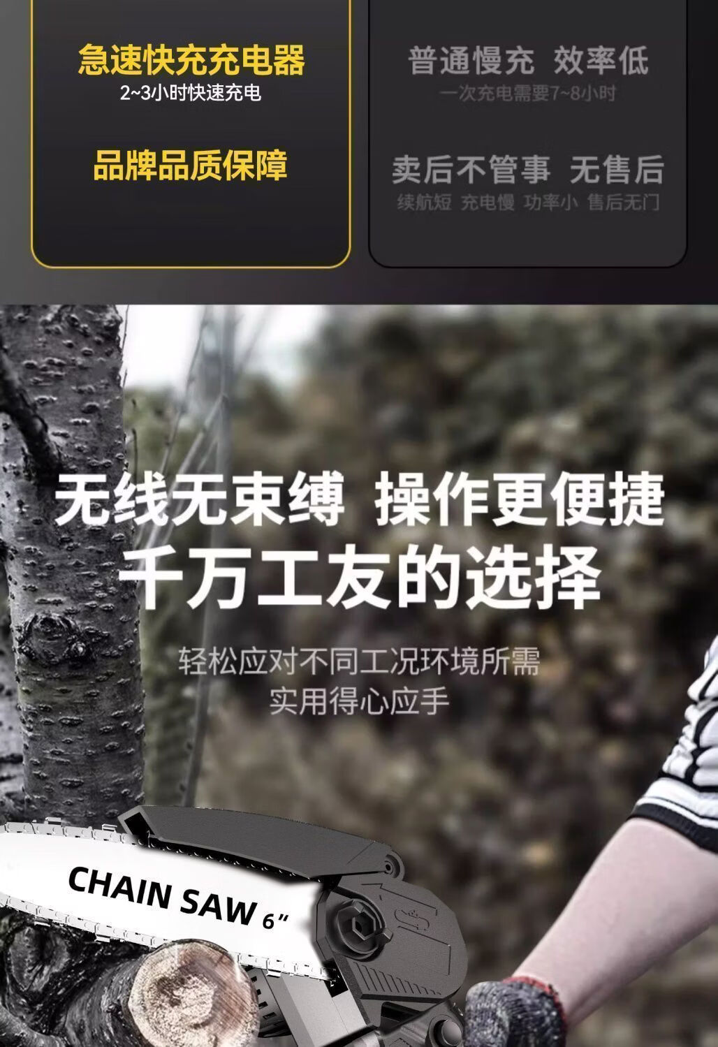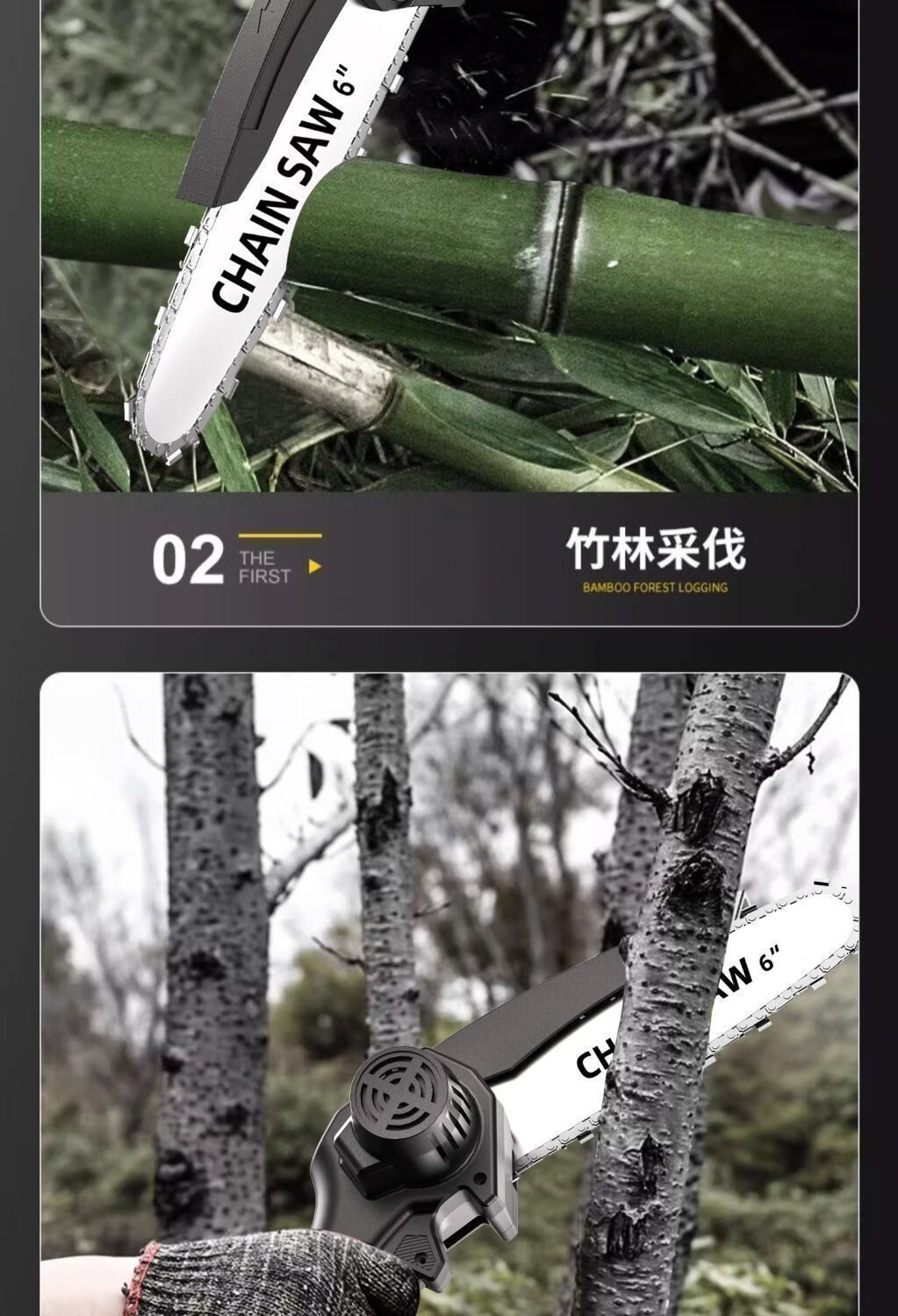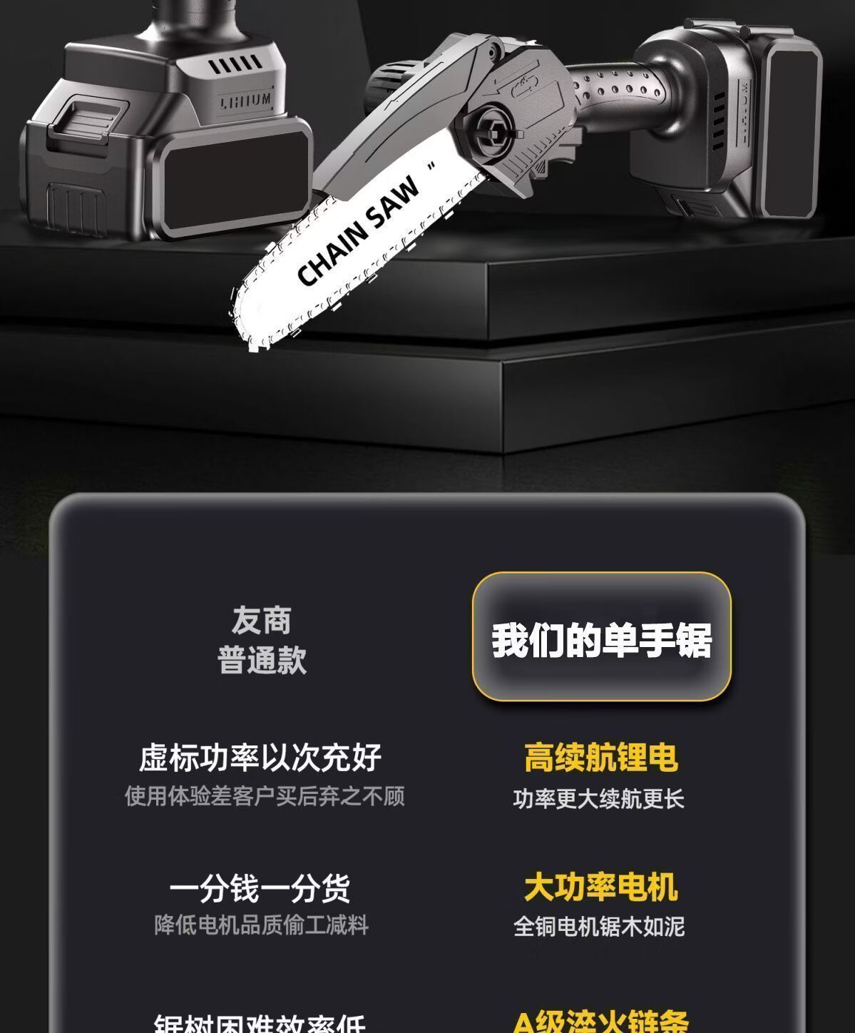 纯铜电机多功能充电手提式锂电链锯户外无线小型伐木手锯砍树修枝 8寸-升级续航-10节-2电2链