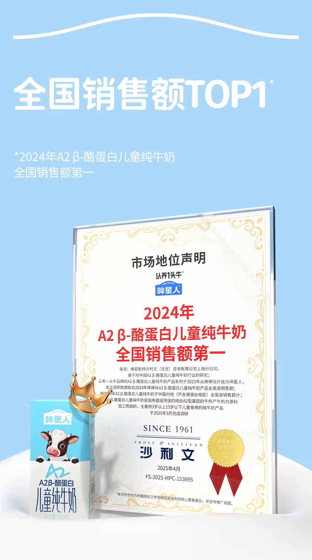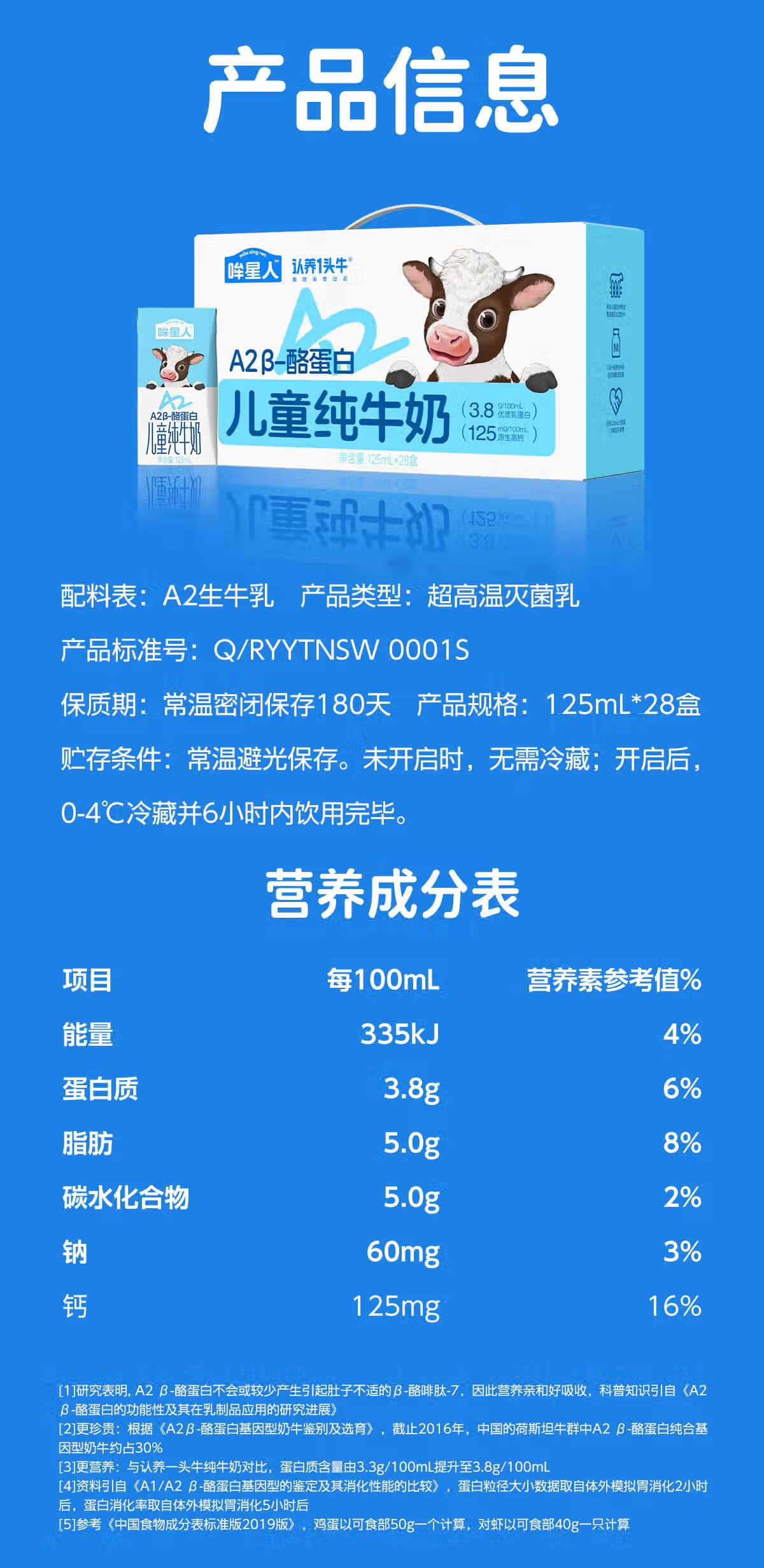认养一头牛哞星人A2β-酪蛋白儿童纯牛奶125ml*28盒3.8g蛋白