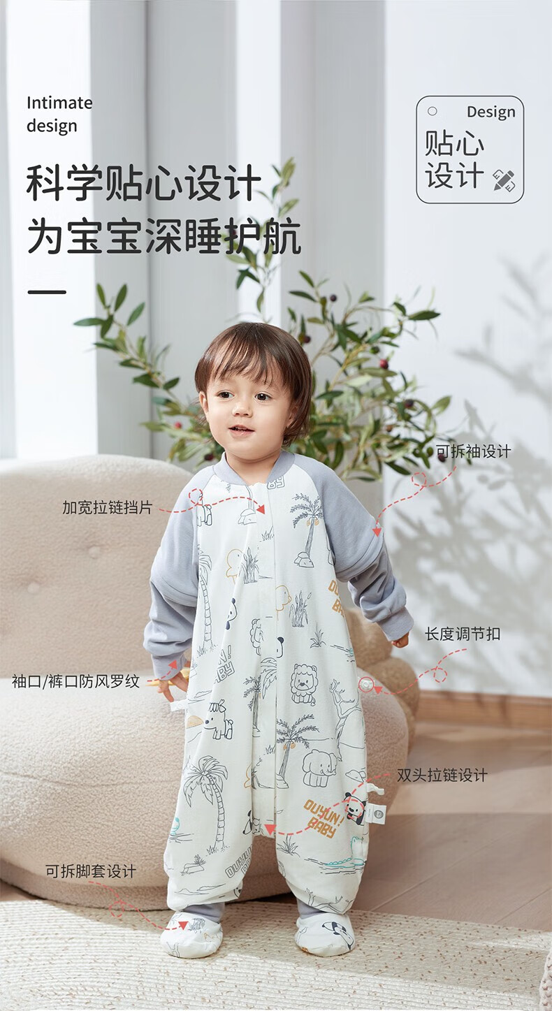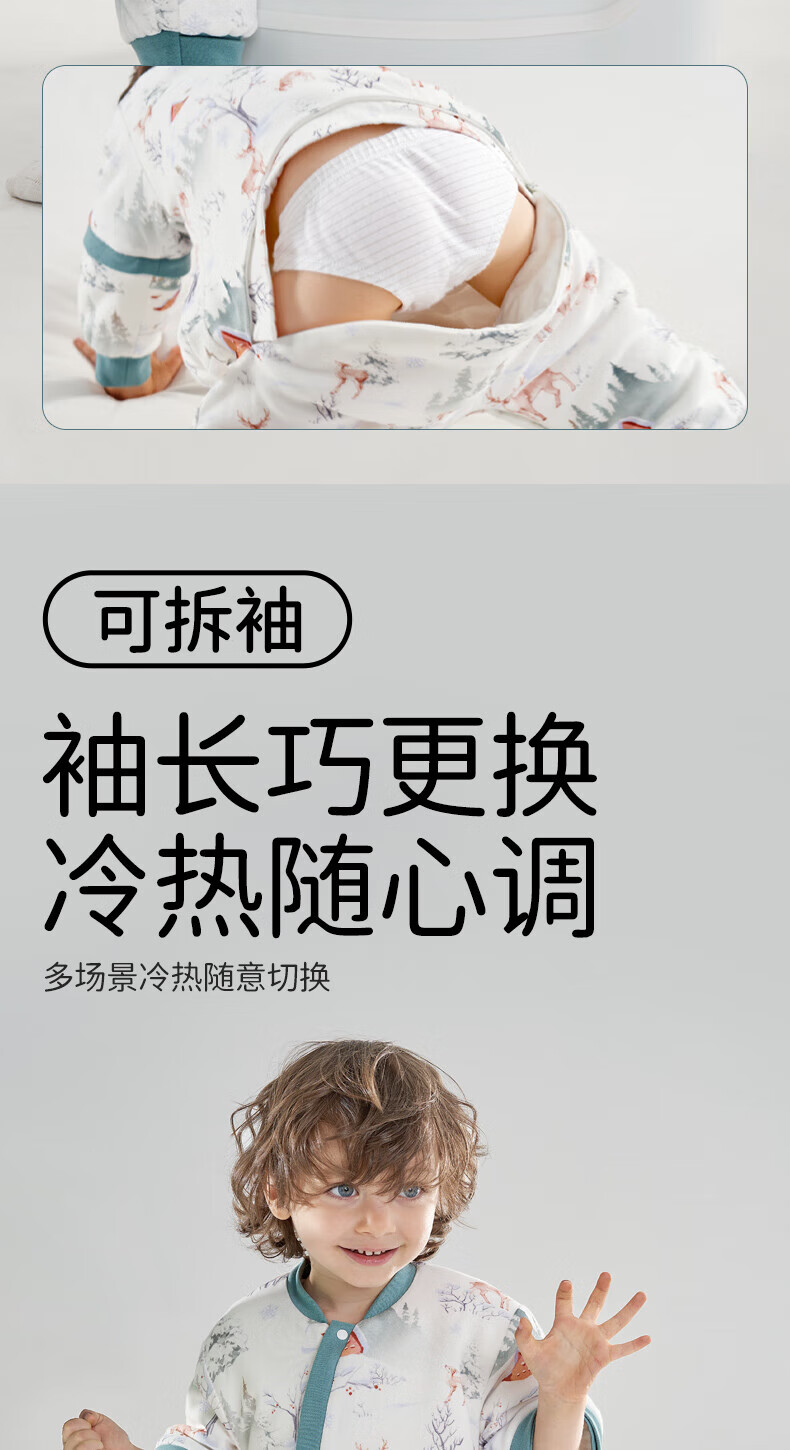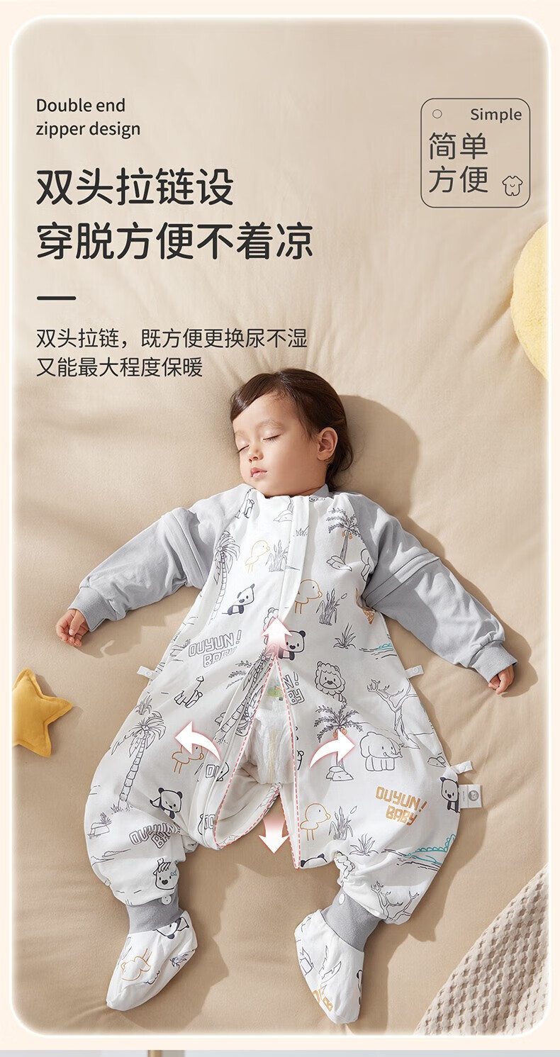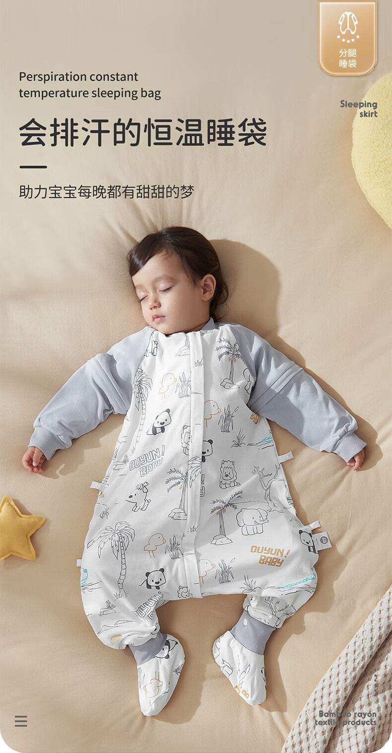 欧孕(OUYUN)【小冰心】婴儿睡袋春秋款竹纤维天丝纱布宝宝防踢被儿童分腿睡袋 菇菇兔-前六后四可拆袖 90/52【推荐身高80-95CM】