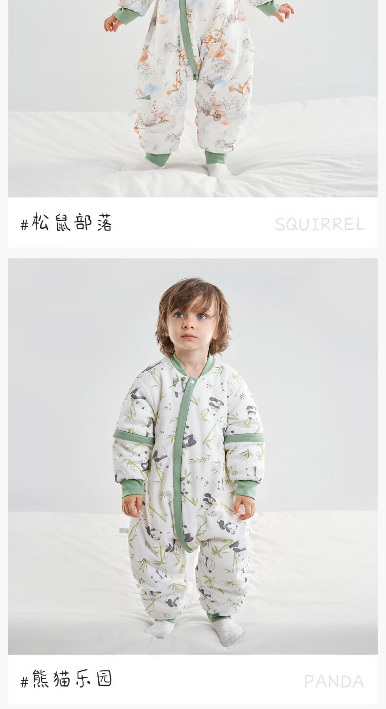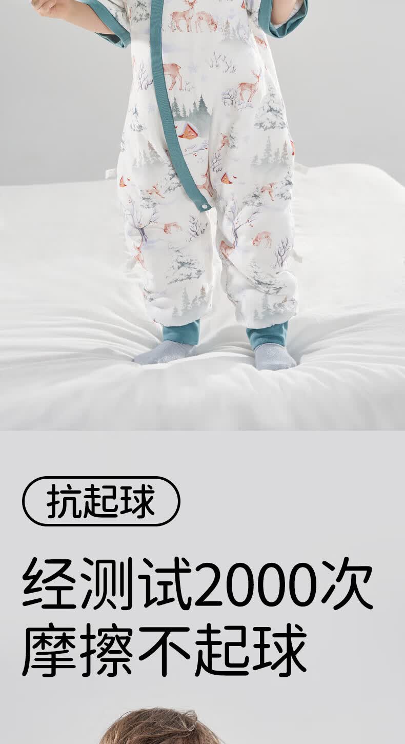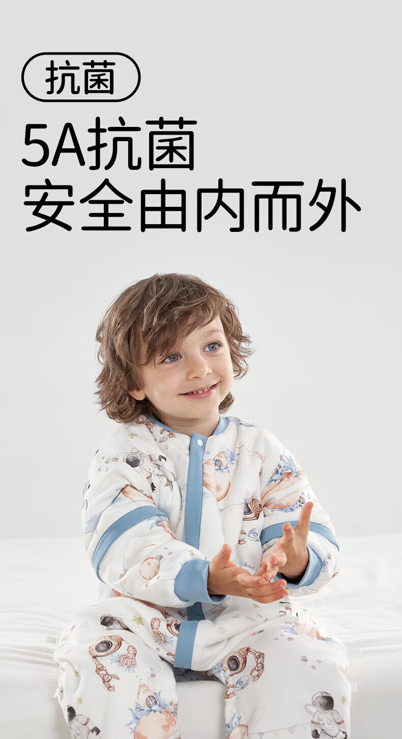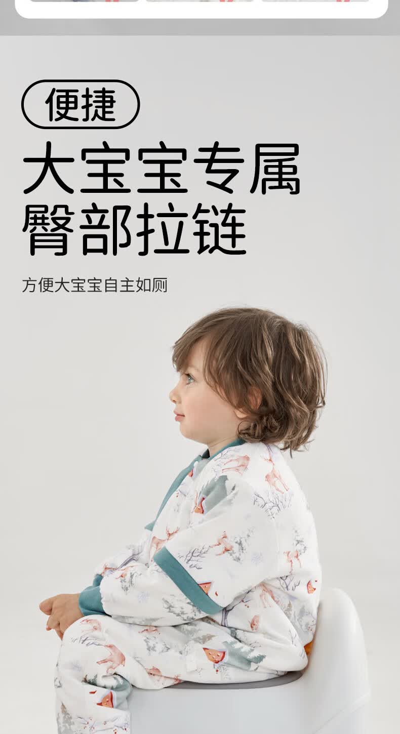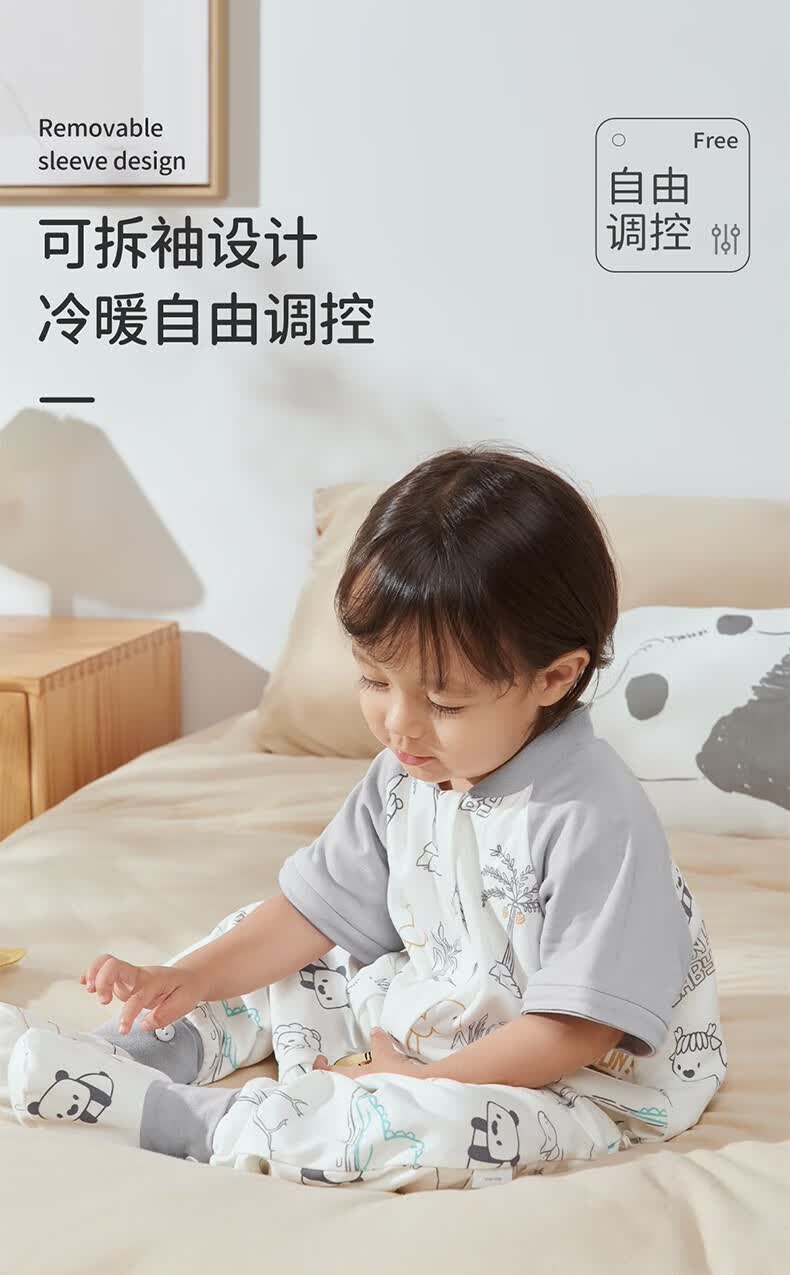 欧孕(OUYUN)【小冰心】婴儿睡袋春秋款竹纤维天丝纱布宝宝防踢被儿童分腿睡袋 菇菇兔-前六后四可拆袖 90/52【推荐身高80-95CM】