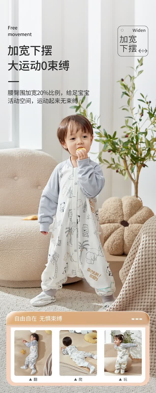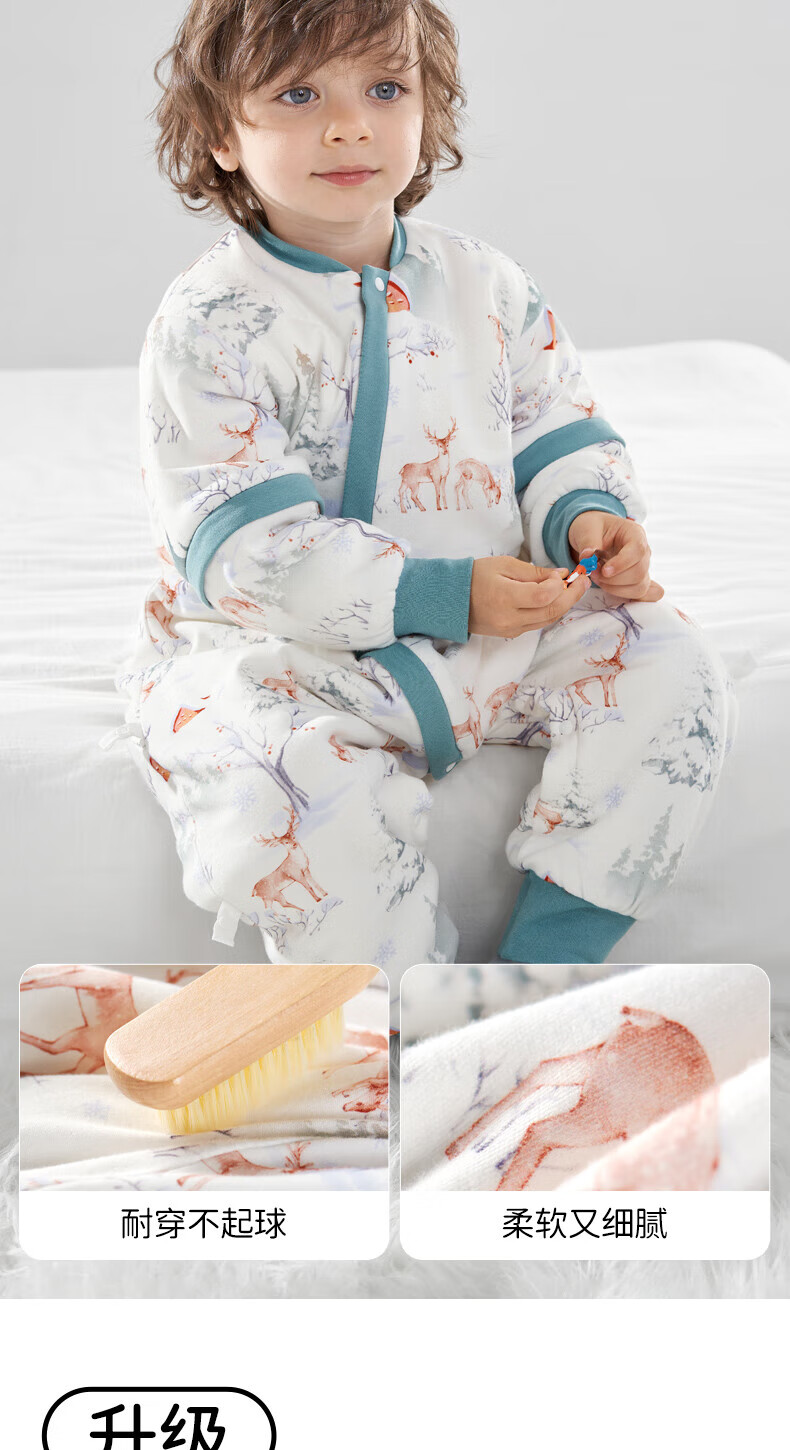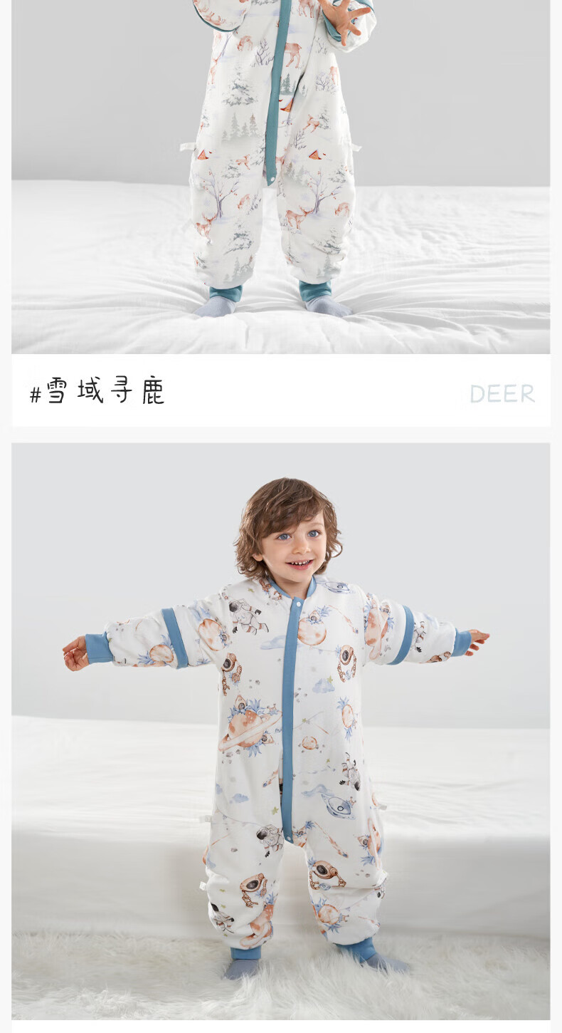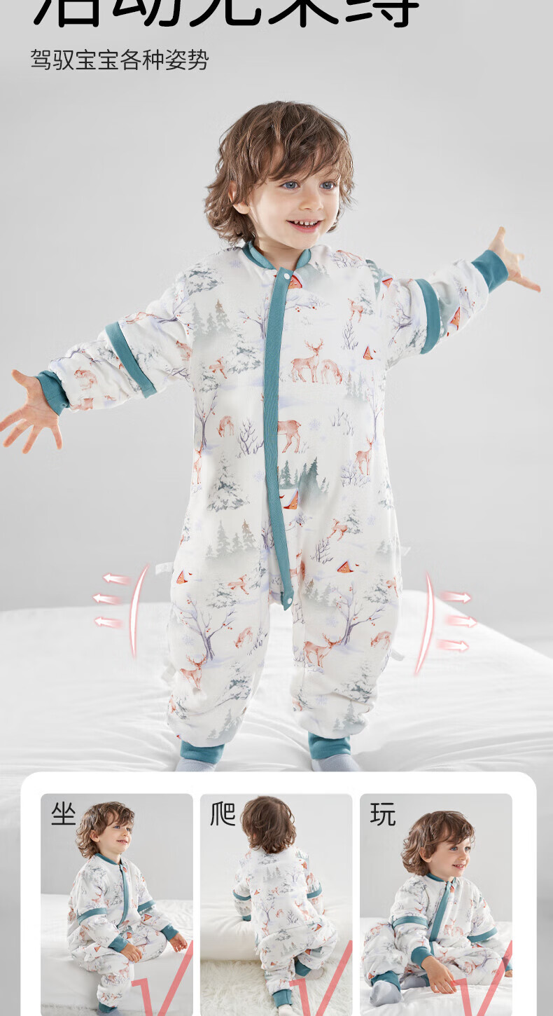 欧孕(OUYUN)【小冰心】婴儿睡袋春秋款竹纤维天丝纱布宝宝防踢被儿童分腿睡袋 菇菇兔-前六后四可拆袖 90/52【推荐身高80-95CM】