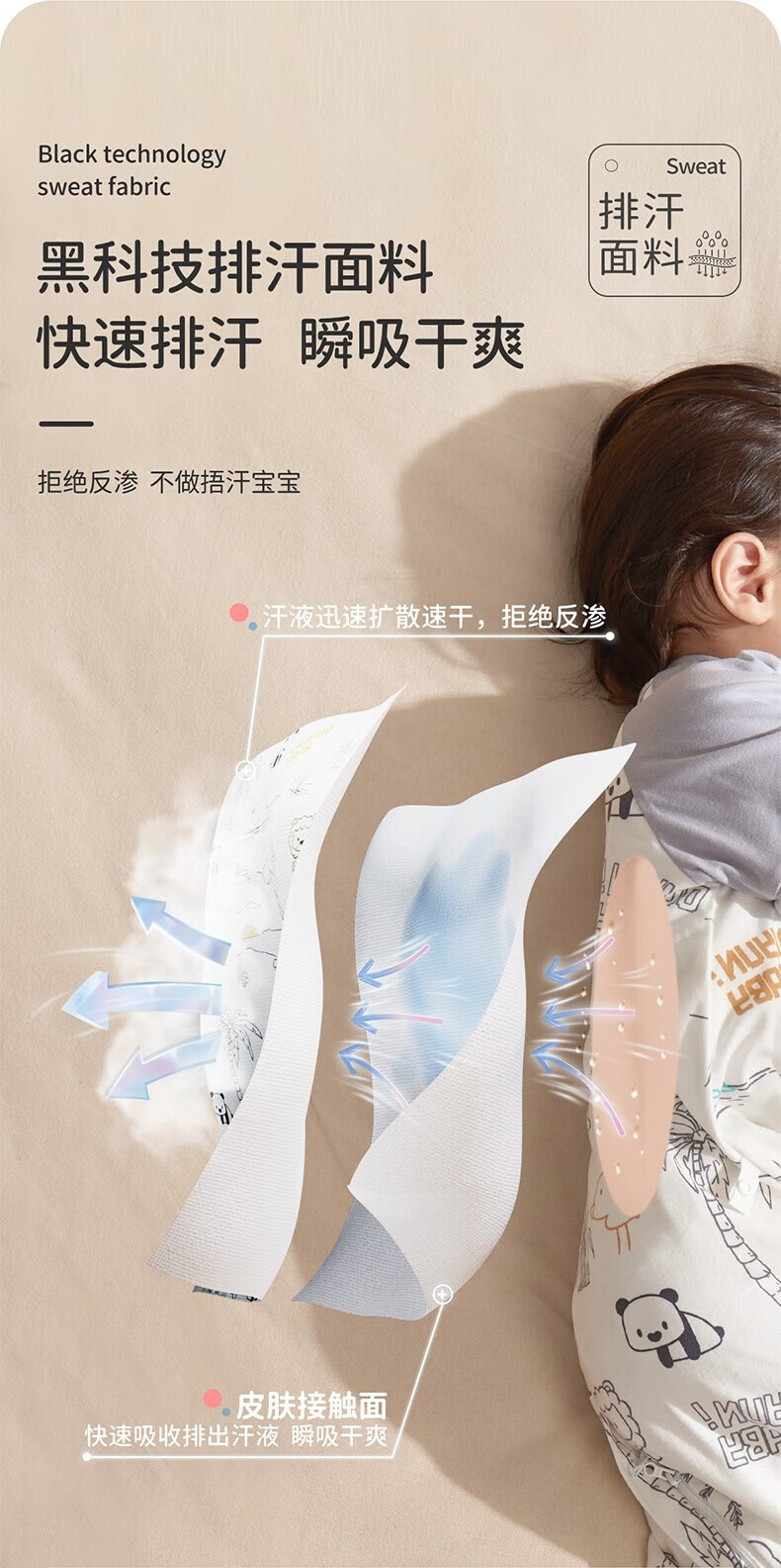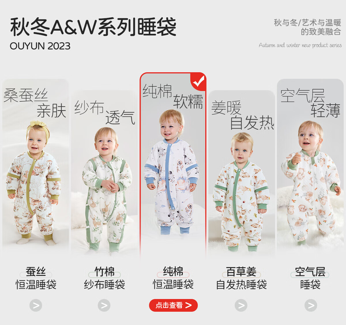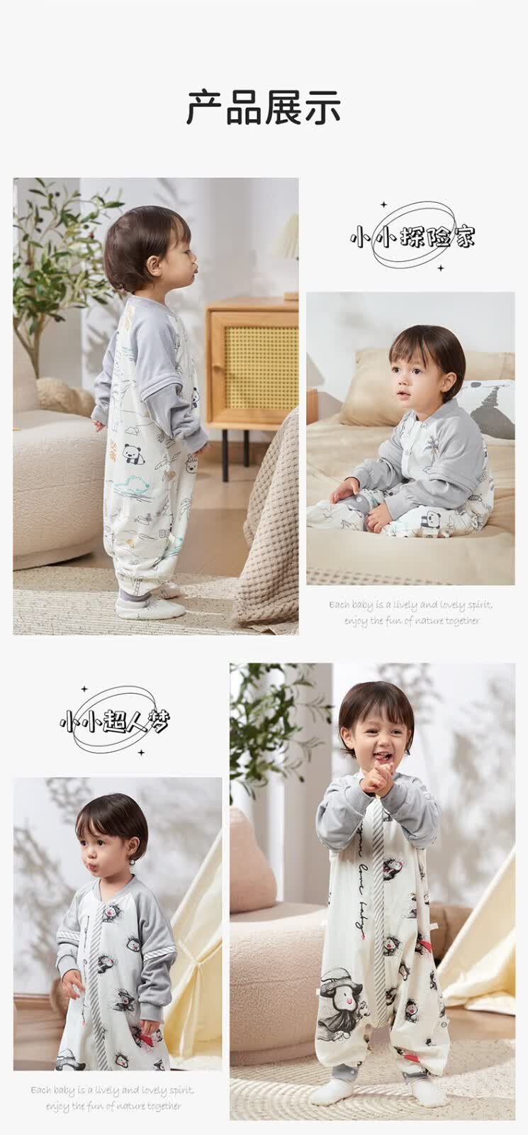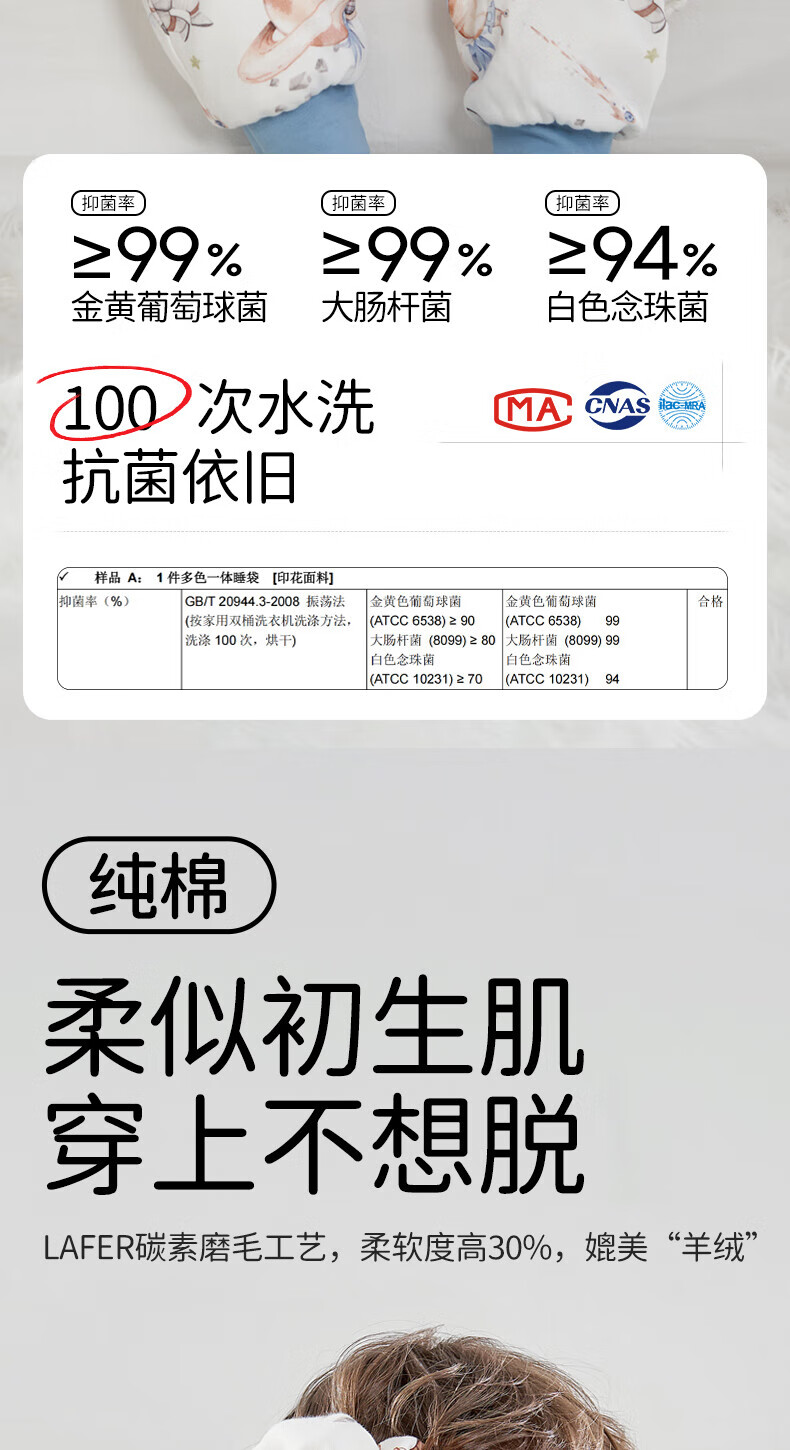 欧孕(OUYUN)【小冰心】婴儿睡袋春秋款竹纤维天丝纱布宝宝防踢被儿童分腿睡袋 菇菇兔-前六后四可拆袖 90/52【推荐身高80-95CM】