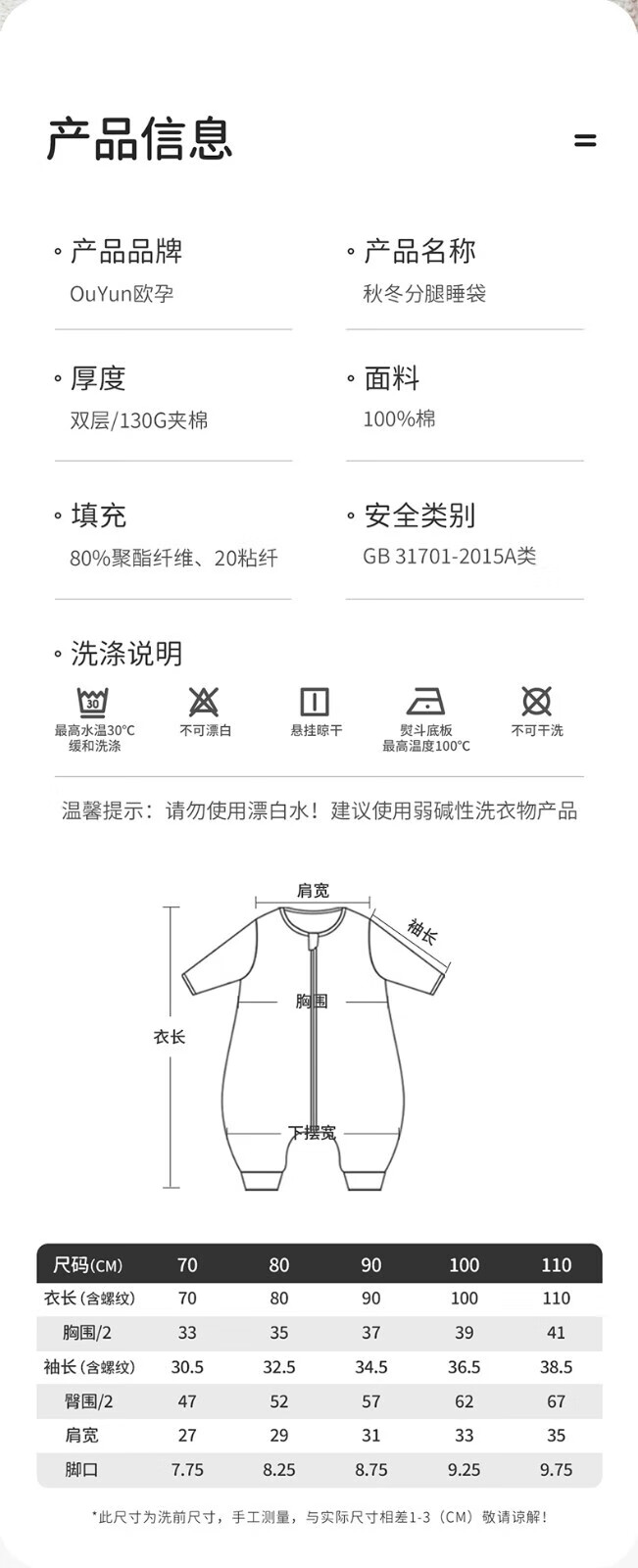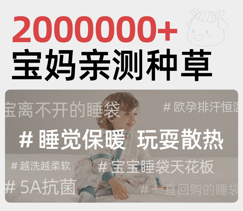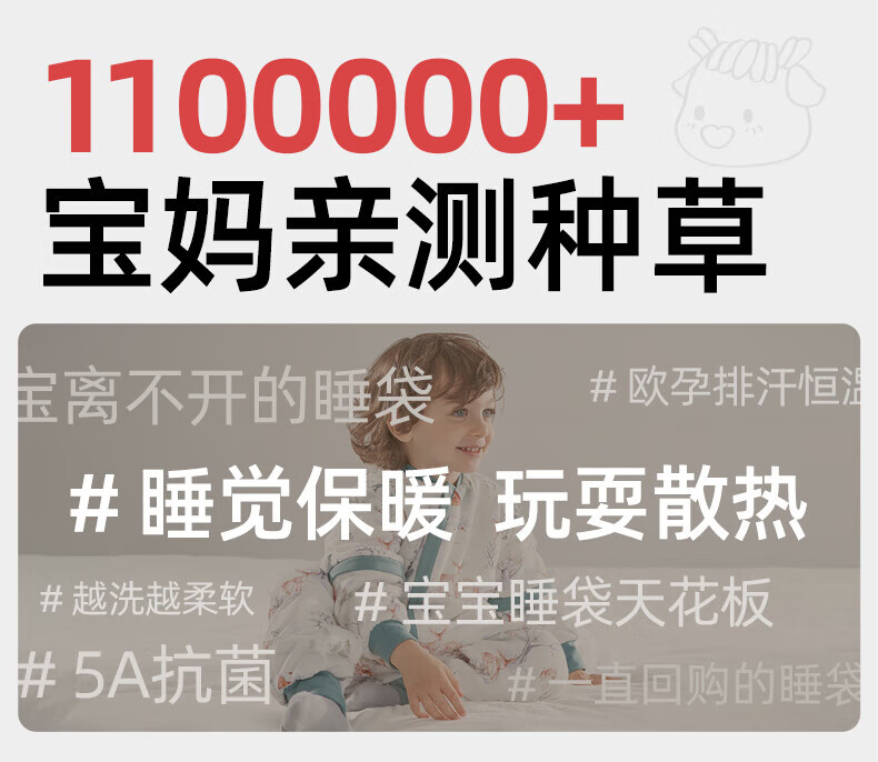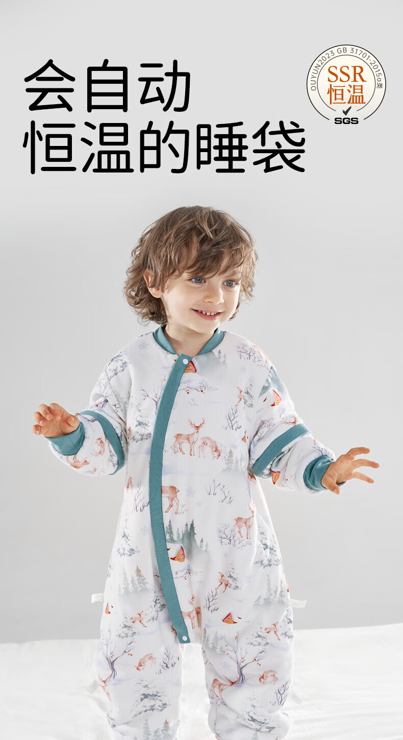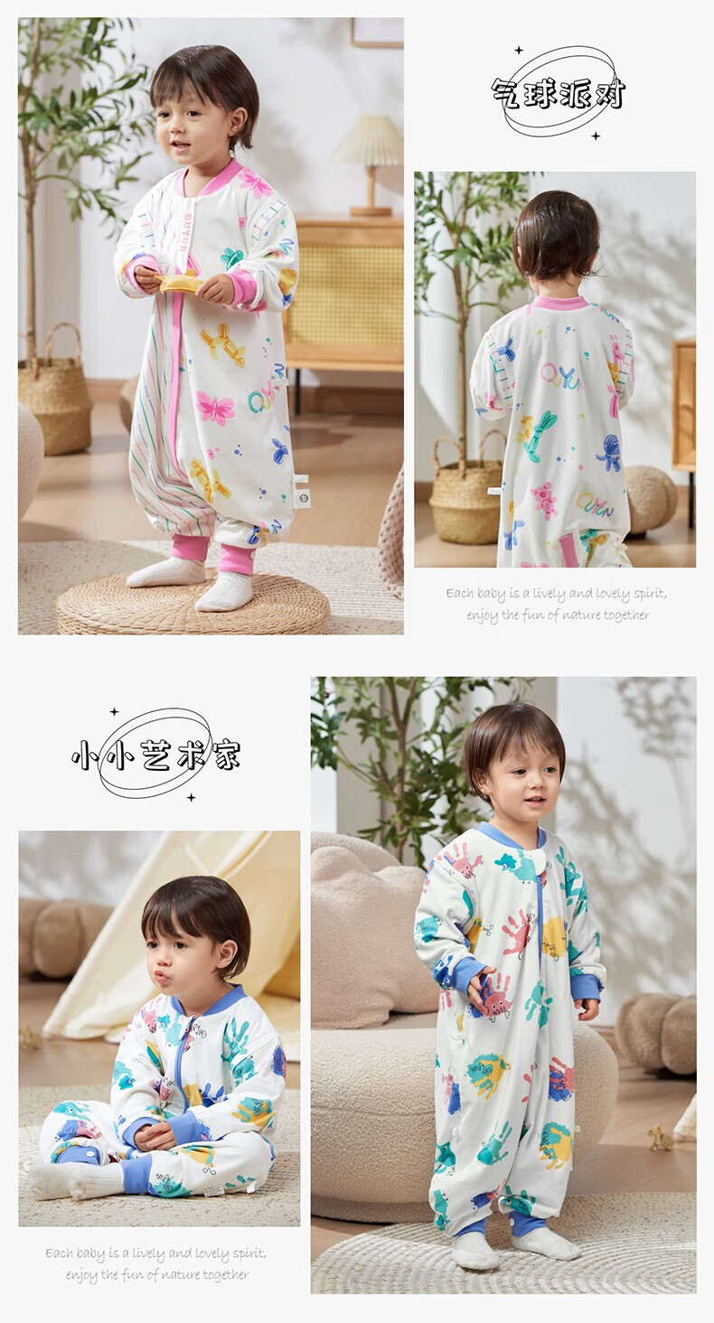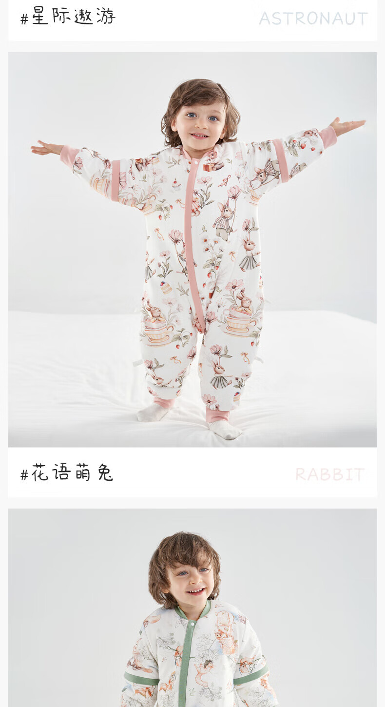欧孕(OUYUN)婴儿睡袋春秋恒温礼盒童防踢被宝宝四季通用分腿冬季 花语萌兔【春秋20-25℃】 36cm L码建议身高90-105厘米