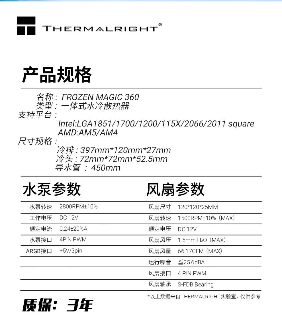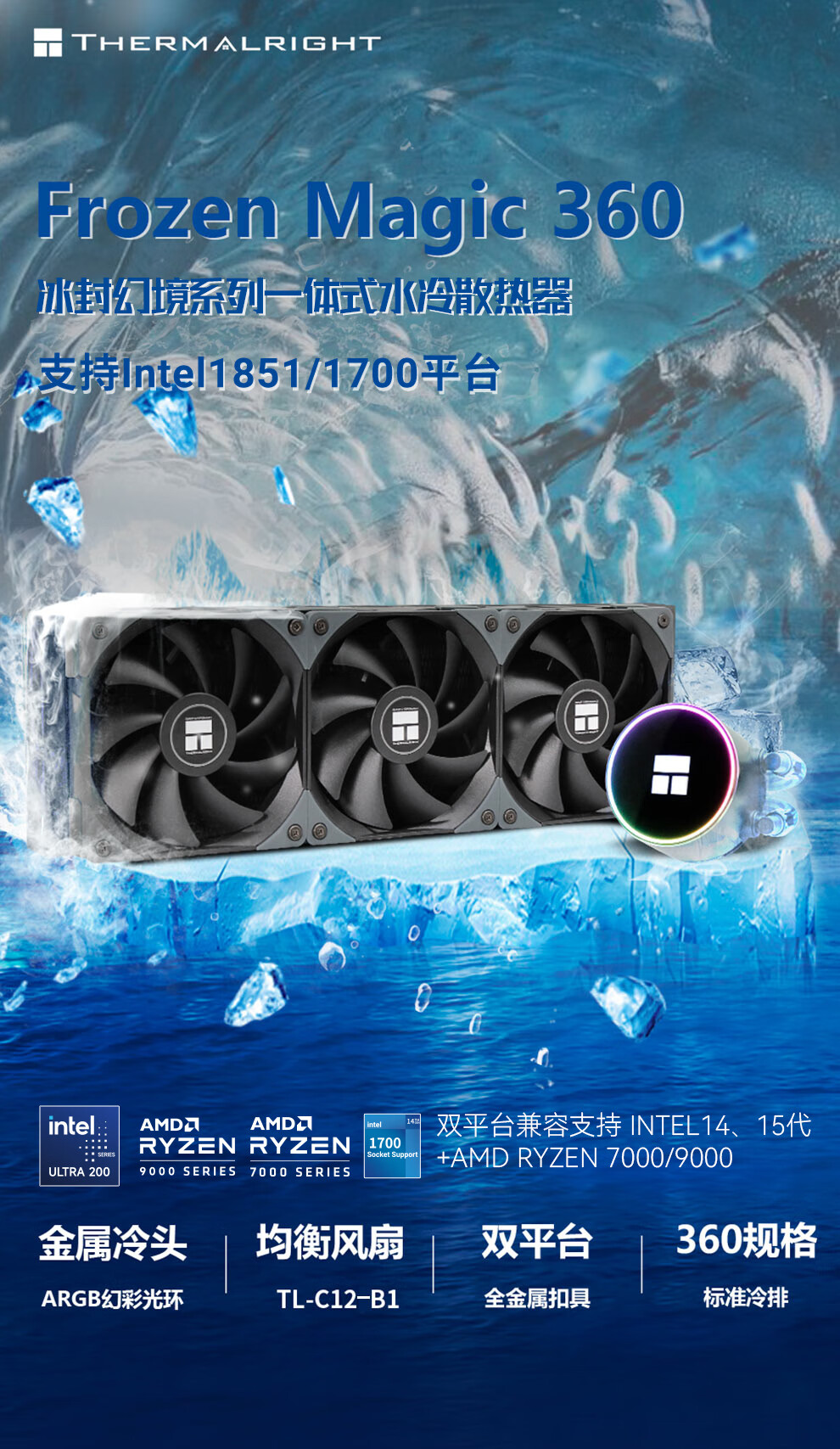 利民(thermalright)Frozen Magic 360冰封幻境 一体式水冷散热器 C12风扇 支持 多平台 ARGB冷头 FM360