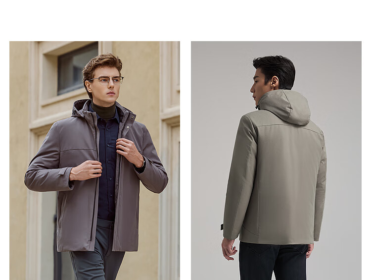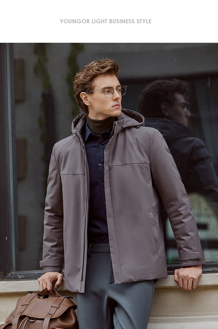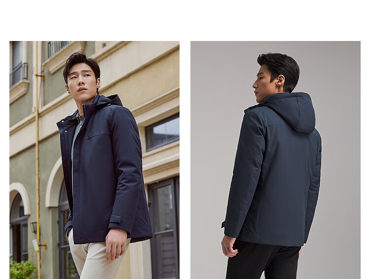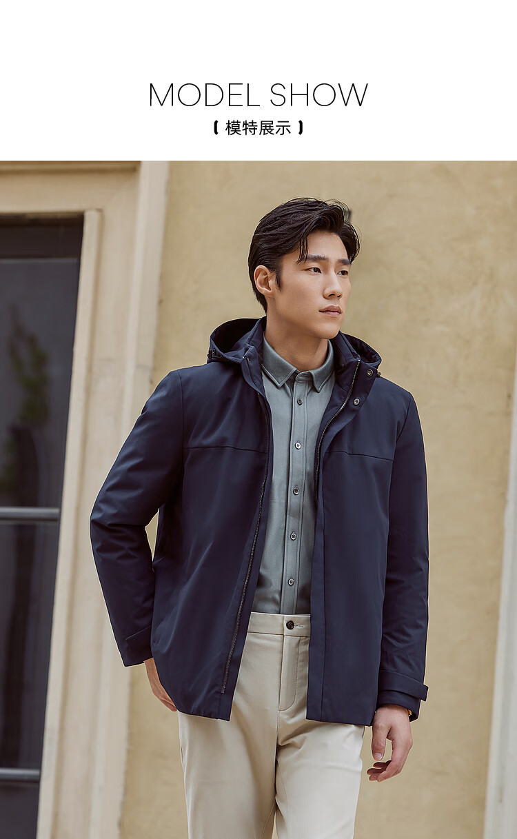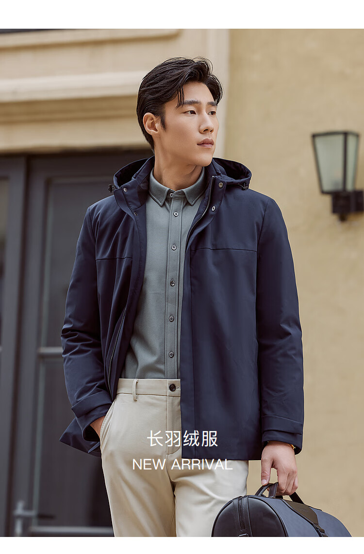 雅戈尔羽绒服男含【鹅绒】可拆卸连帽防风保暖平整爽滑冬季保暖外套 藏青VLYD419889FTA XL 180/100A