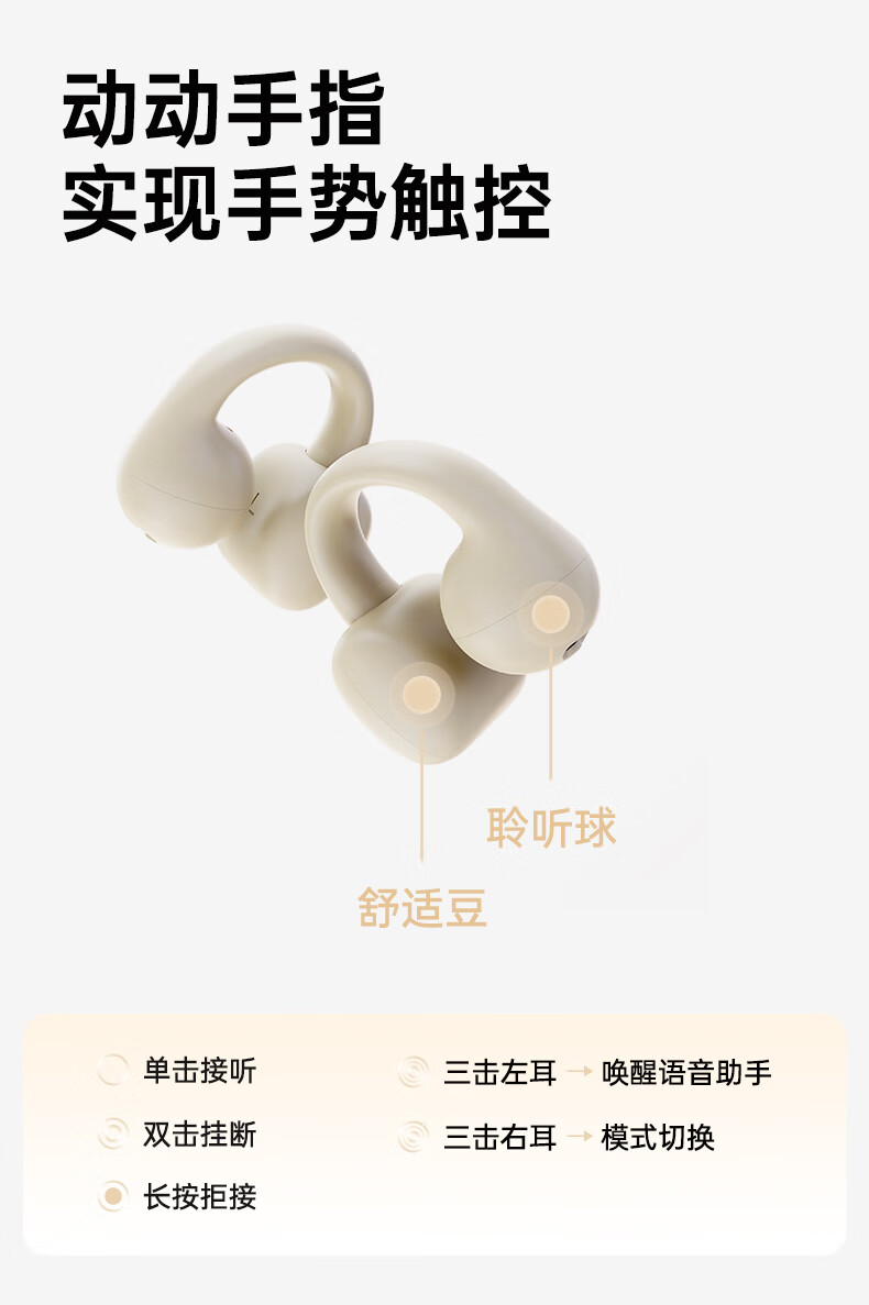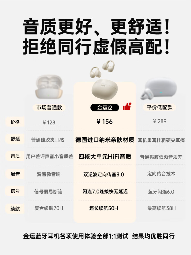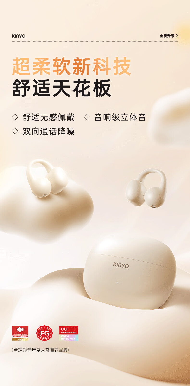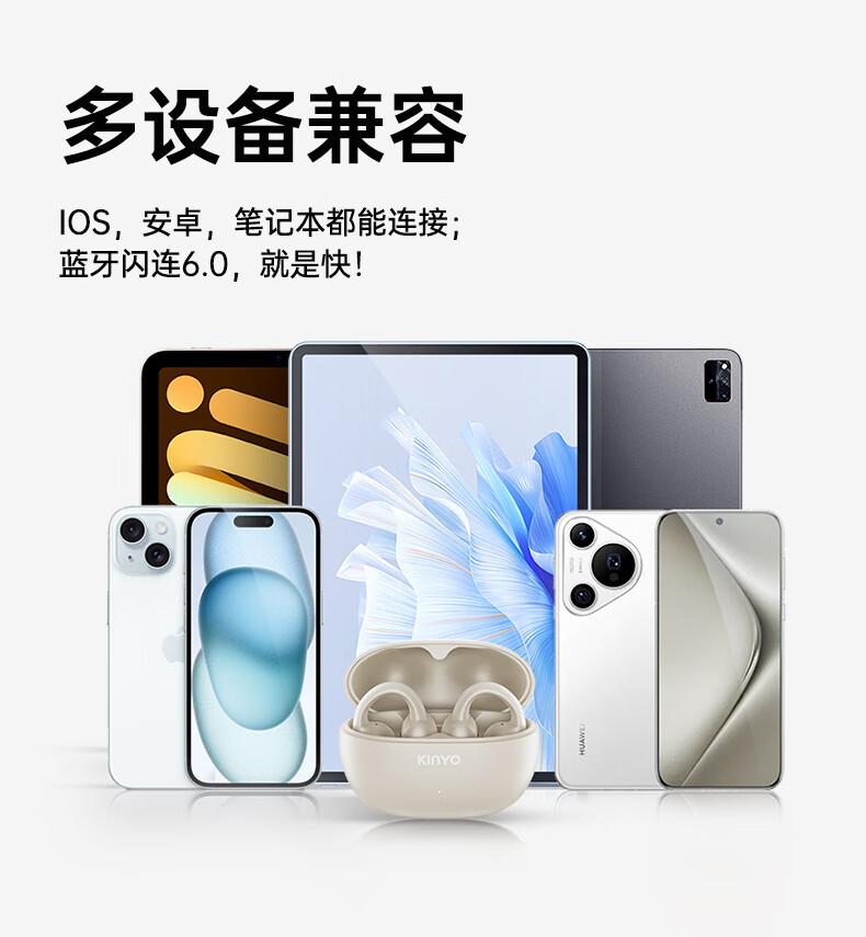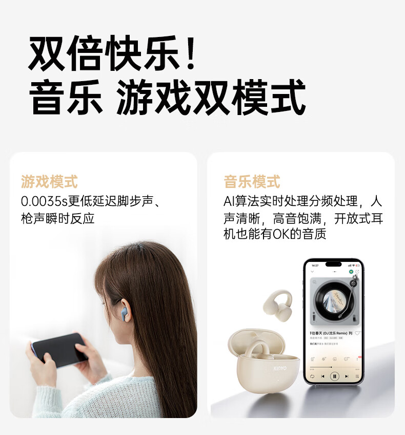 金运(KINYO)【音质0差评丨云柔亲肤】蓝牙耳机骨传导概念耳夹式无线跑步通话降噪排行前十金榜第1名i2